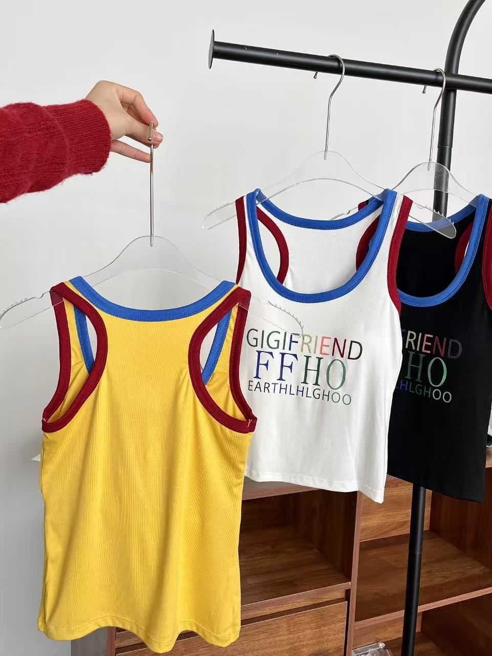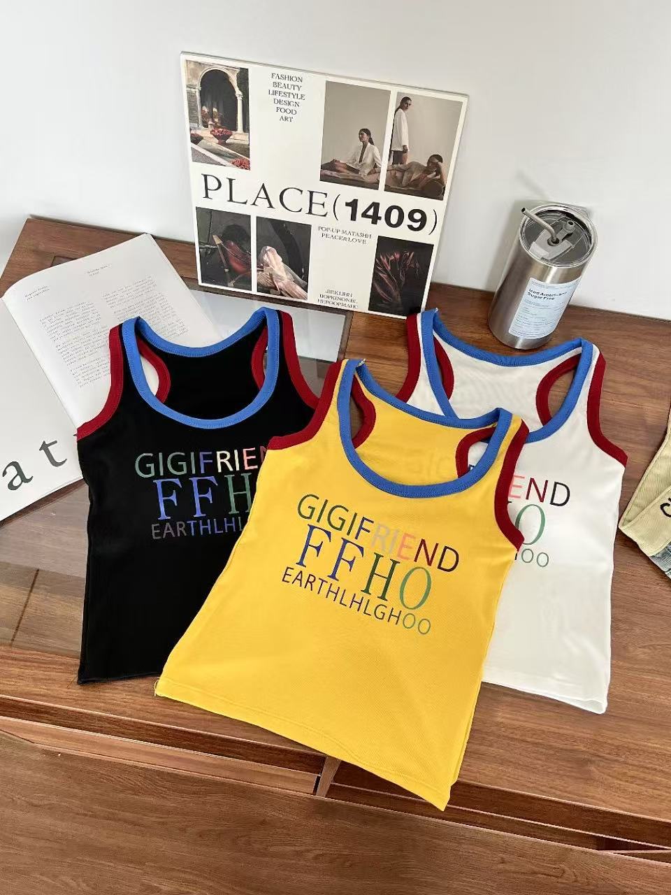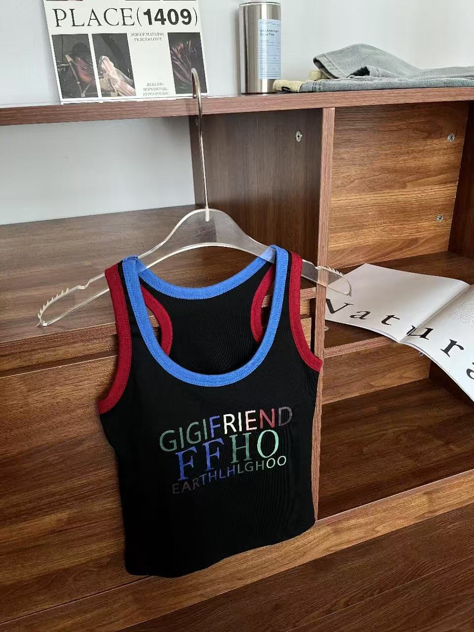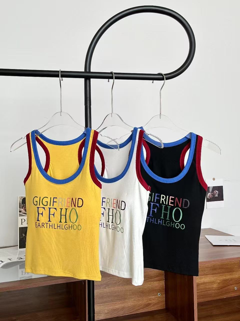 미국 스트리트 스파이스 소녀 레트로 작은 슬링 여성 여름 가슴 패드 레터 인쇄 슬림 핏 슬리밍 반팔 조끼 탑스토어 가기