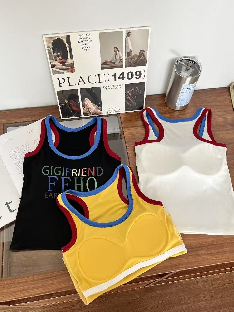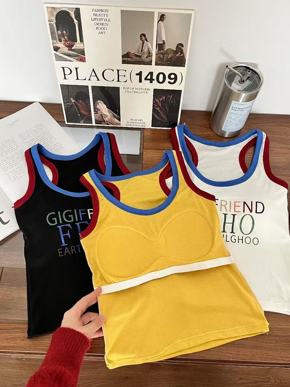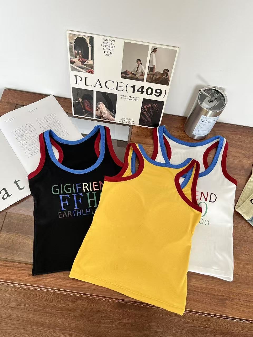 미국 스트리트 스파이스 소녀 레트로 작은 슬링 여성 여름 가슴 패드 레터 인쇄 슬림 핏 슬리밍 반팔 조끼 탑