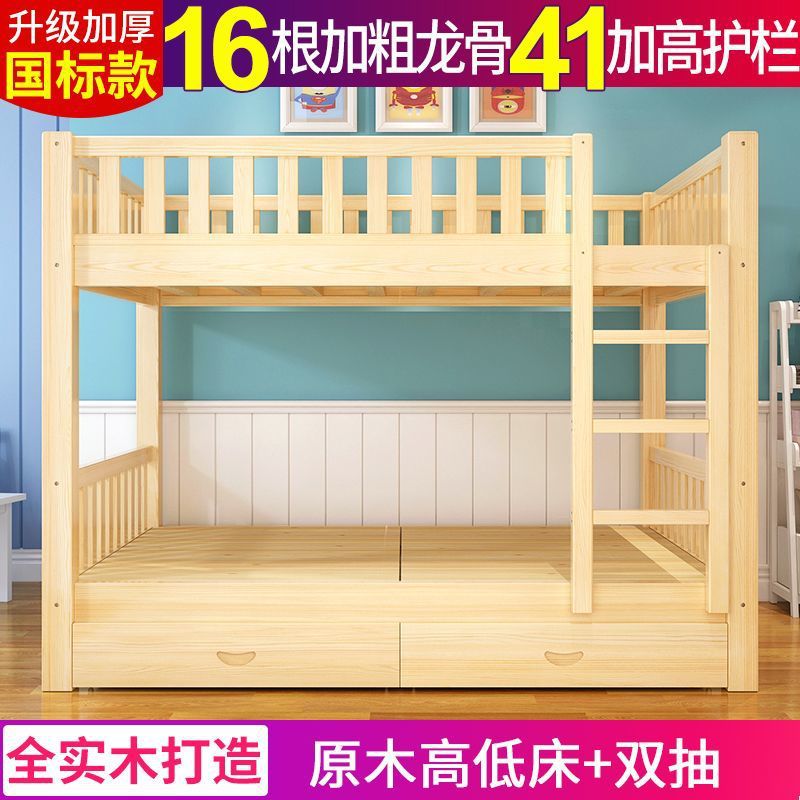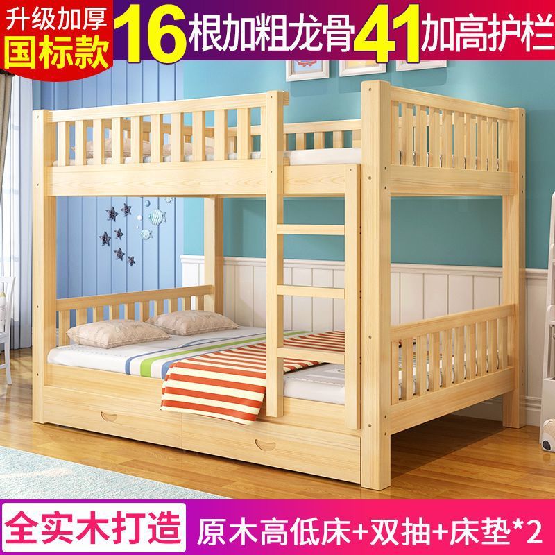 • 원목 2층 침대 + 서랍 2개 + 매트리스 2개 (국가 표준) --- 재고 부족 알림