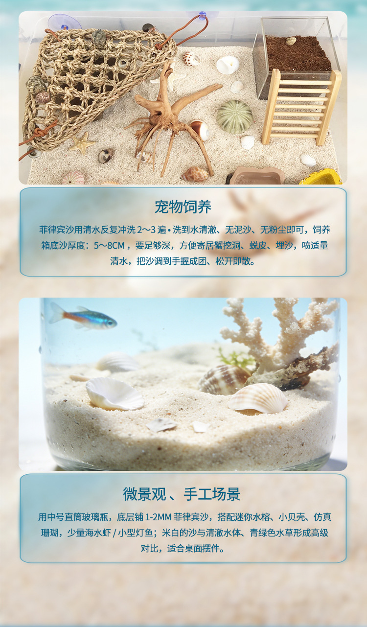 필리핀 모래 씻지 않는 물고기 탱크 소라게 매트 먹이 풍경 장식 바다 모래 산호 껍질 모래 공장 아울렛스토어 가기