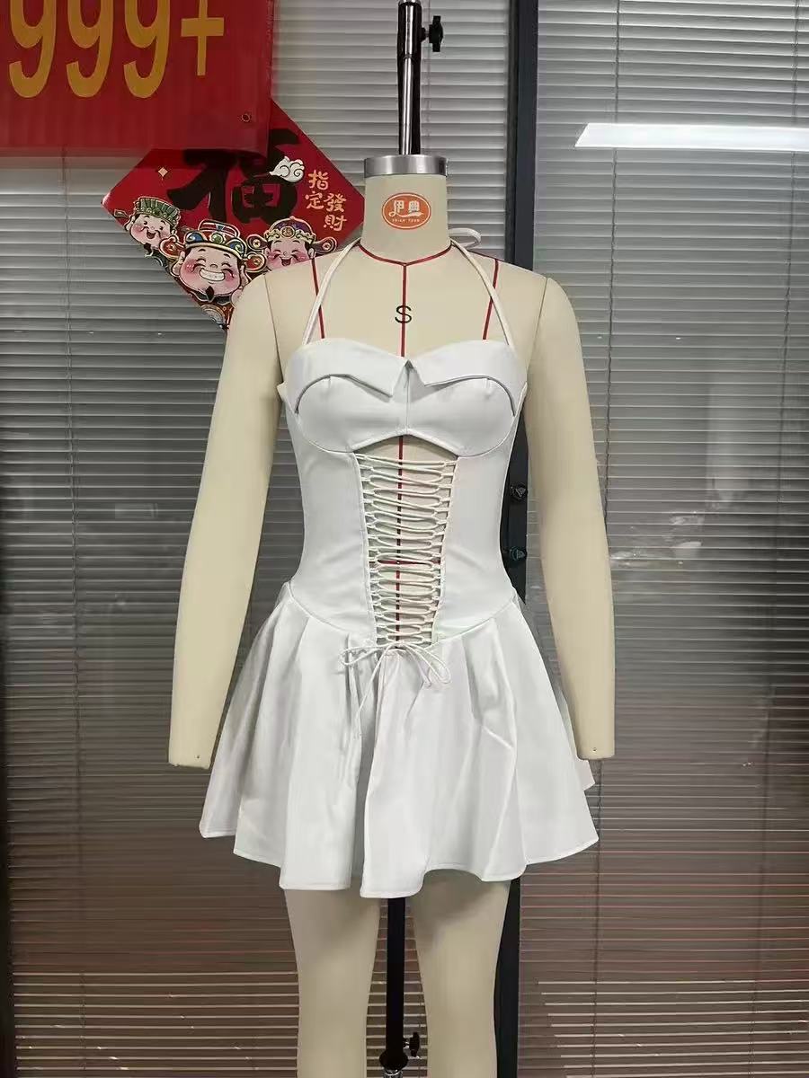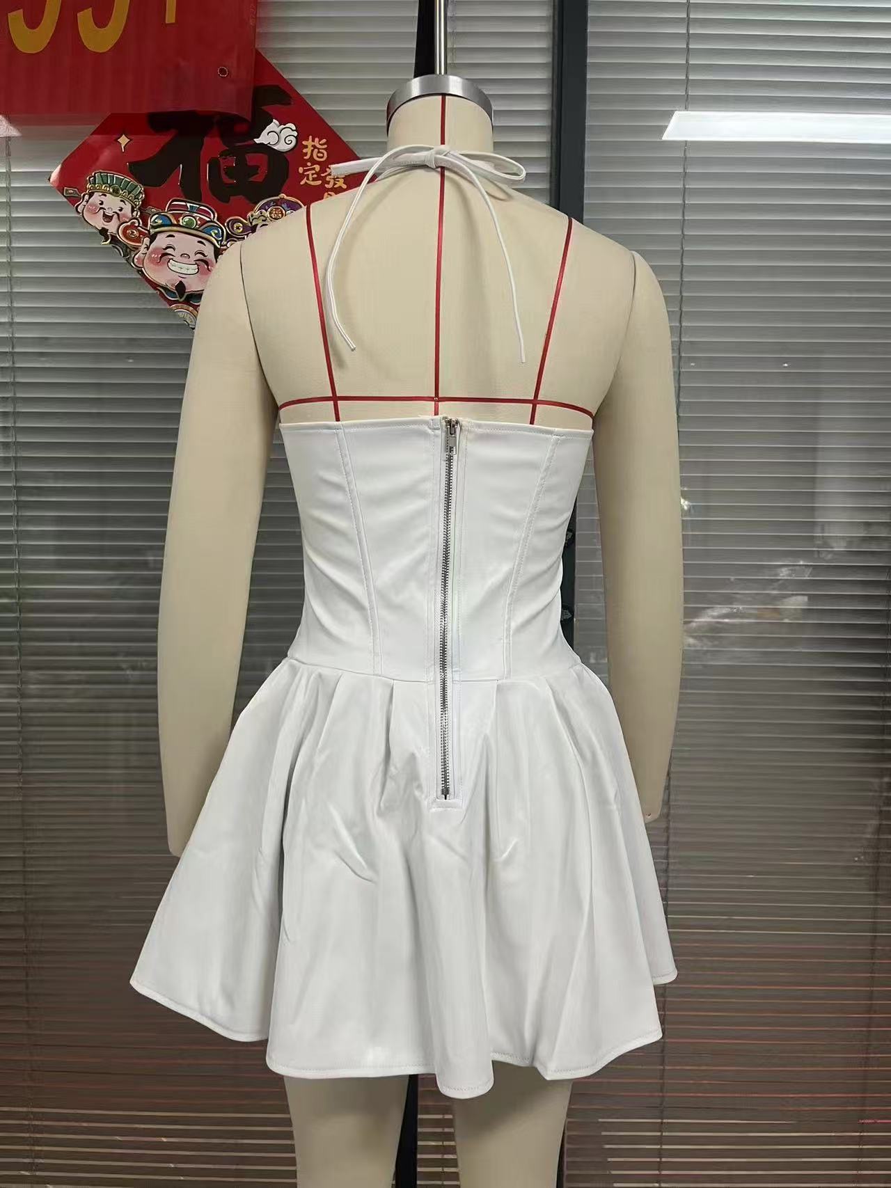 유럽과 미국의 국경 간 여성의 새로운 단색 민소매 레이스 업 섹시한 튜브 탑 PU 가죽 파티 드레스