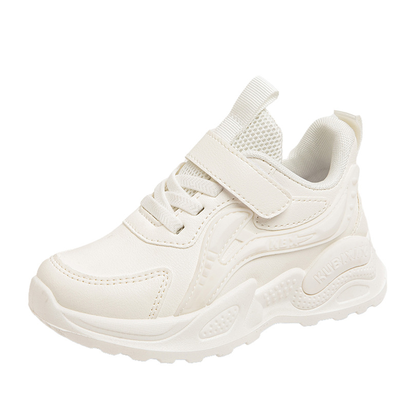 봄 2025 새로운 어린이 운동화 단색 흰색 신발 가죽 캐주얼 신발 소년 소녀 신발 운동화