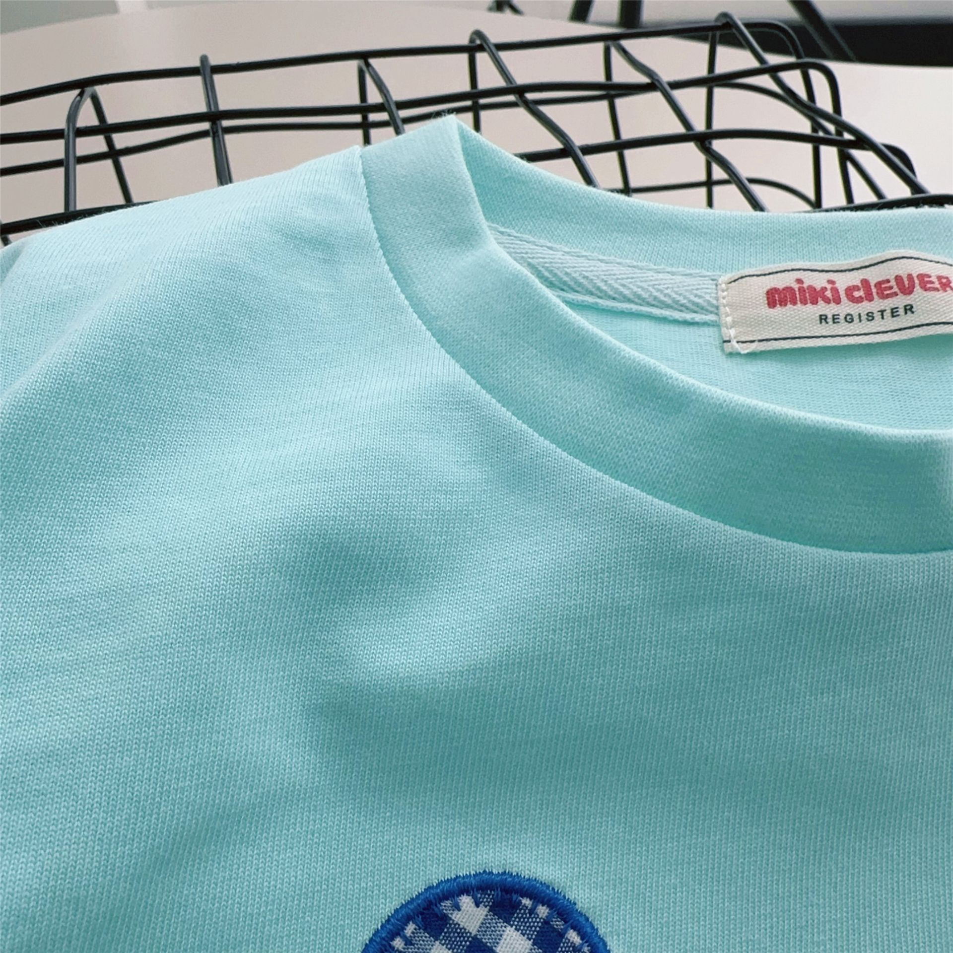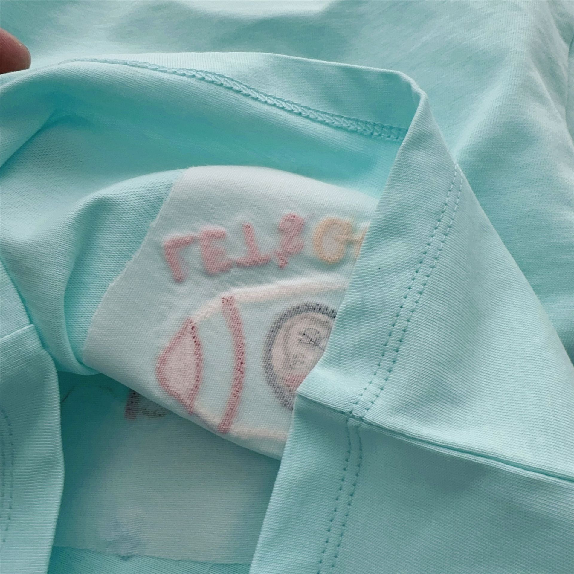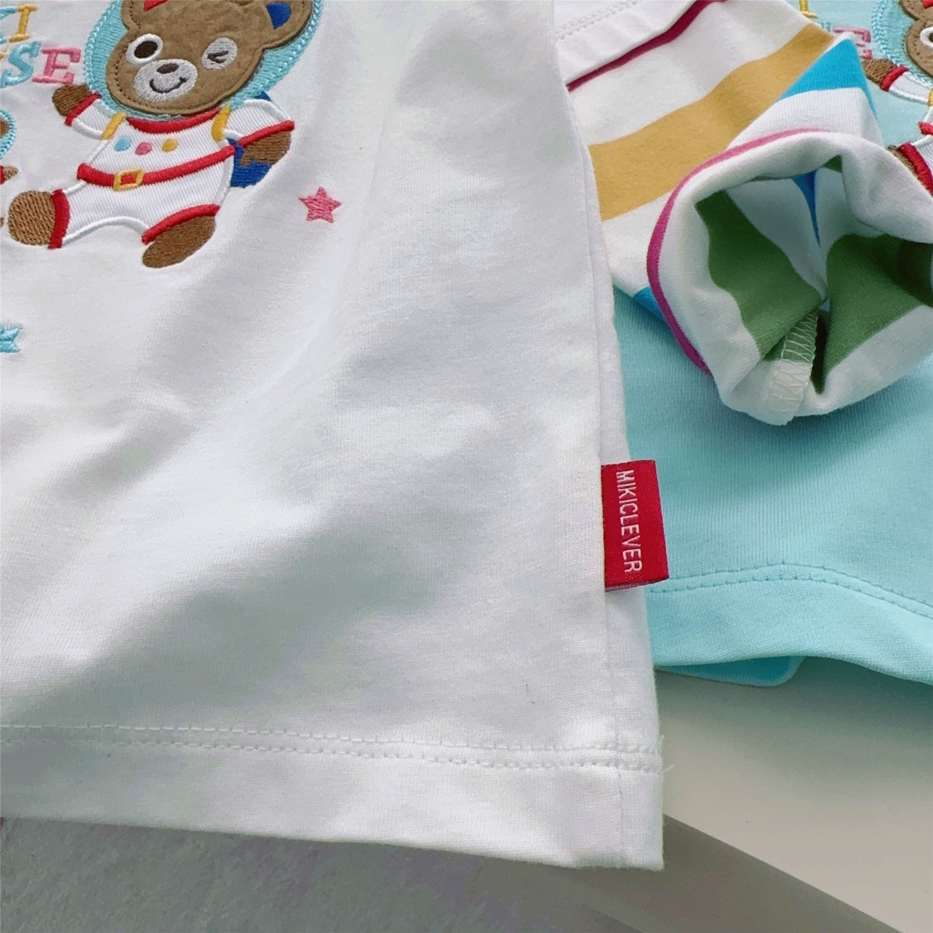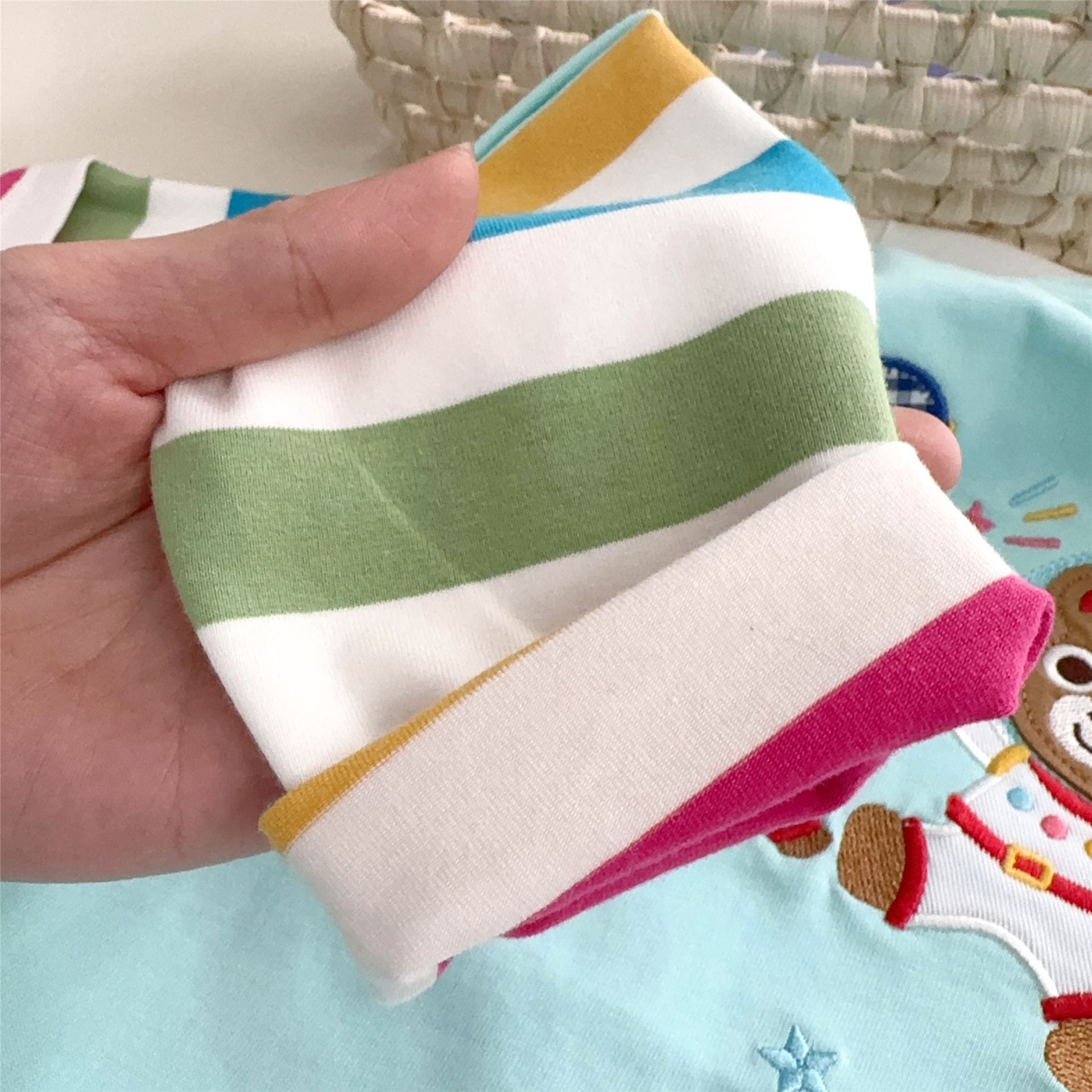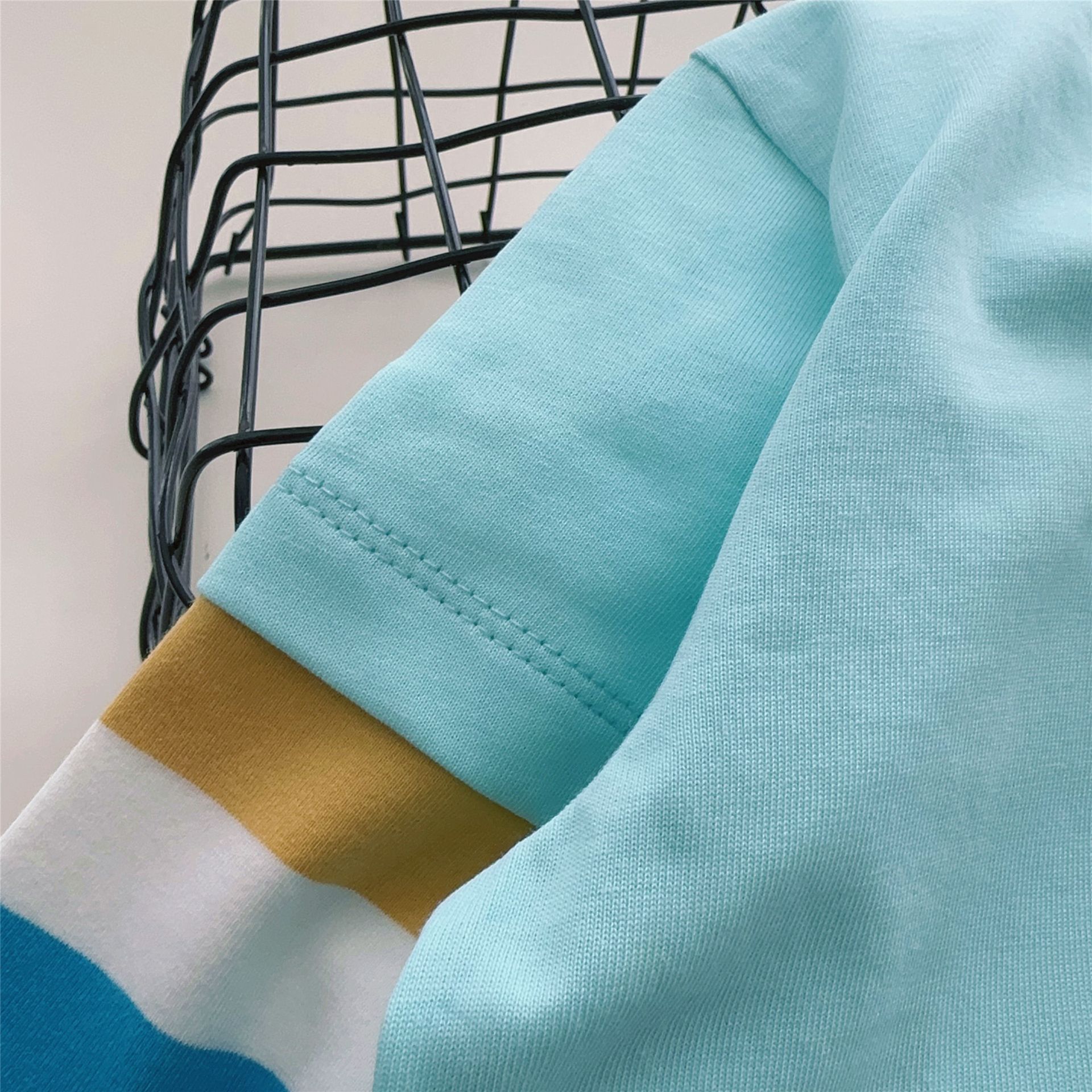 재고 머리 25 봄 새로운 소년과 소녀 아기 만화 자수 가짜 두 공간 느린 긴 소매 티셔츠 도매 7008