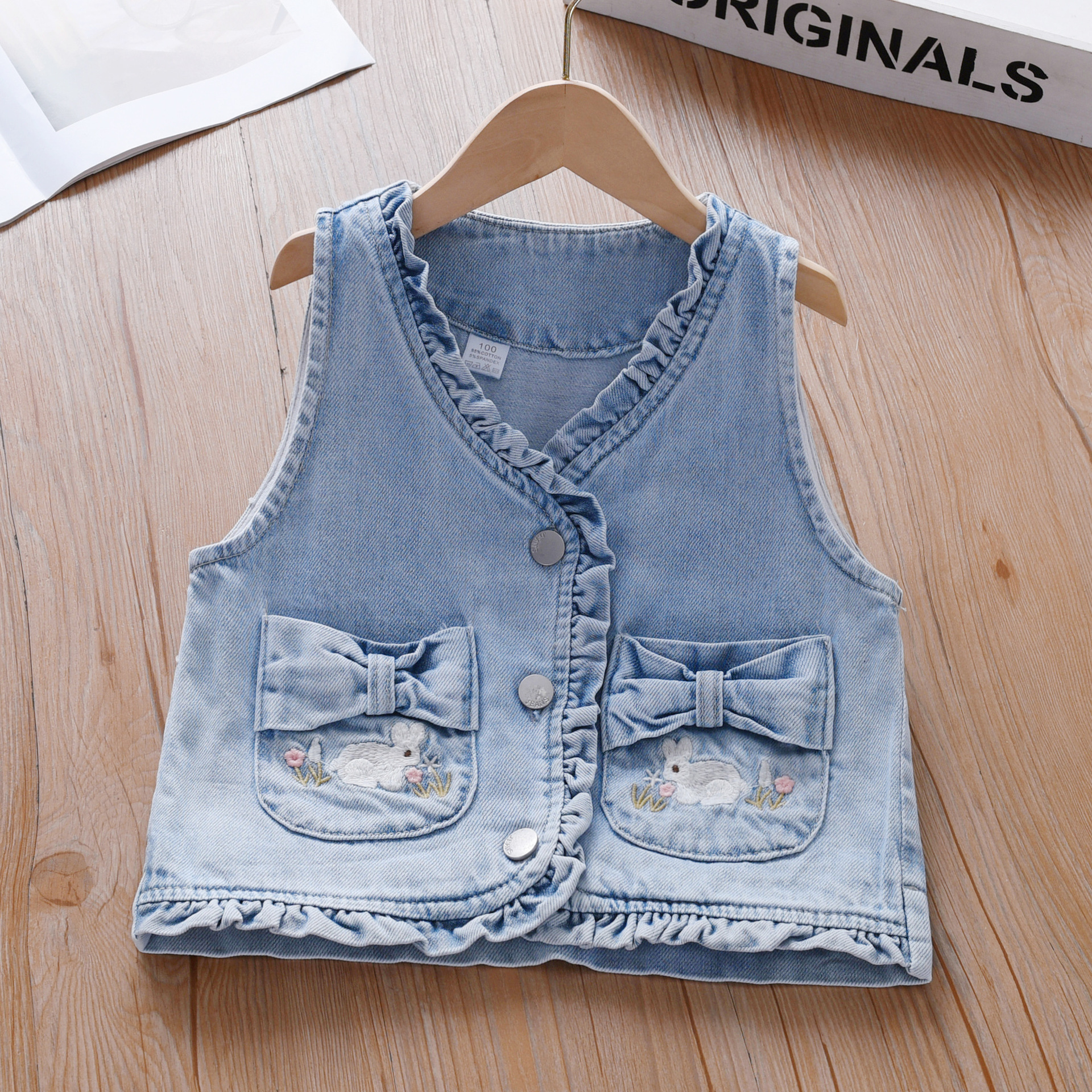 소녀 데님 조끼 봄과 가을 2025 새로운 어린이 세련 된 유행 조끼 아기 소녀 가을 조끼스토어 가기