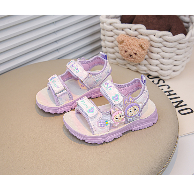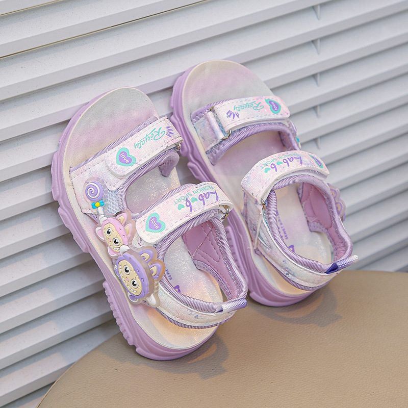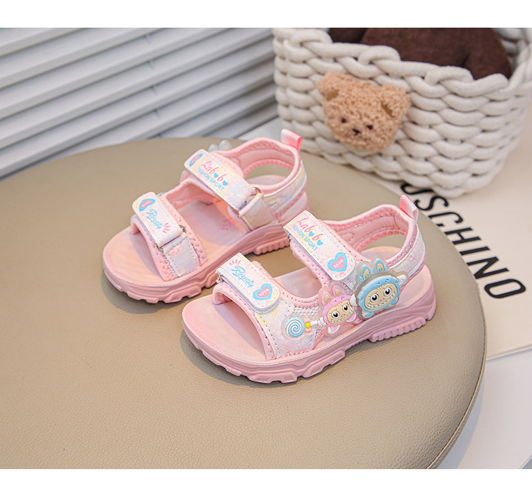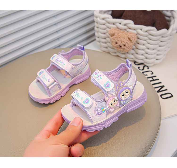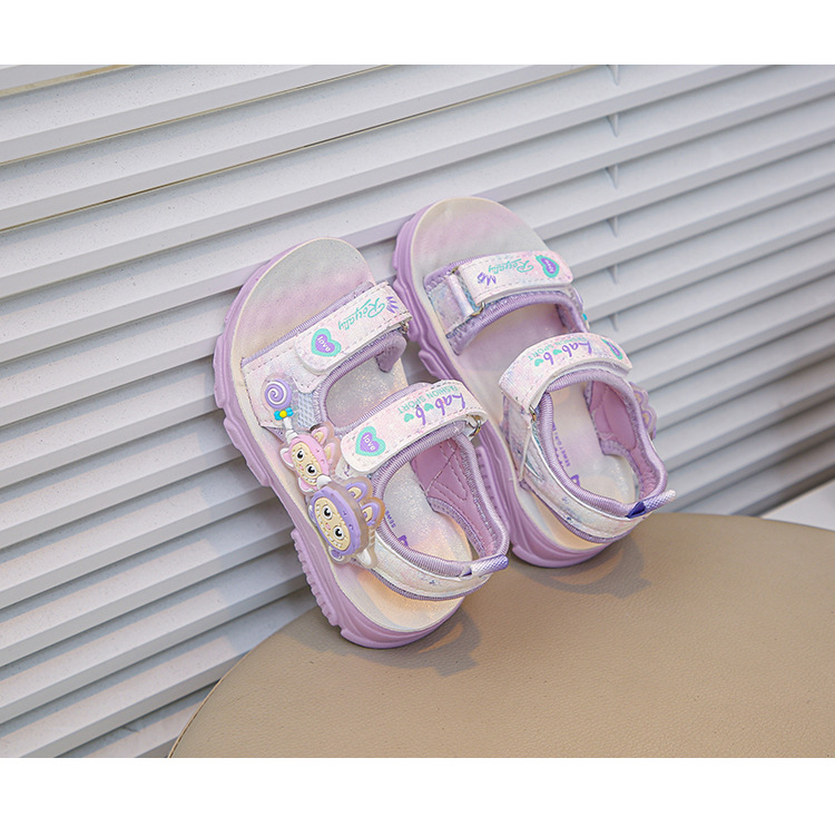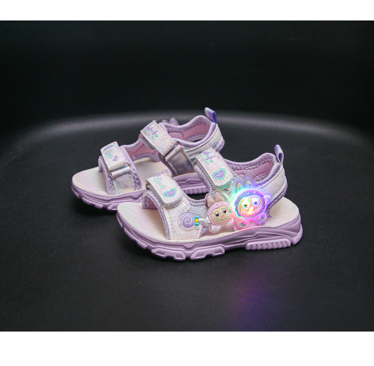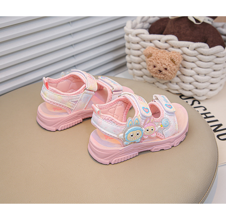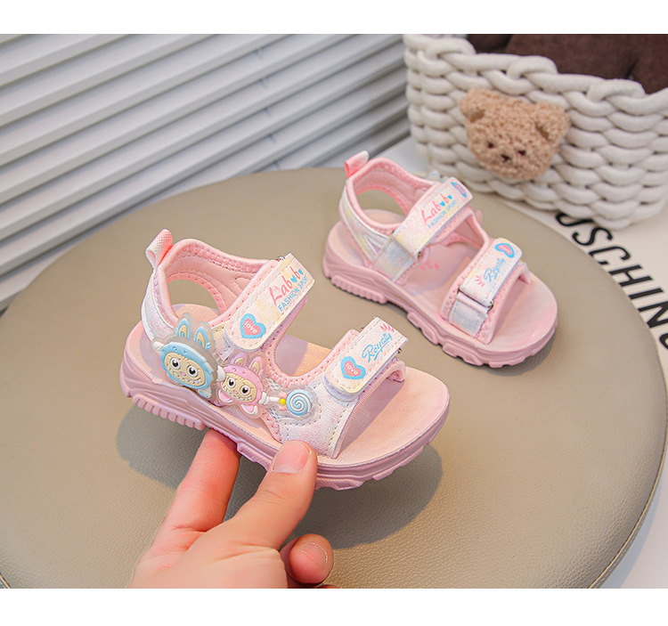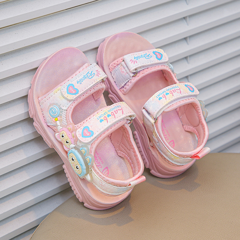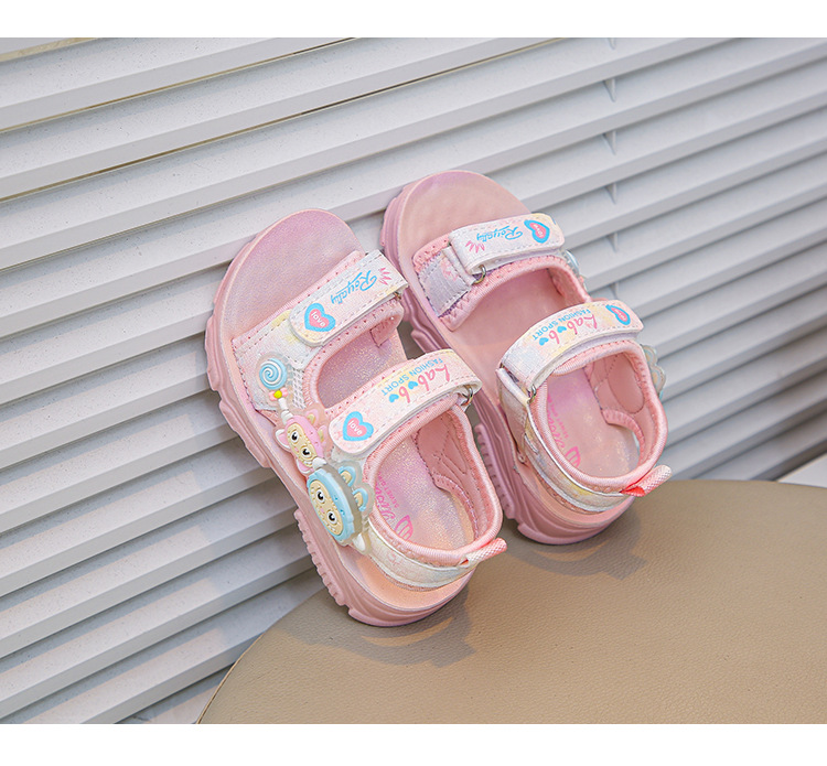 2025 여름 새로운 한국 스타일 방수 귀여운 어린이 해변 신발 빛나는 조명 만화 소녀 샌들