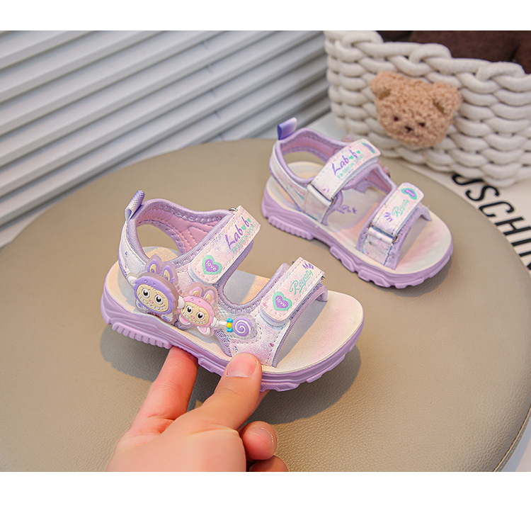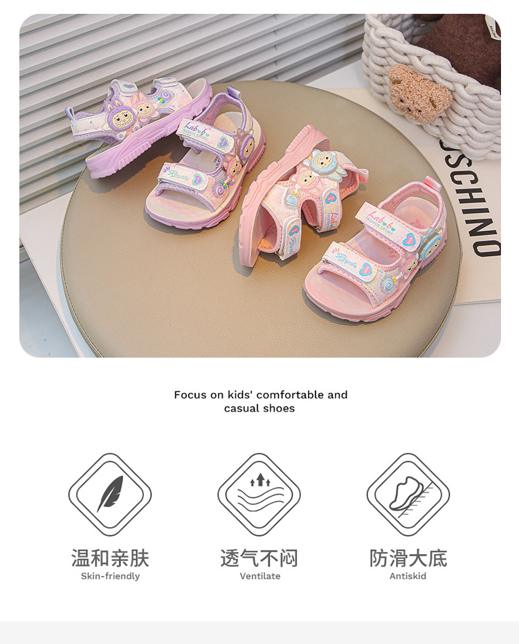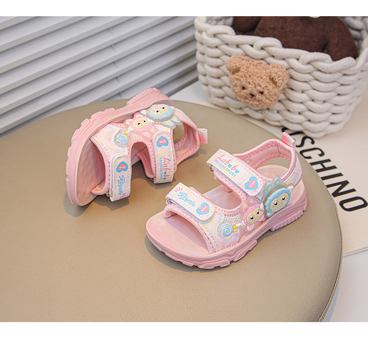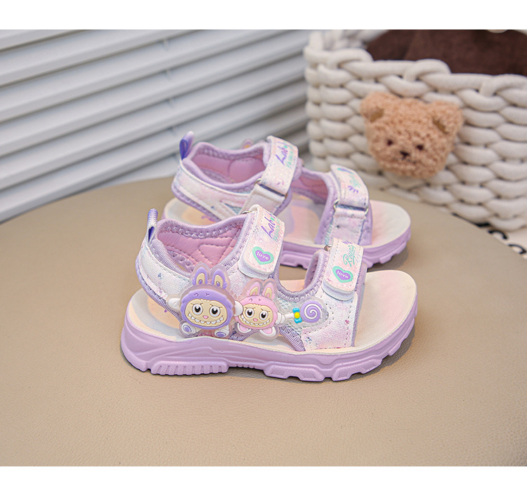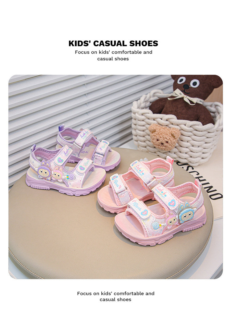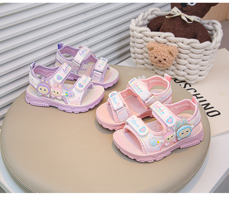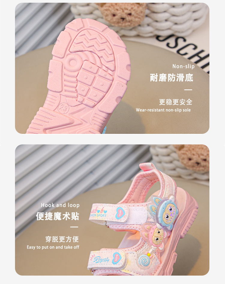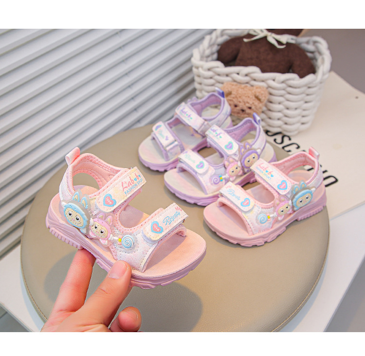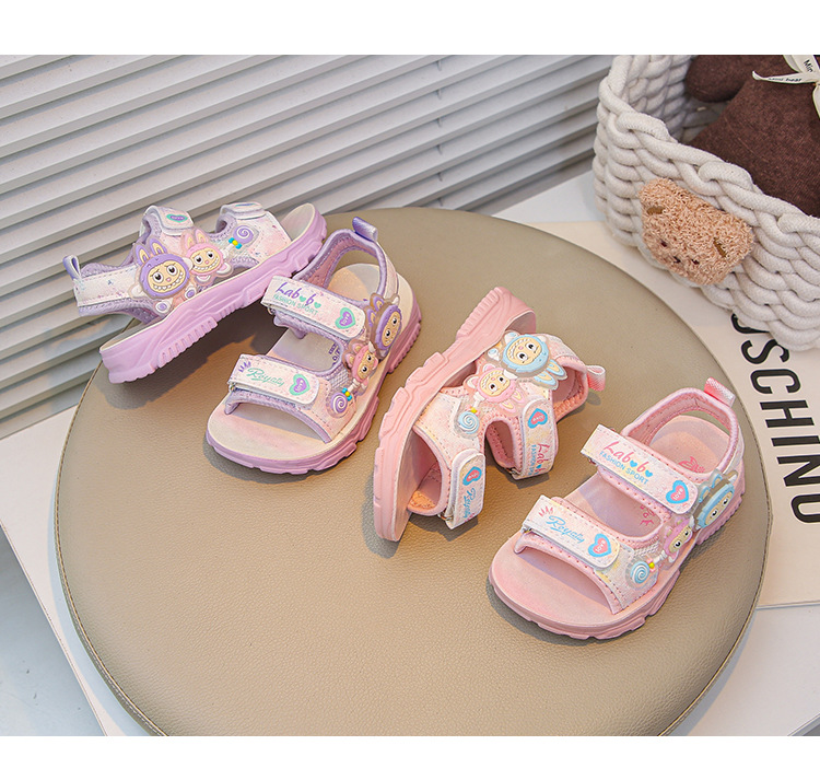 2025 여름 새로운 한국 스타일 방수 귀여운 어린이 해변 신발 빛나는 조명 만화 소녀 샌들