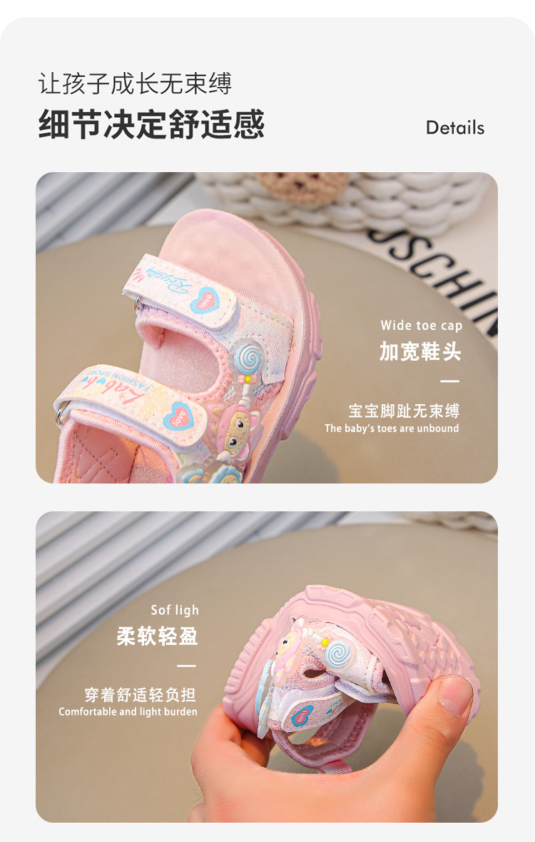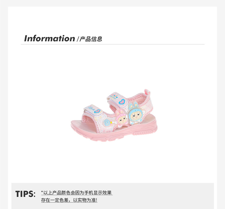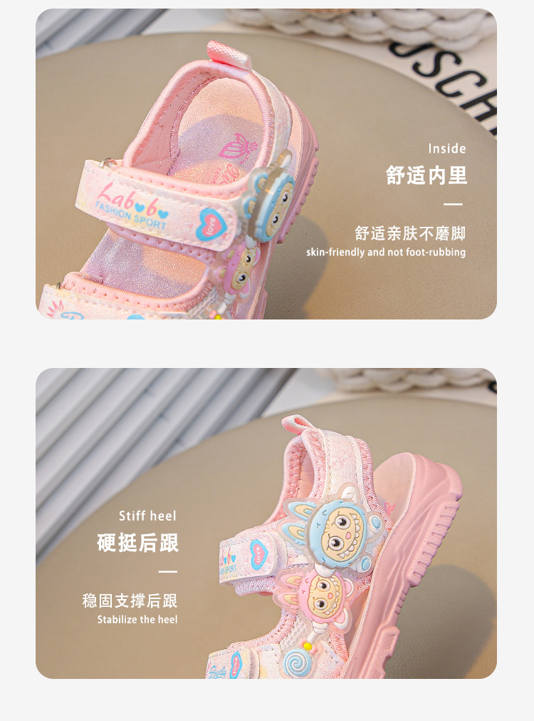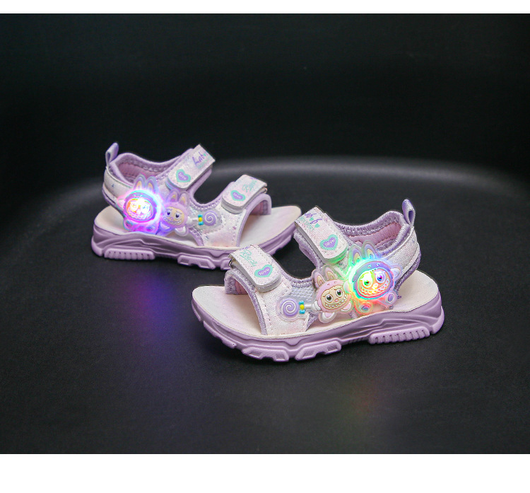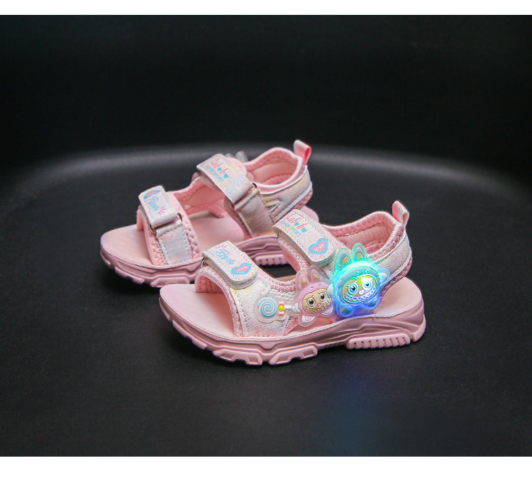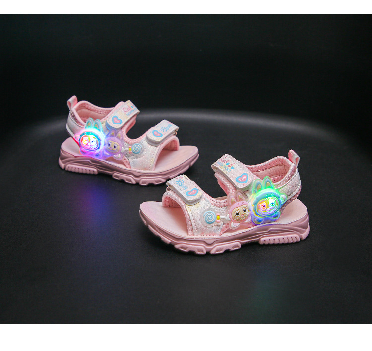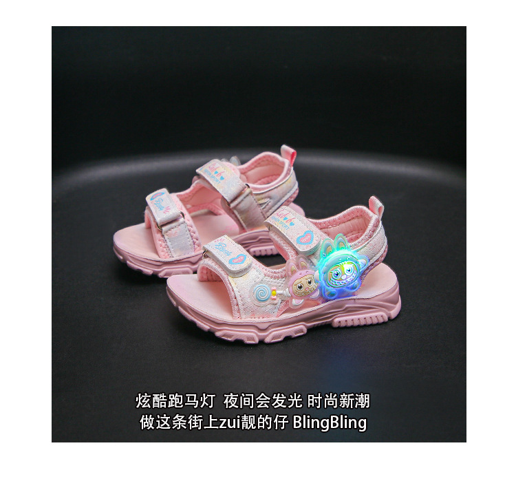 2025 여름 새로운 한국 스타일 방수 귀여운 어린이 해변 신발 빛나는 조명 만화 소녀 샌들스토어 가기