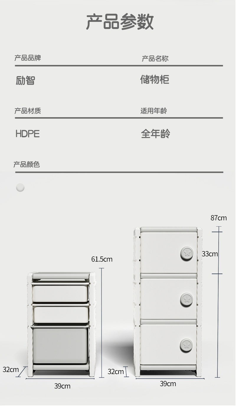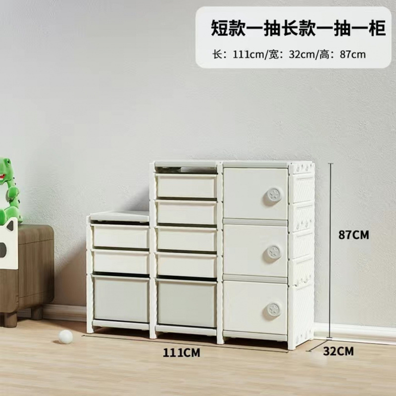 • 흰색과 회색의 짧은 스타일 서랍 2개와 캐비닛 1개
