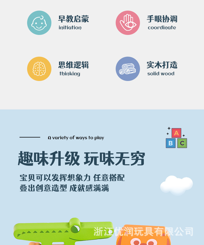 CPC 국경 간 동물 스태킹 높은 빌딩 베이비 밸런스 스태킹 0-3 세 조기 교육 빌딩 블록 어린이 교육 장난감