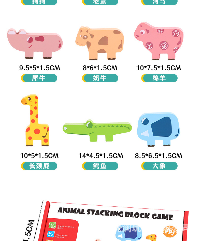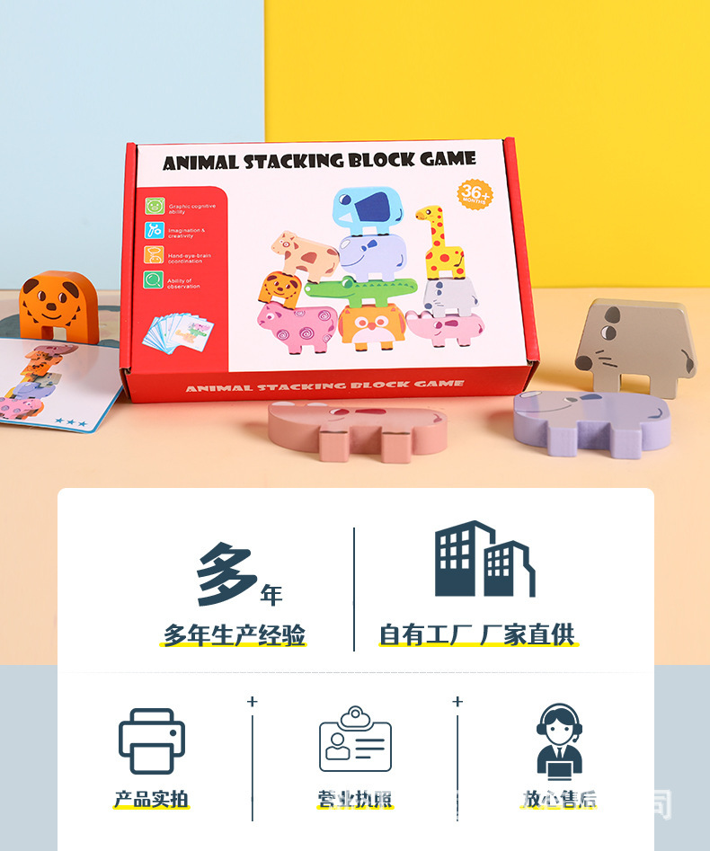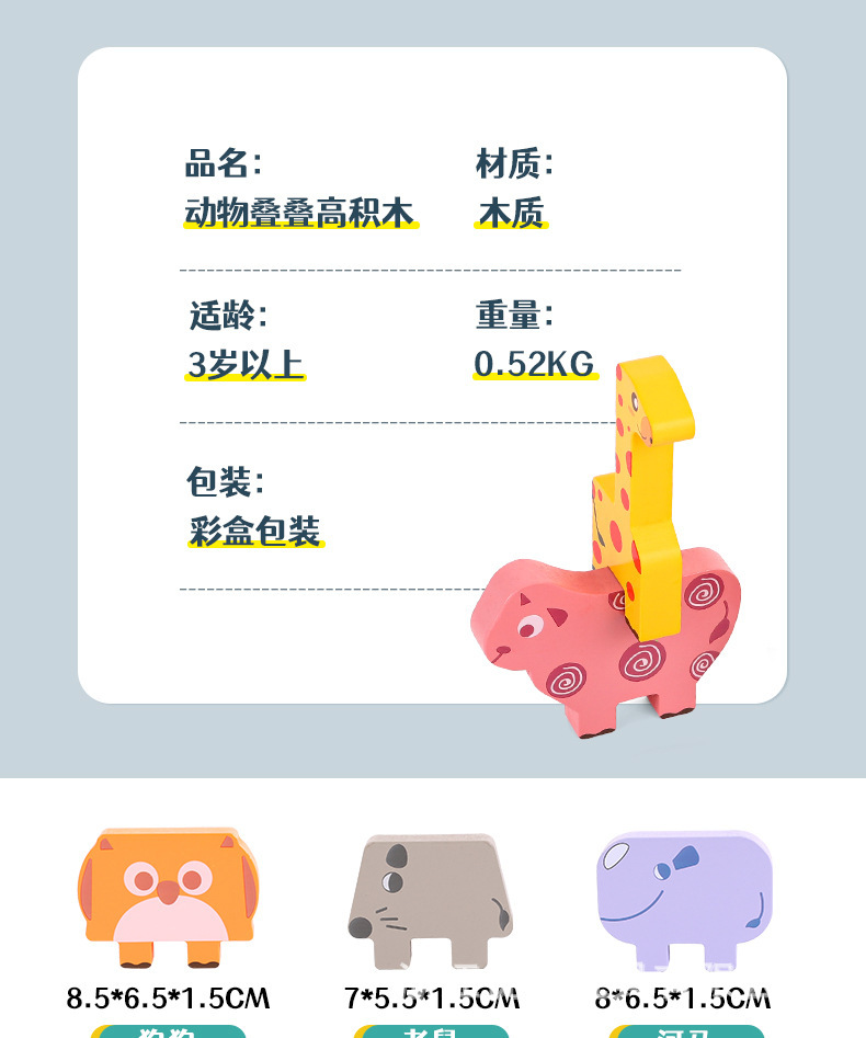 CPC 국경 간 동물 스태킹 높은 빌딩 베이비 밸런스 스태킹 0-3 세 조기 교육 빌딩 블록 어린이 교육 장난감스토어 가기