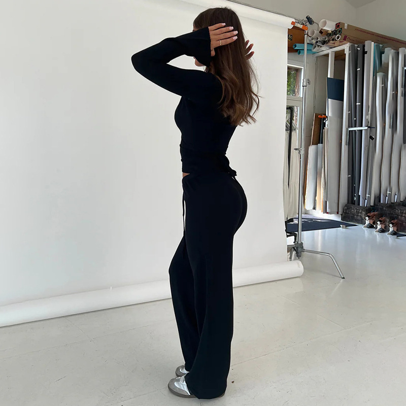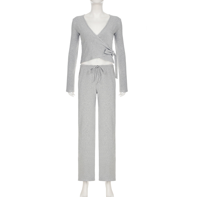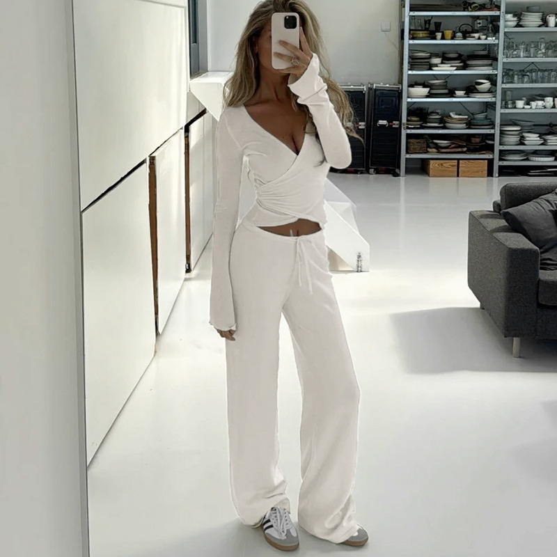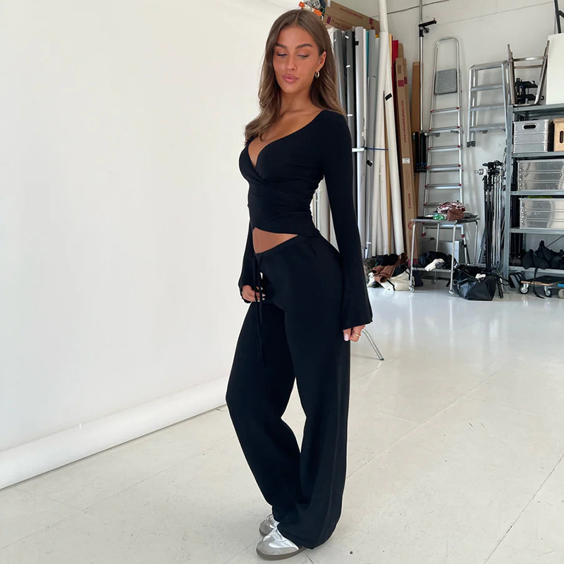 국경 간 y2k 바람 2025 봄 새로운 여성 섹시한 V 넥 긴 소매 탑 패션 캐주얼 바지 세트