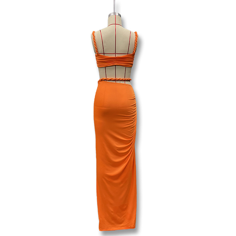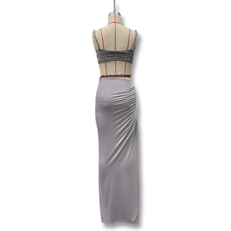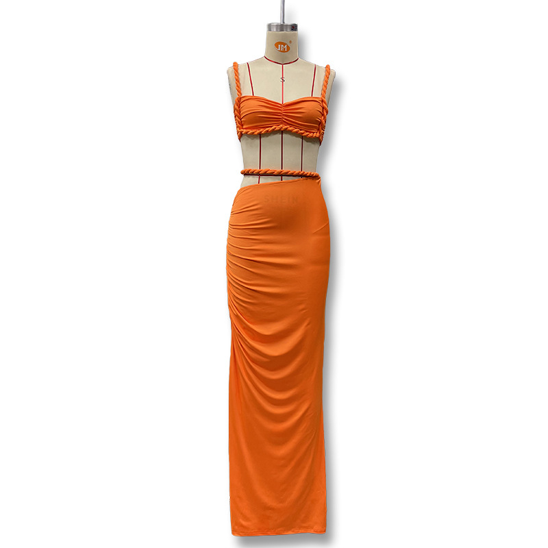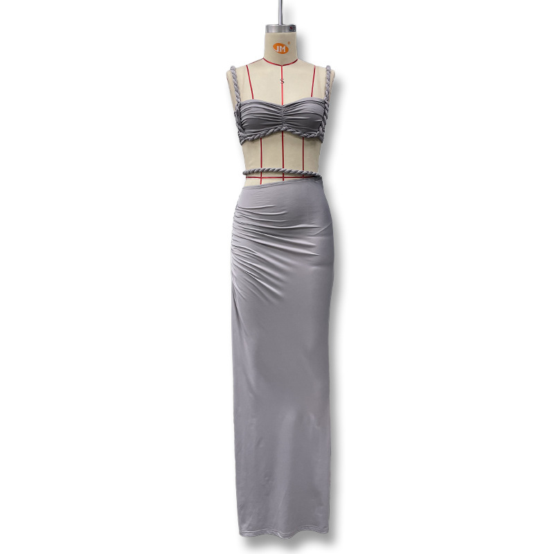 국경 간 유럽과 미국 여성 의류 2025 봄과 여름 새로운 단색 섹시한 슬링 슬림 핏 힙합 스커트 세트