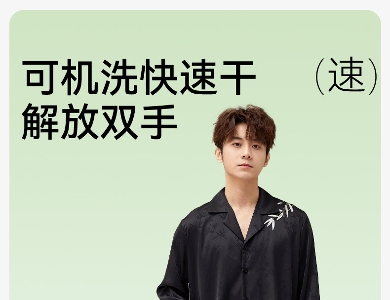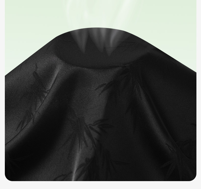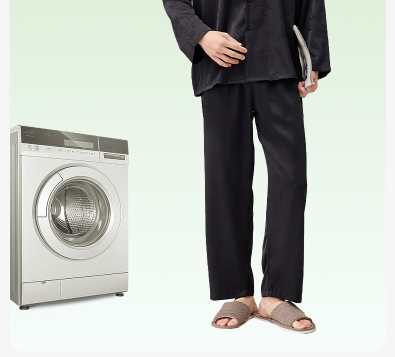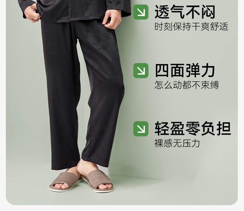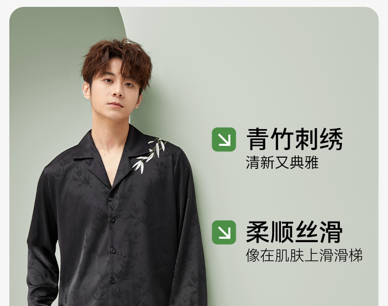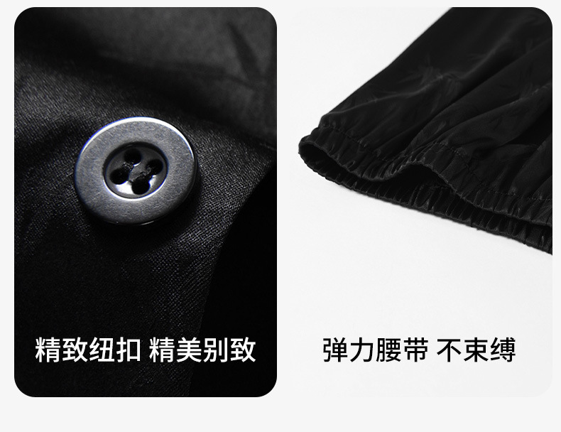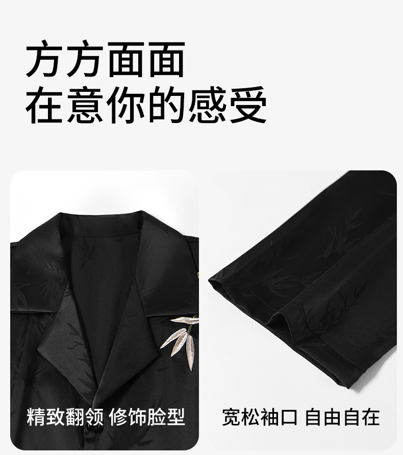【남성전용】블랙 아이스 실크 잠옷 세트, 대나무 잎 자카드 실크 홈웨어, 남성용 고급스러운 디자인, 외부에서 착용 가능