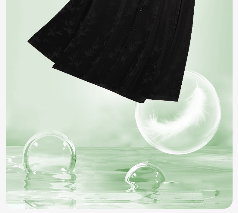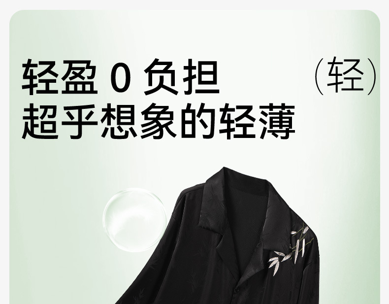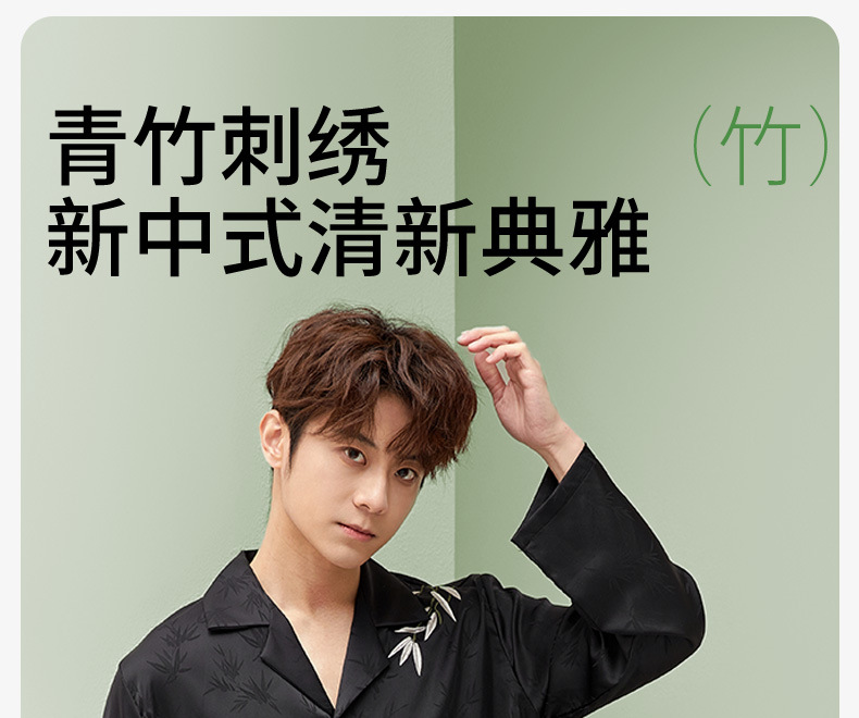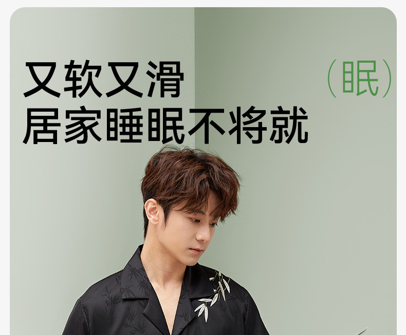 【남성전용】블랙 아이스 실크 잠옷 세트, 대나무 잎 자카드 실크 홈웨어, 남성용 고급스러운 디자인, 외부에서 착용 가능스토어 가기