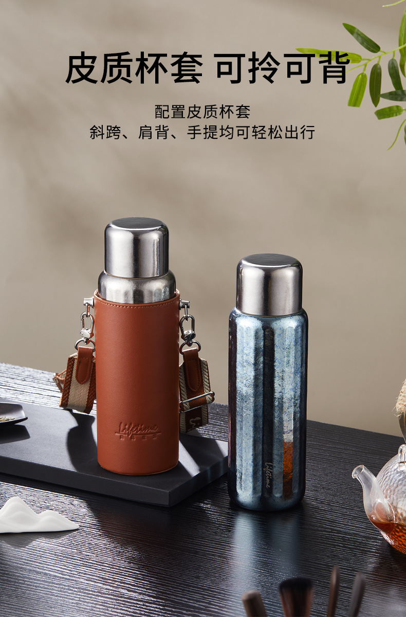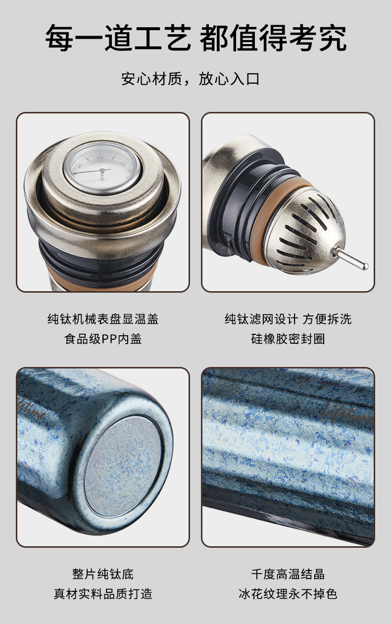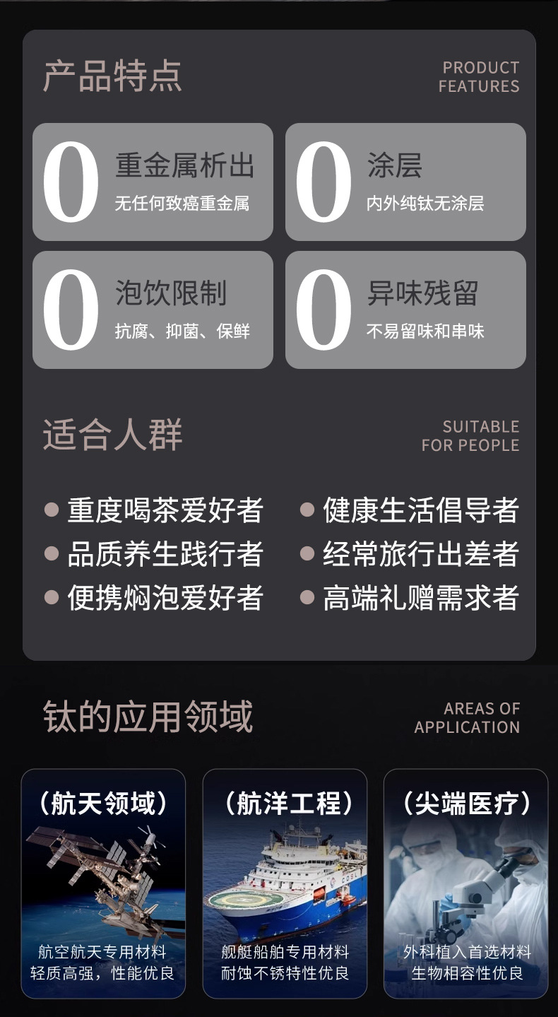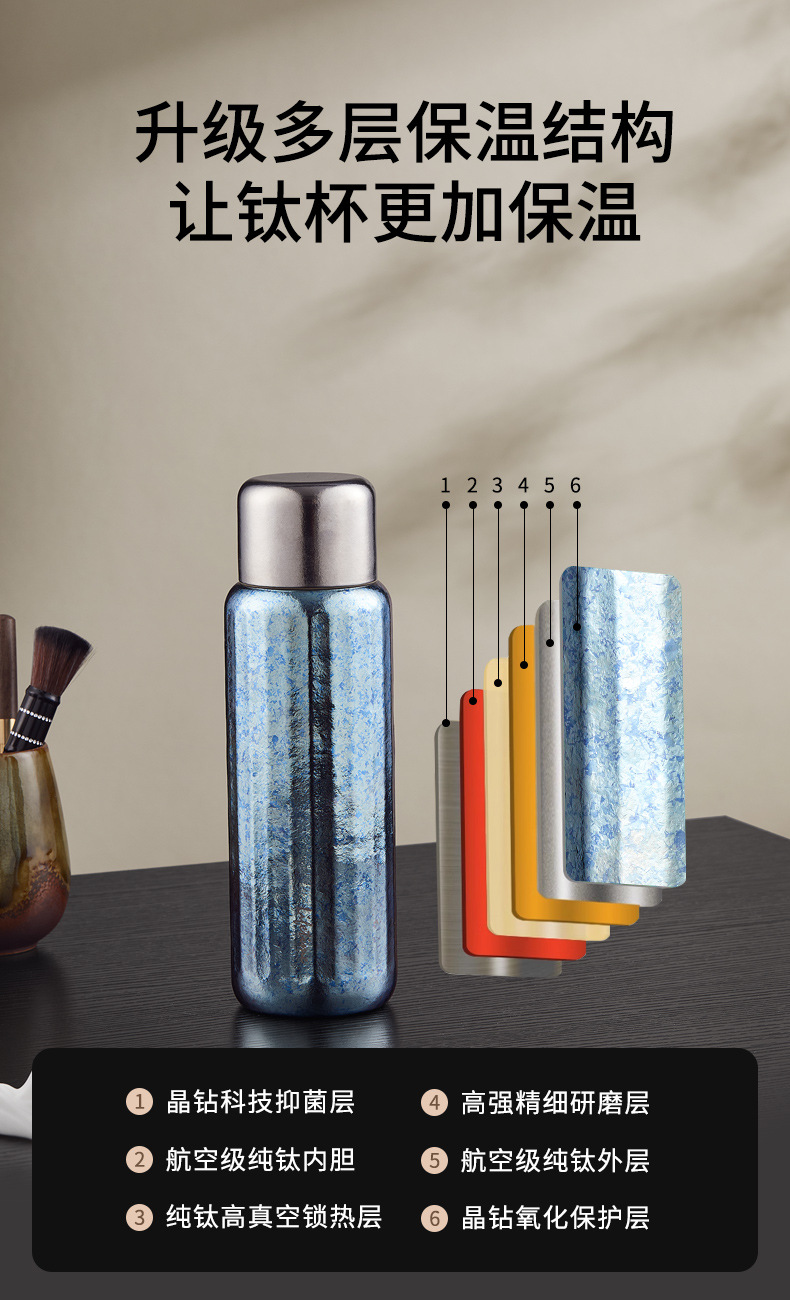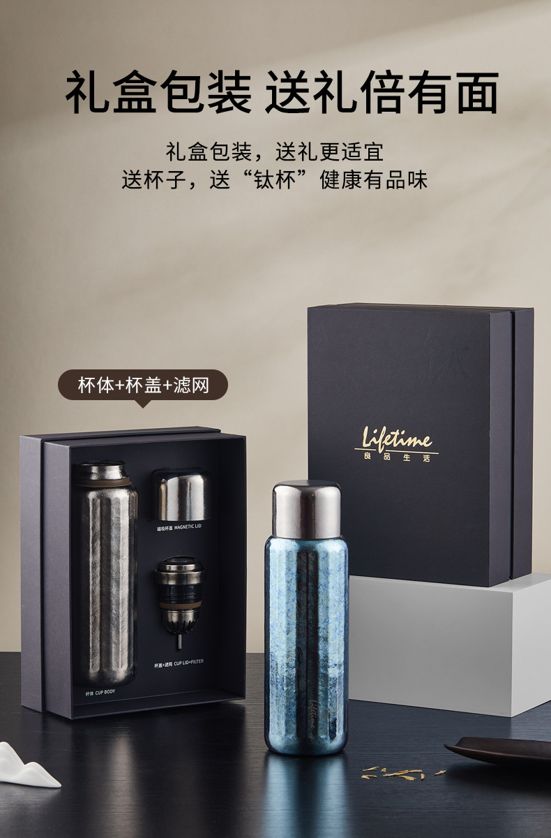 좋은 생활 더블 레이어 전체 티타늄 보온병 컵 차 분리 순수 티타늄 티 컵 하이 엔드 비즈니스 자기 건강 티타늄 컵