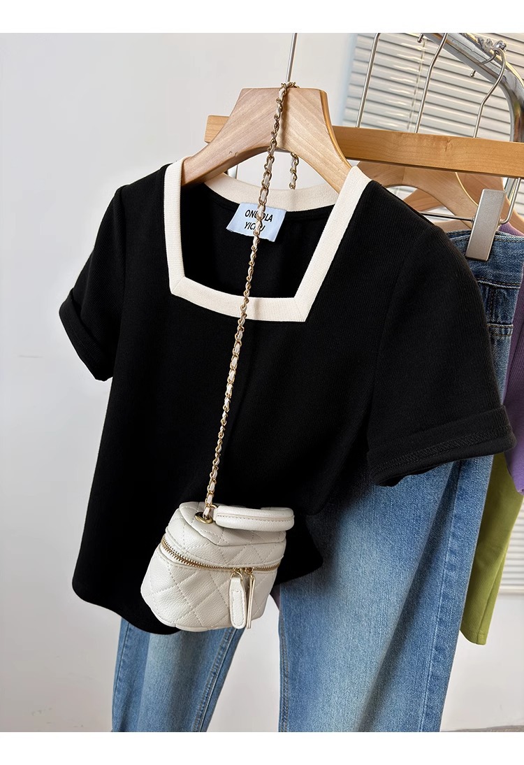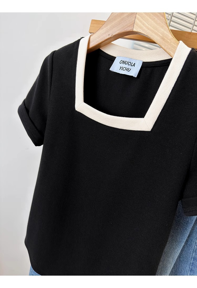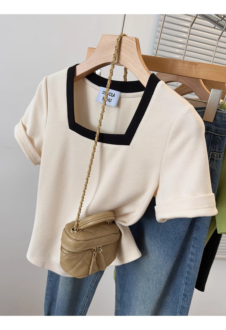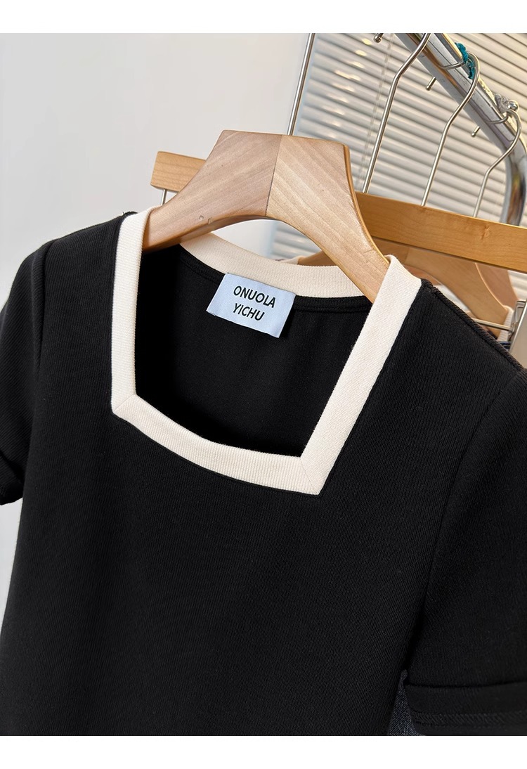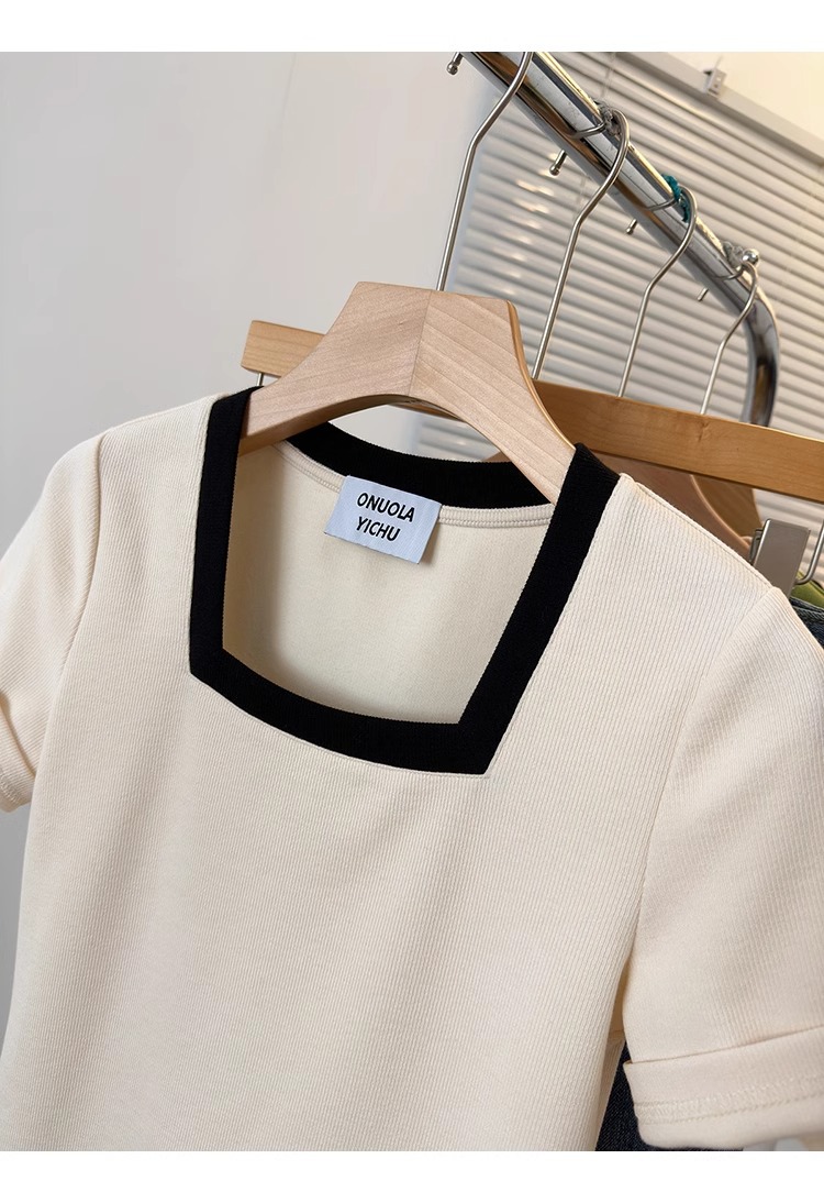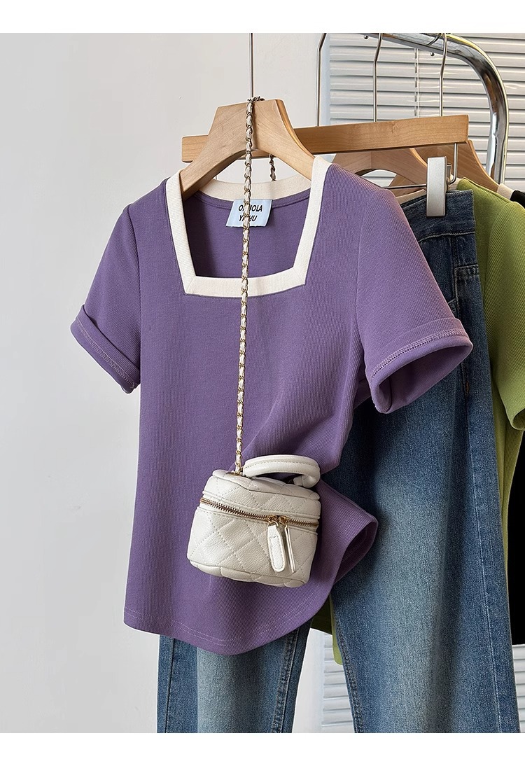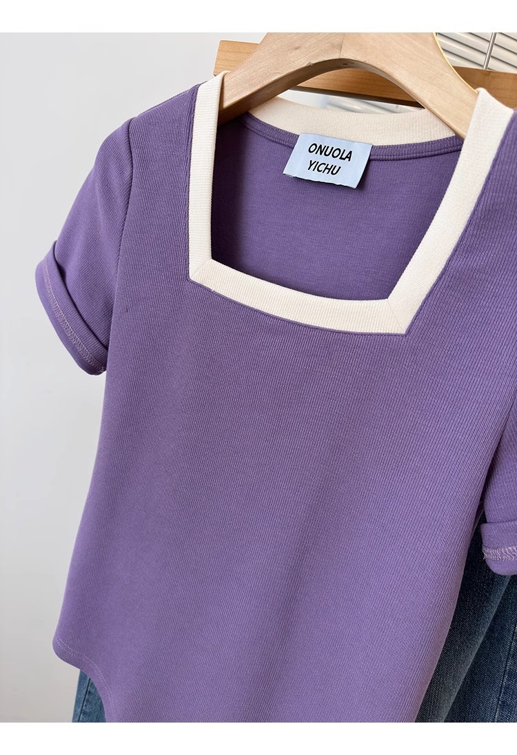 플러스 사이즈 통통녀 여성 패션 외국 스타일 스퀘어 칼라 반팔 티셔츠 여름 어깨 슬리밍면 티셔츠 재킷 200kg스토어 가기