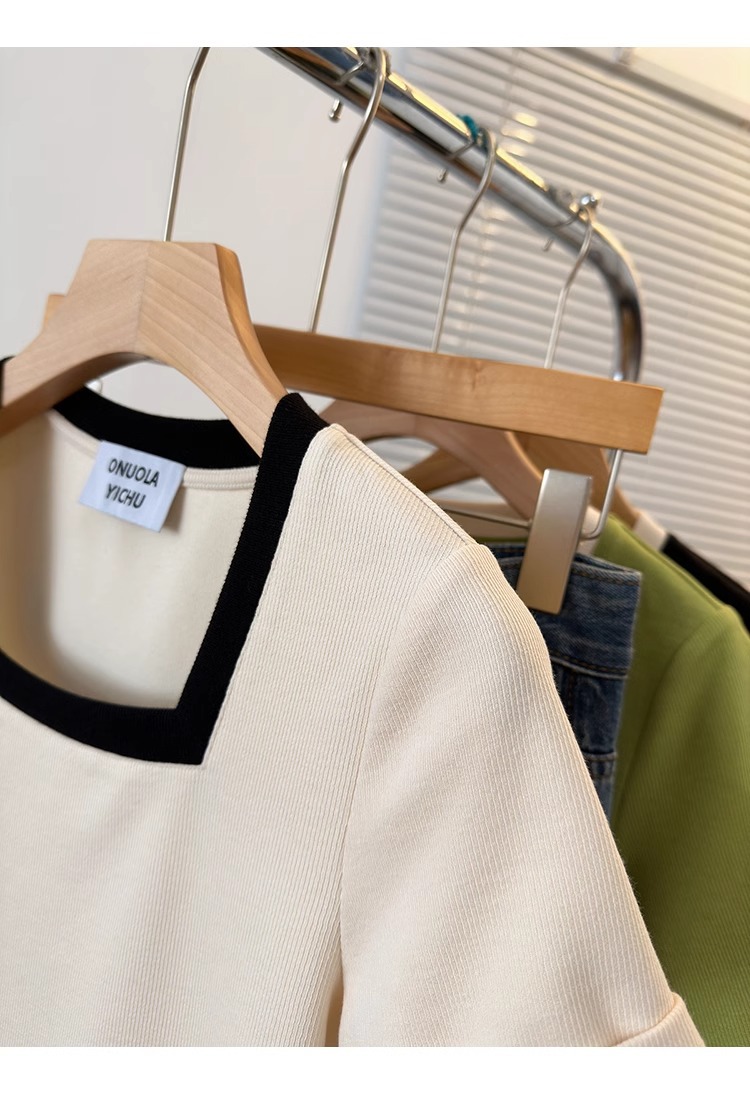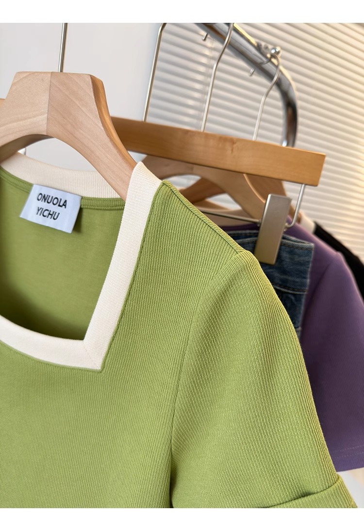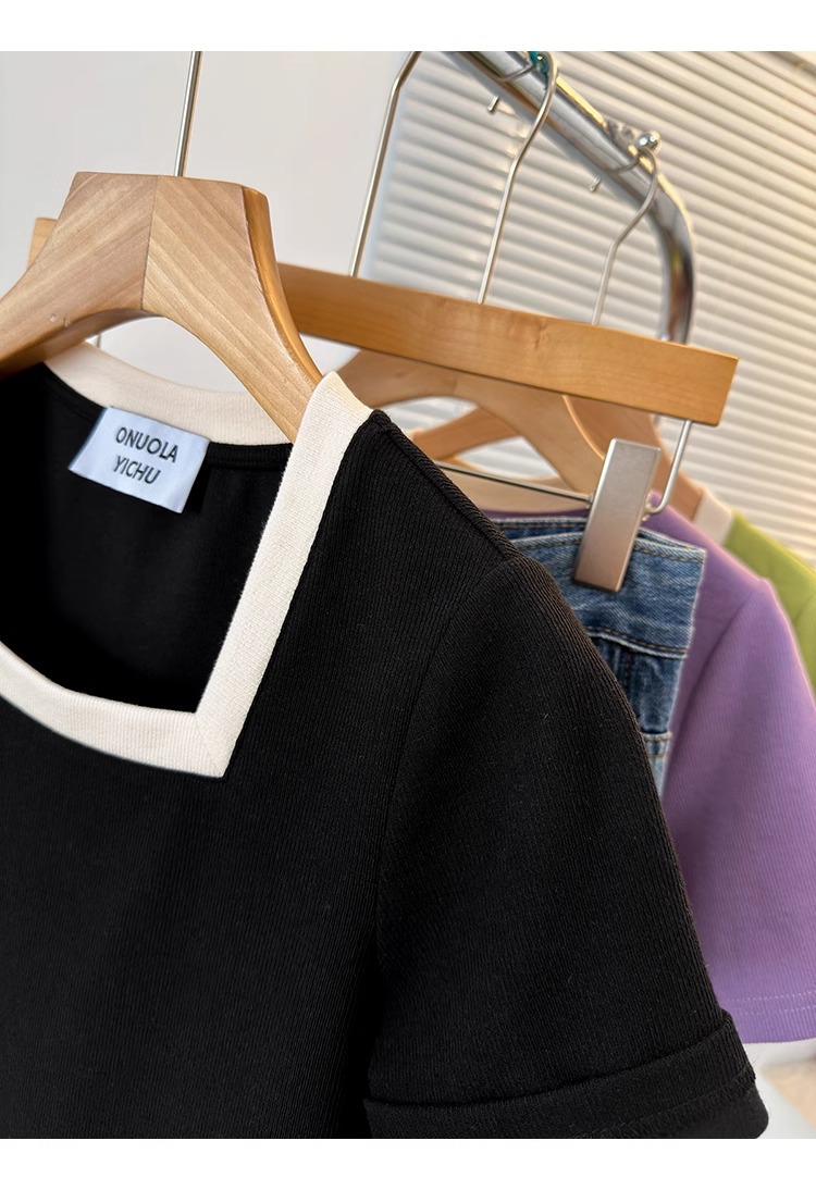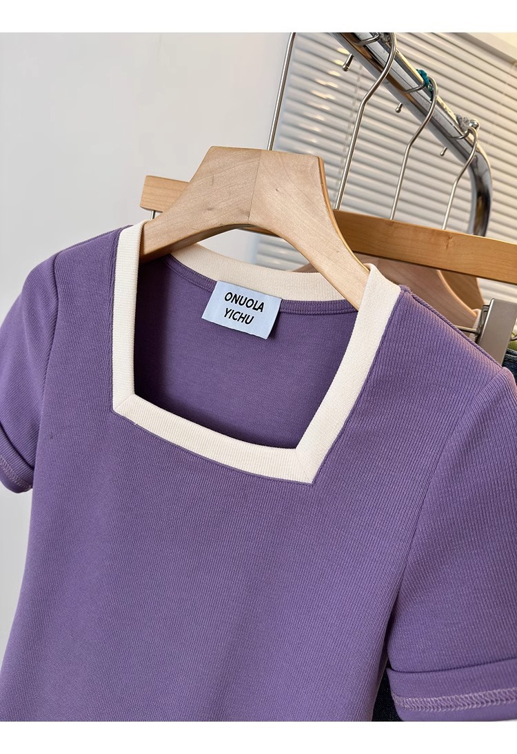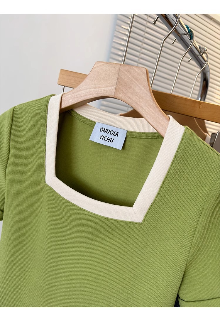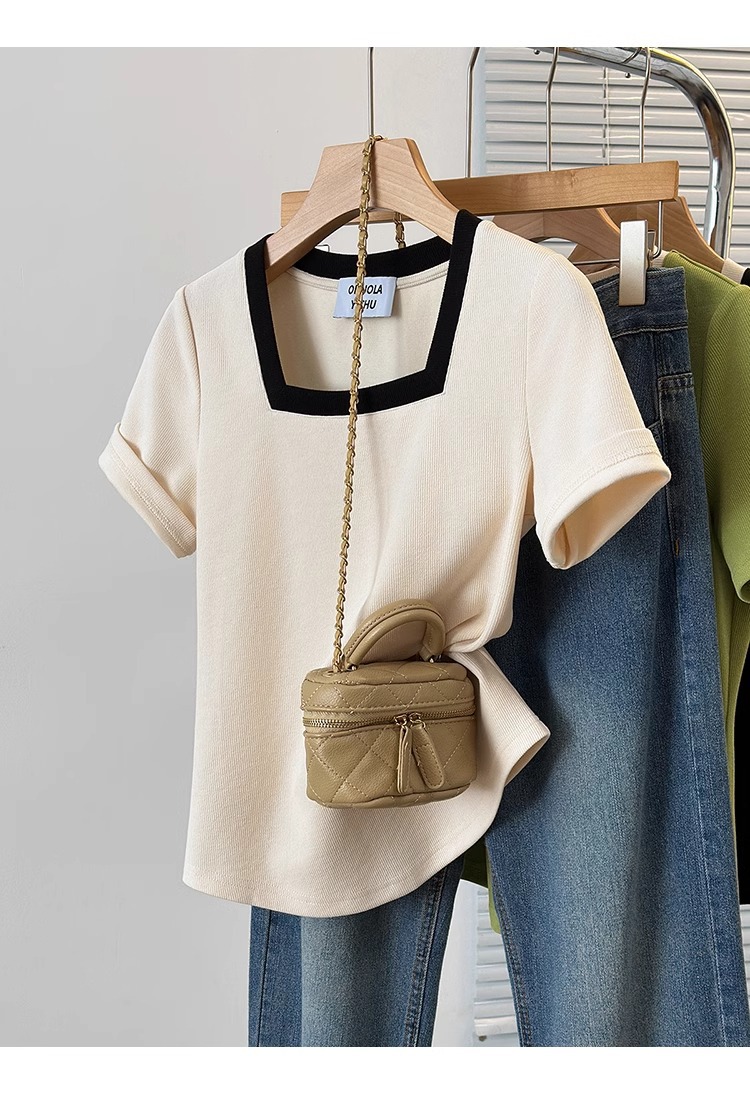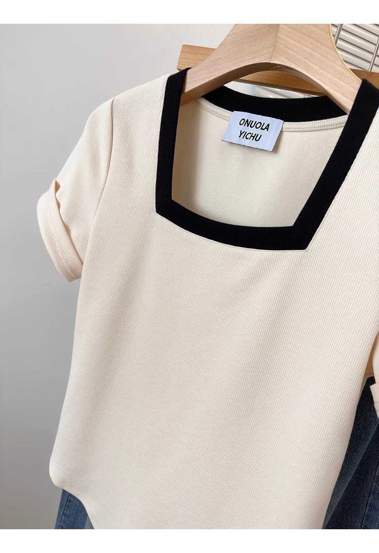 플러스 사이즈 통통녀 여성 패션 외국 스타일 스퀘어 칼라 반팔 티셔츠 여름 어깨 슬리밍면 티셔츠 재킷 200kg스토어 가기