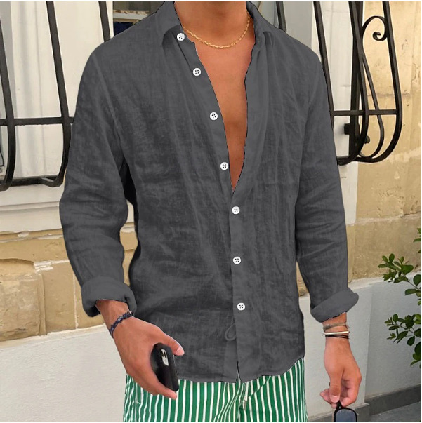 남자 셔츠 리넨 셔츠 여름 셔츠 비치 셔츠 단색 캐주얼 매일 긴 소매 옷깃 봄과 여름 의류