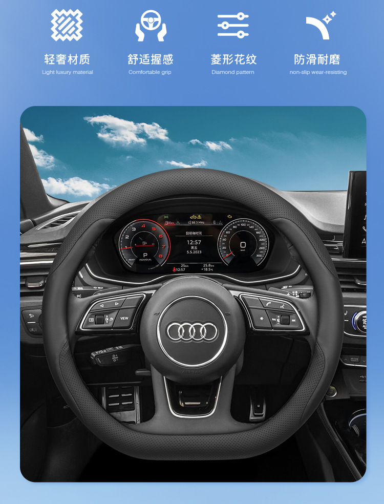 아우디 A4L 스티어링 휠 커버 가죽 A3 Q2L Q3 Q5L A6L 특수 초박형 손으로 꿰매는 장식 핸들 커버