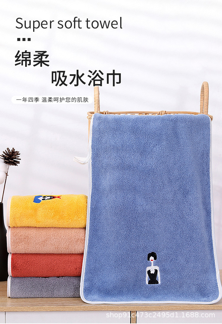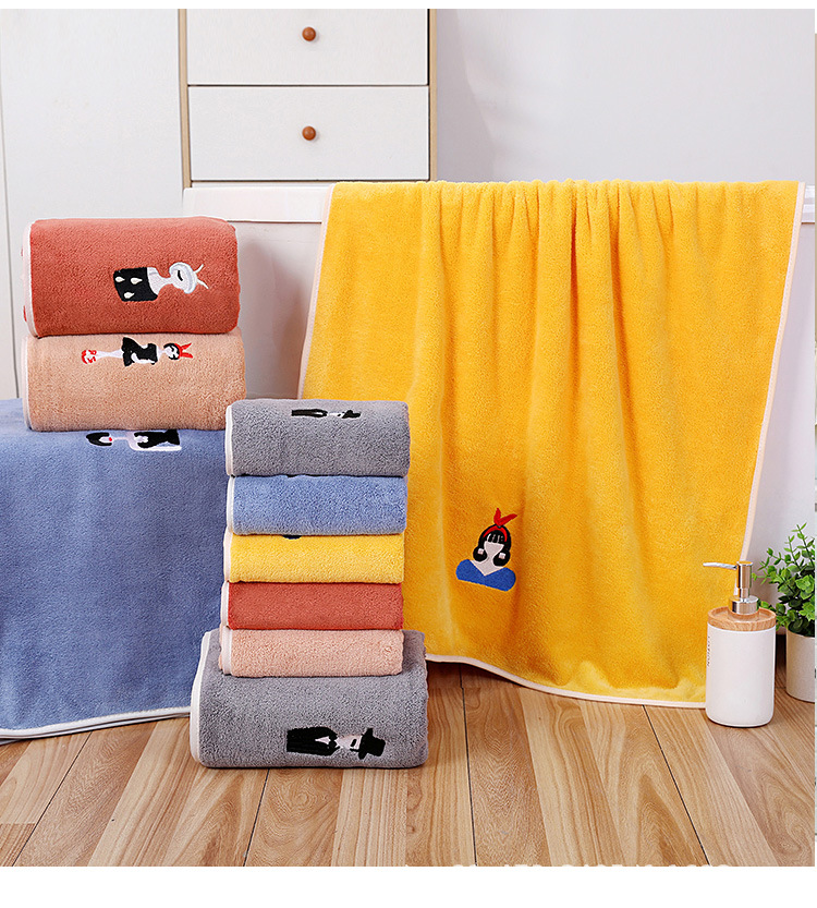 새로운 산호 양털 만화 자수 캐릭터 목욕 타월 가정용 두꺼운 얼굴 세척 수건 휴일 프로모션 선물 세트 수건