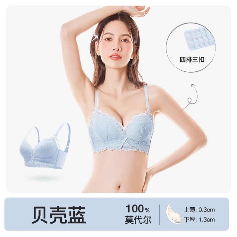 브랜드 같은 스타일 봄과 여름 새로운 100% 모달 편안한 브래지어 섹시한 레이스 속옷 여성의 작은 가슴 푸시 업 브래지어