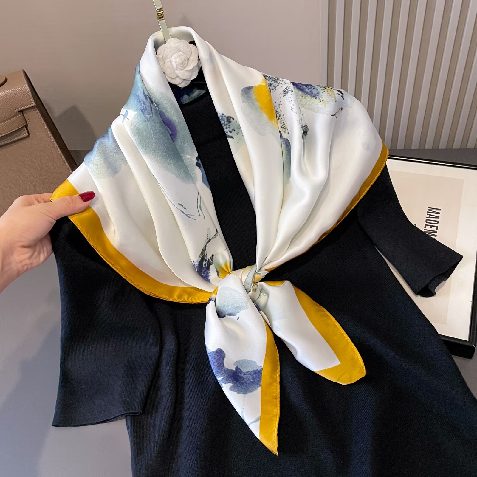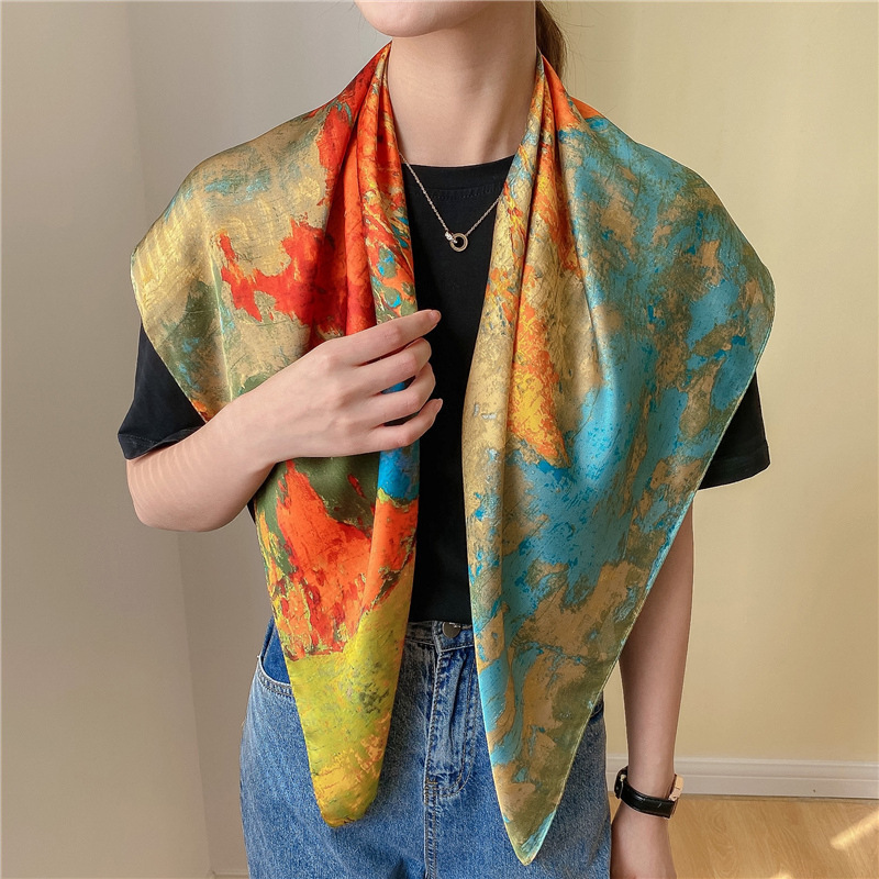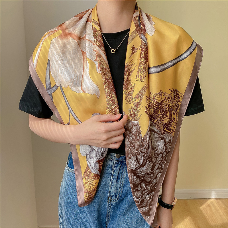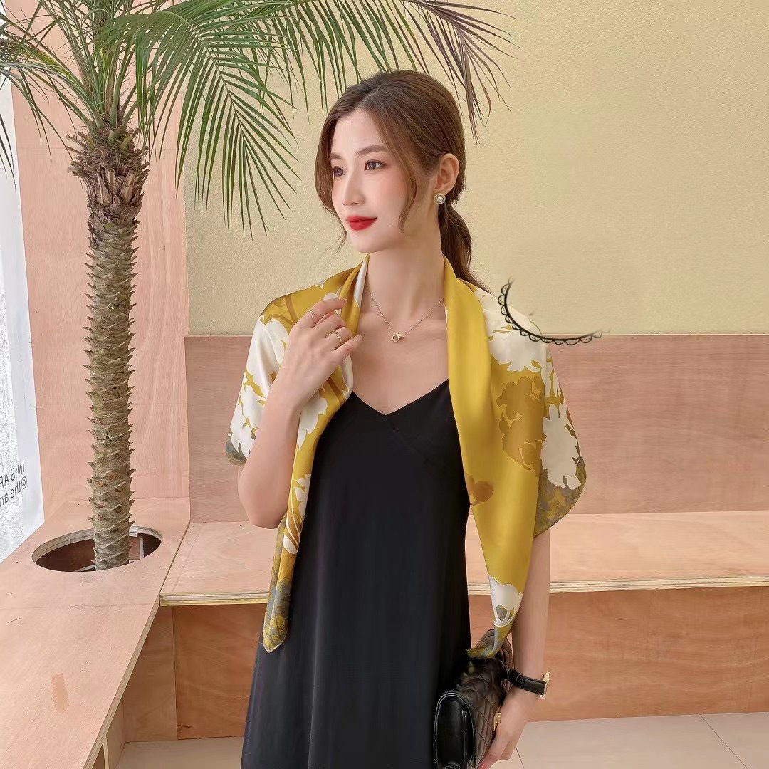 봄과 여름 새로운 일본 간단한 패션 스카프 여성의 인쇄 90 평방 스카프 여성의 국경 간 헤드 스카프 도매