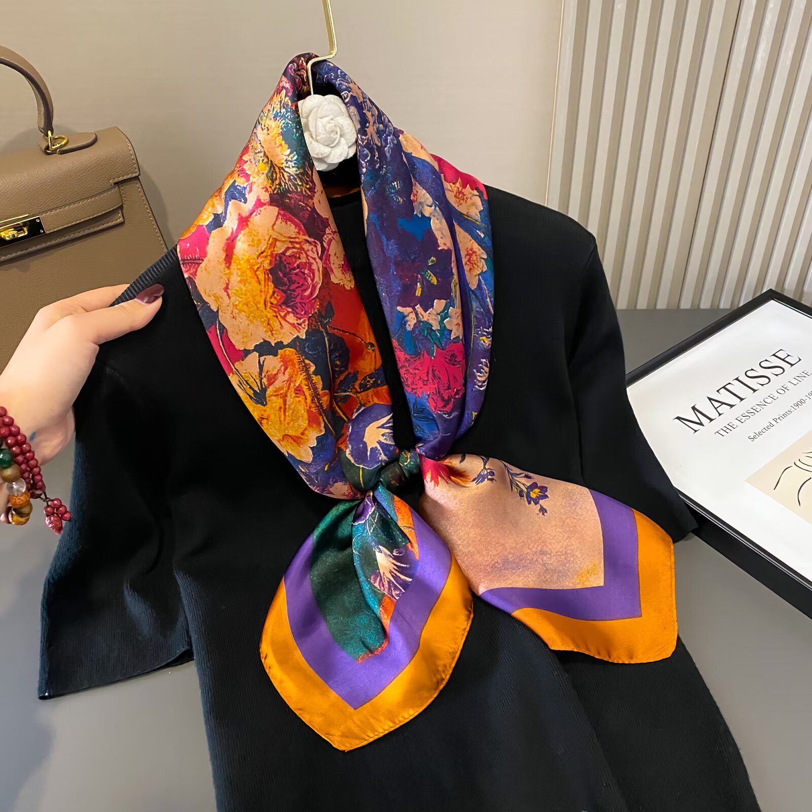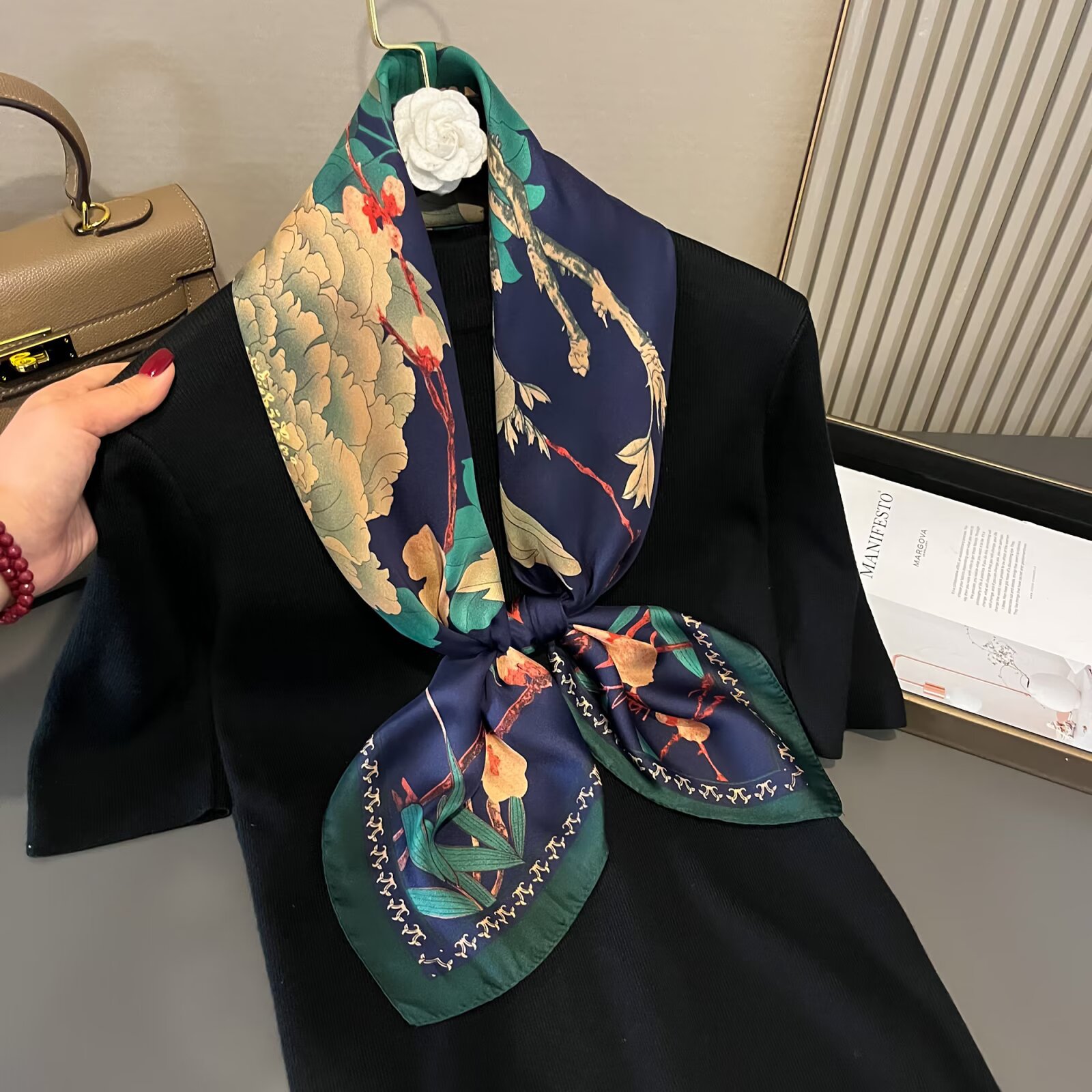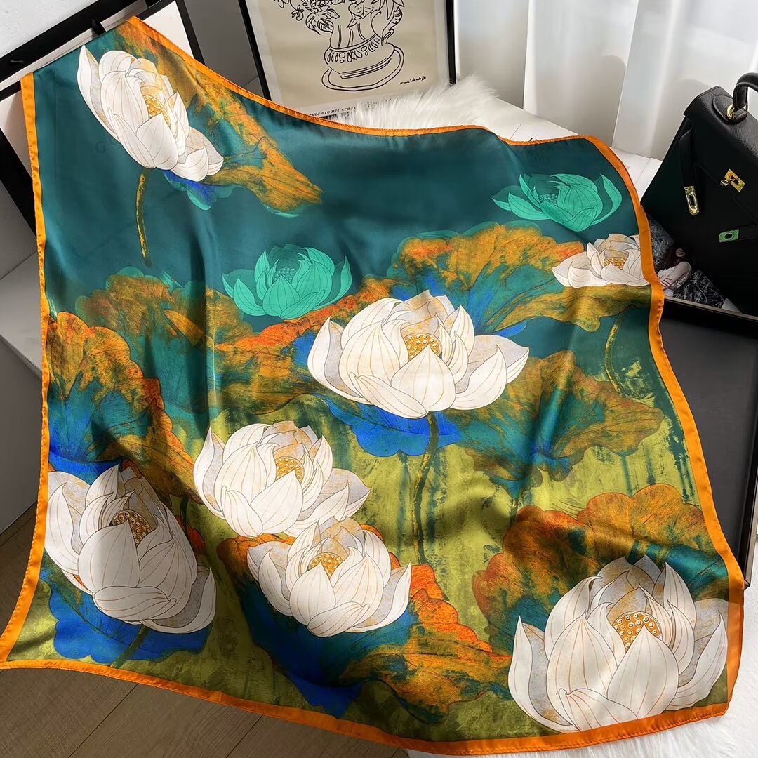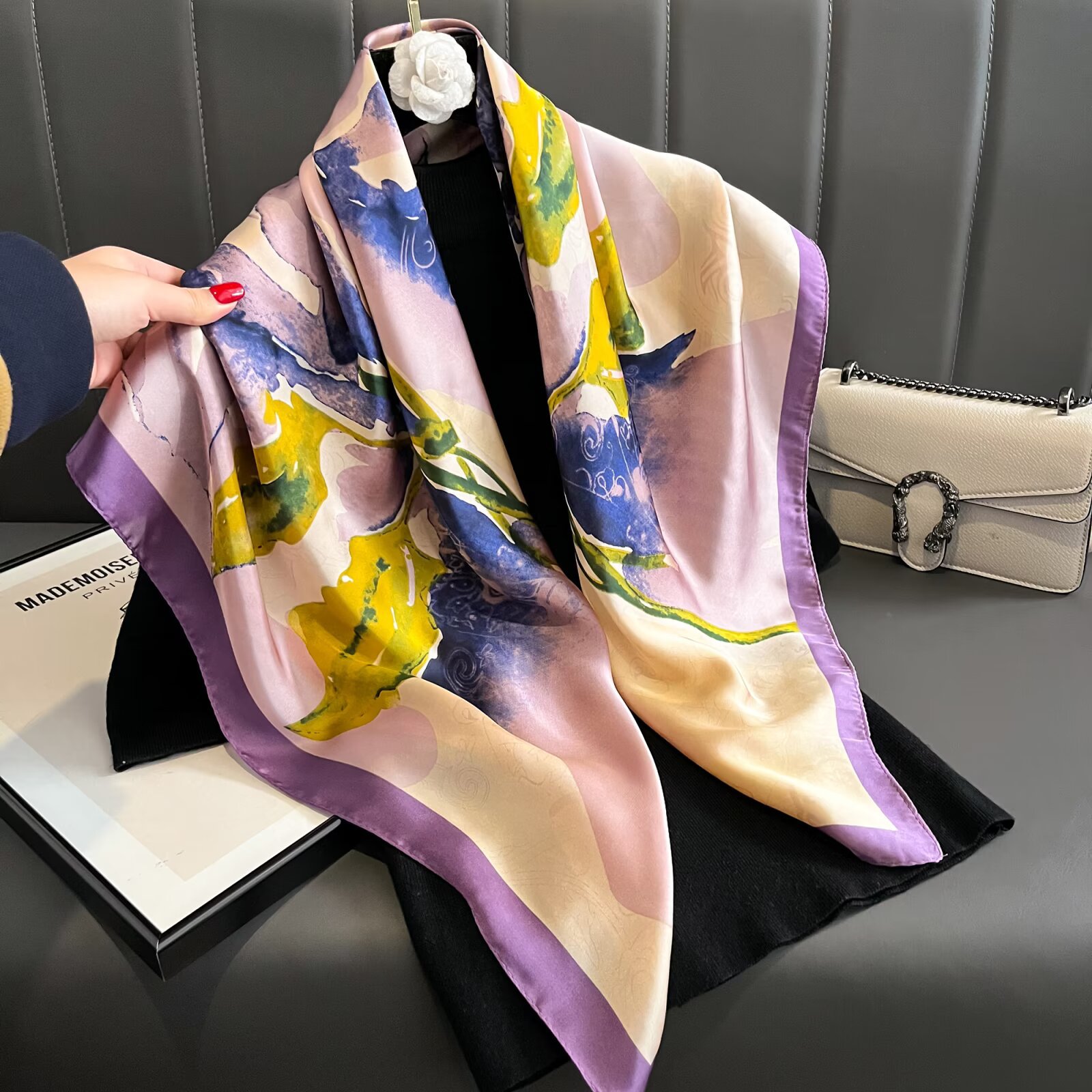 봄과 여름 새로운 일본 간단한 패션 스카프 여성의 인쇄 90 평방 스카프 여성의 국경 간 헤드 스카프 도매