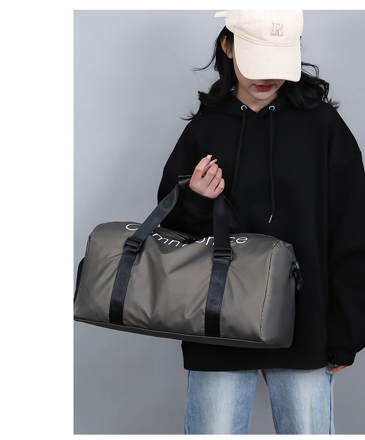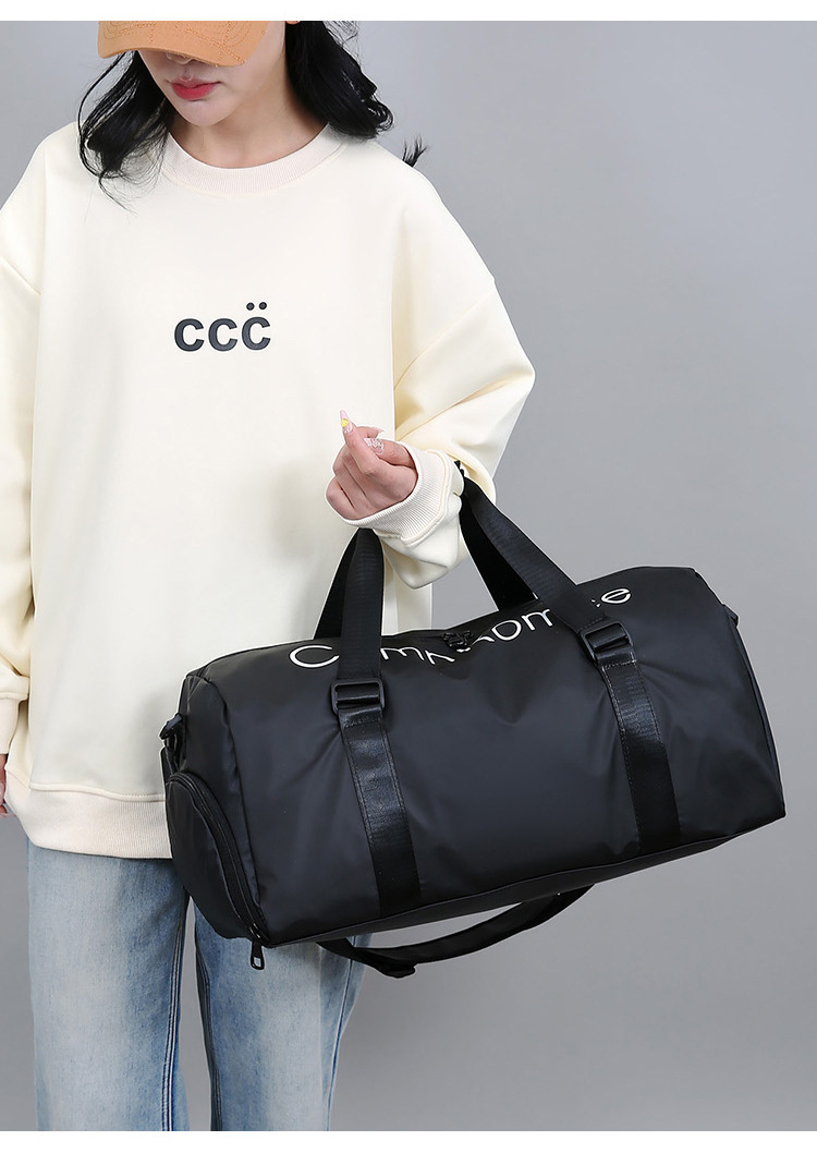 심플한 레터링의 단거리 여행 가방, 휴대용 대용량 스포츠/피트니스 가방, 독립형 신발 수납공간, 출장용 짐 보관 가방