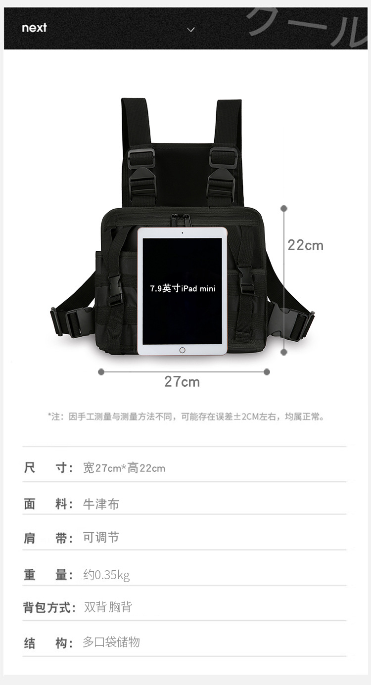 조끼 가방 남자 기능성 가방 국경 대외 무역 전술 가방 거리 패션 승마 크로스 컨트리 가슴 가방 등산 가방 하이킹 가방