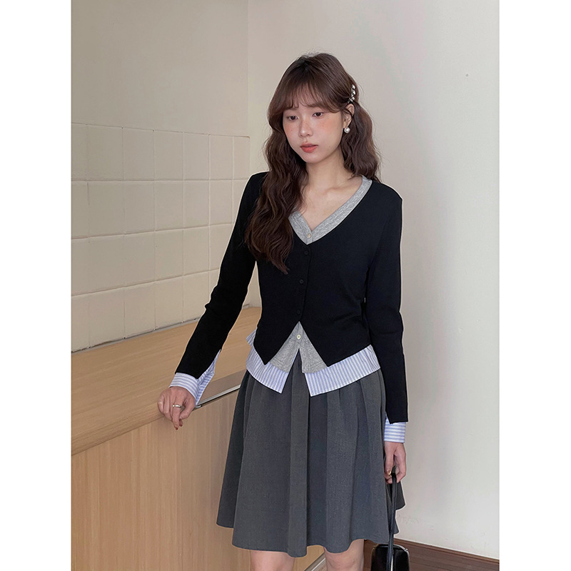 【통근 패션 필수템】게밍 한국 스타일 투피스 니트 가디건 봄 신상 긴팔 상의 Y2776F스토어 가기
