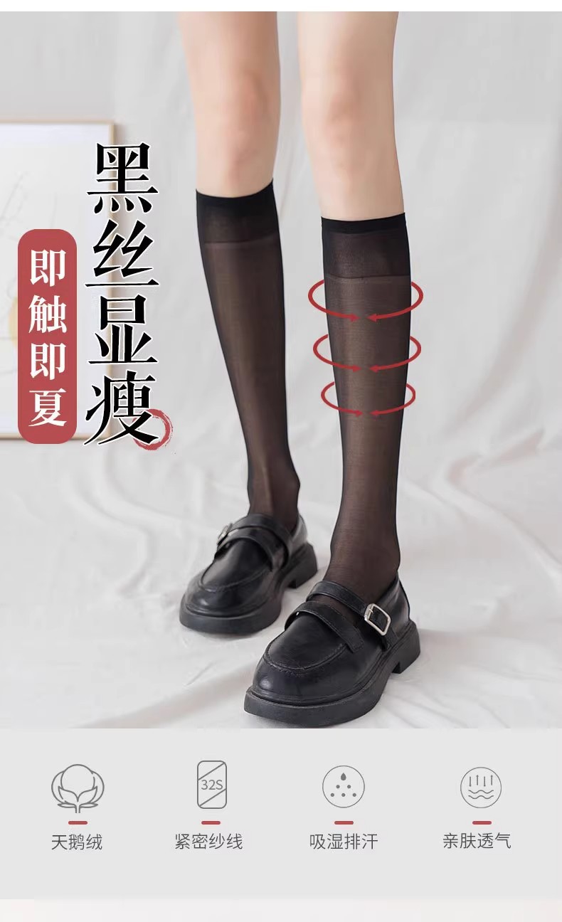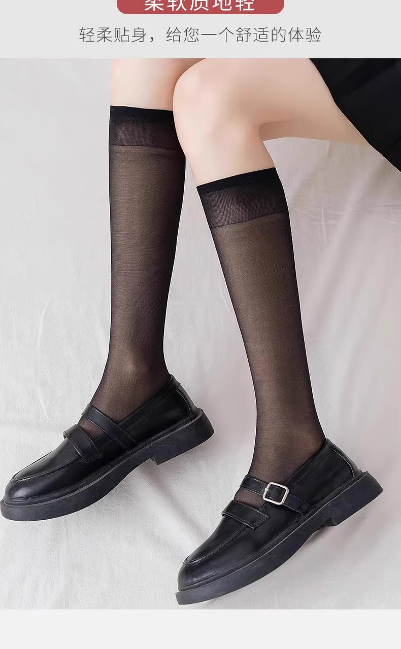 벨벳 안티 후크 실크 봄과 가을 중간 길이의 실크 스타킹 여성 중간 길이의 송아지 양말 절반 길이 여름 초박형 긴 튜브 양말
