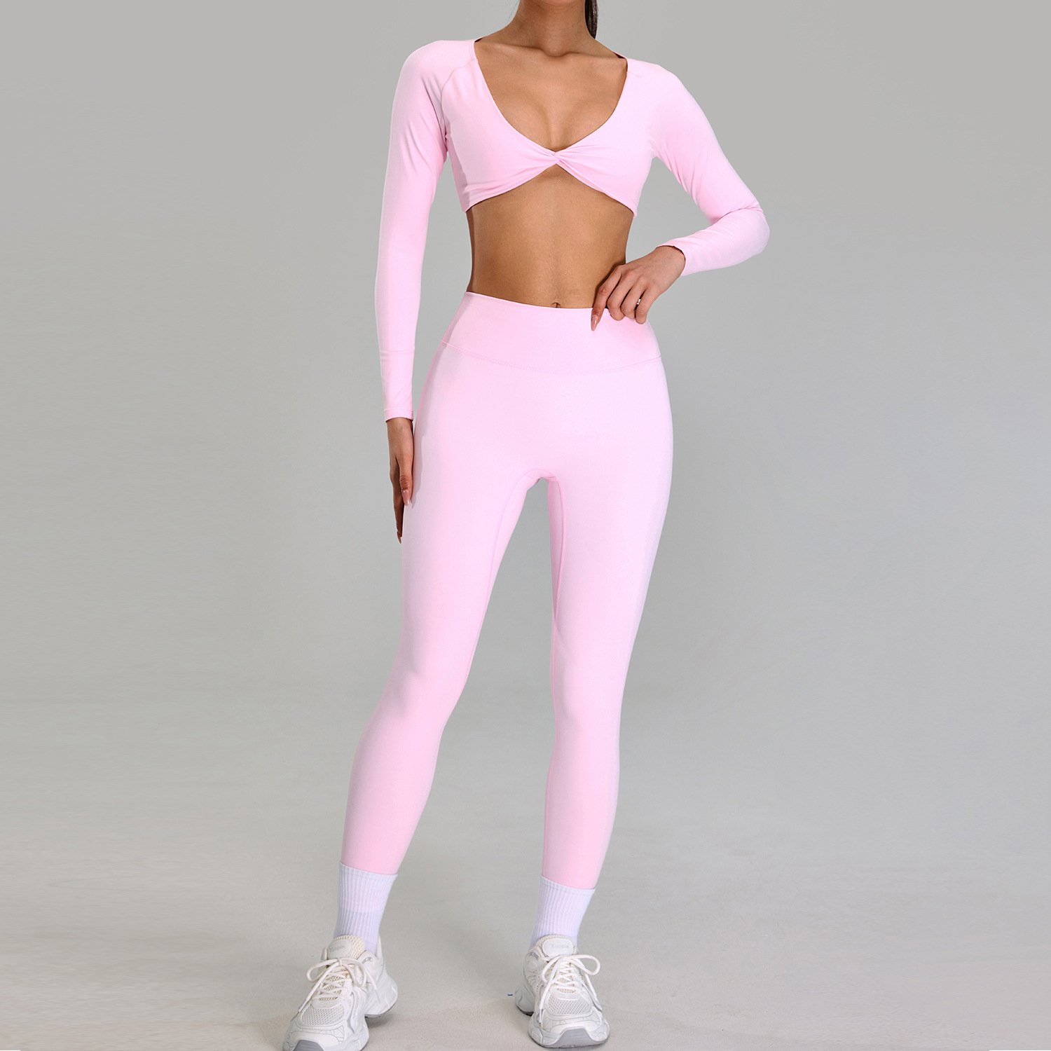 유럽과 미국의 고강도 스포츠 세트 야외 달리기 알몸 피트니스 세트 슬리밍 높은 허리 요가 세트 5 피스 세트