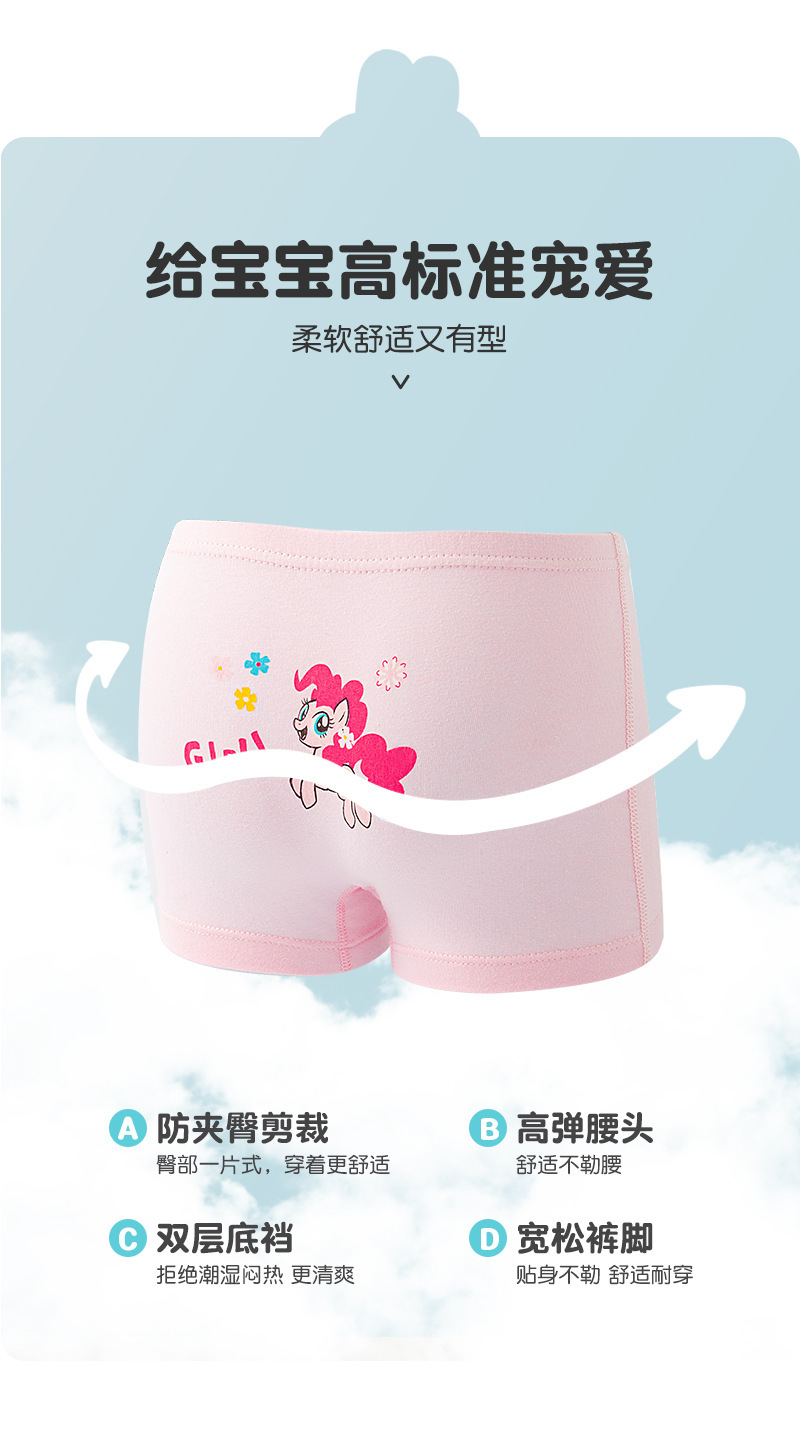 MXGN5044 새로운 핑크 포니 어린이 속옷 클래스 A 아기의 추적없는 복서 속옷 소녀 코튼 반바지
