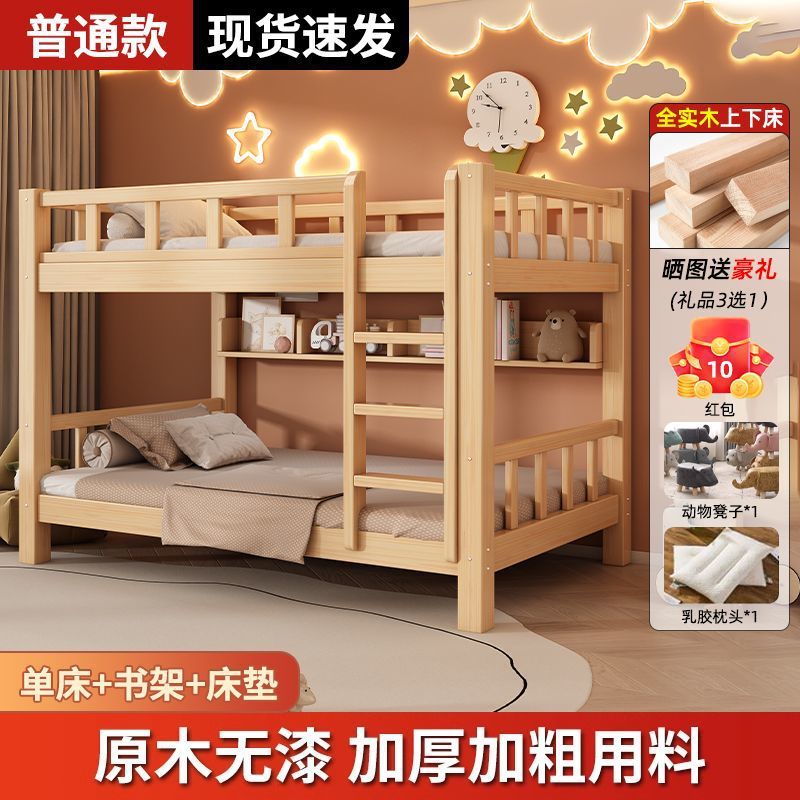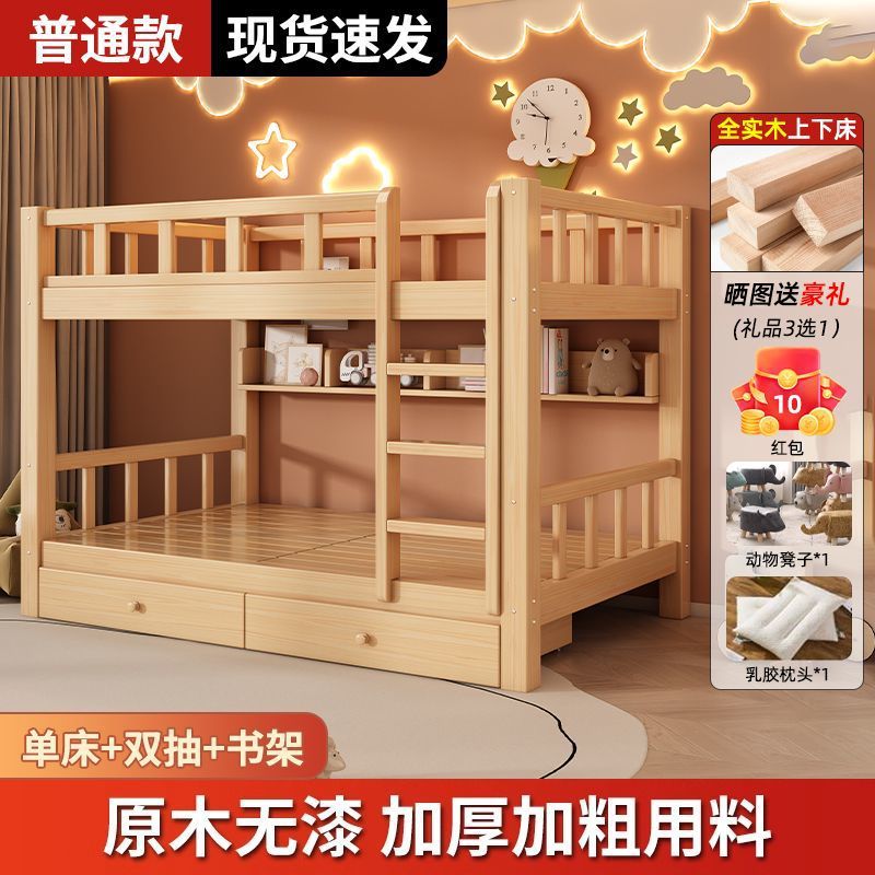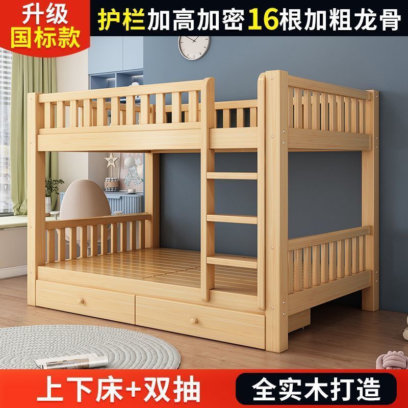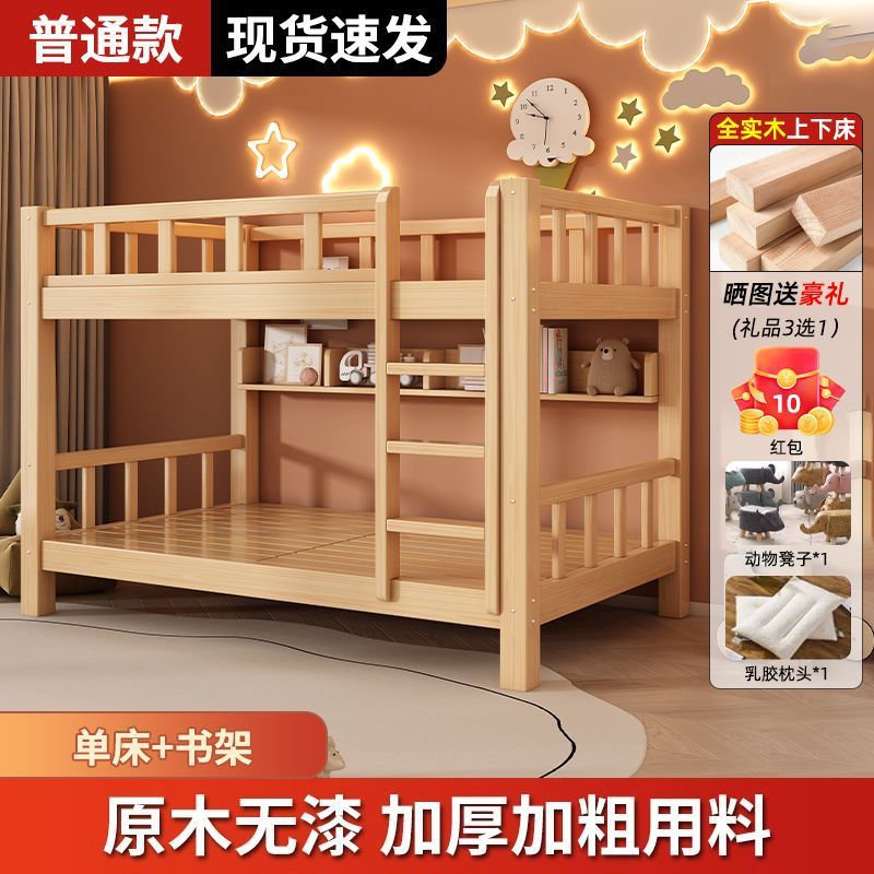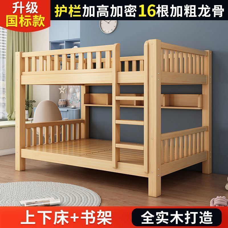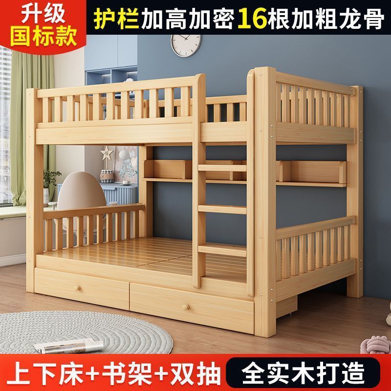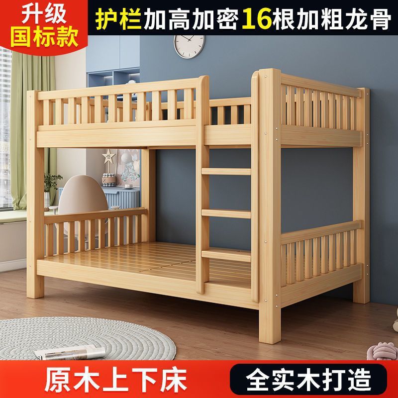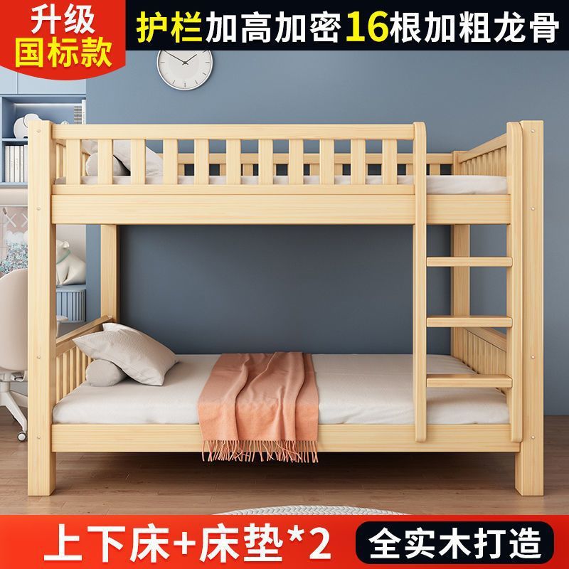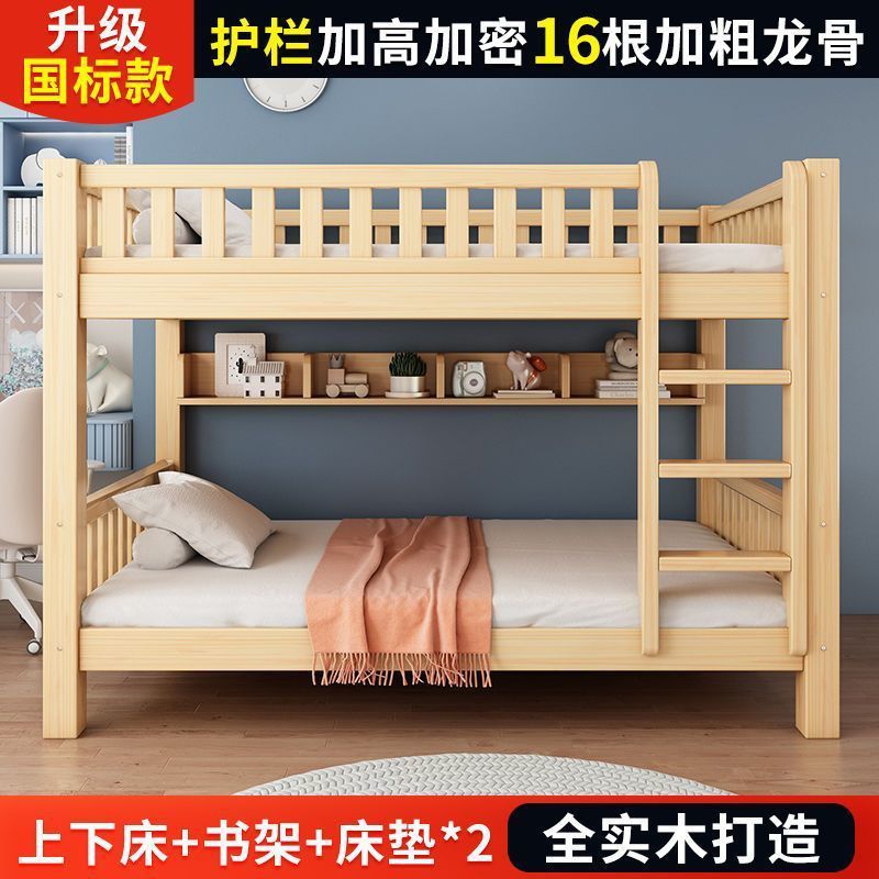 단단한 나무 벙크 침대 침대 작은 아파트 선반 더블 침대 2 층 나무 침대 높고 낮은 어린이 침대