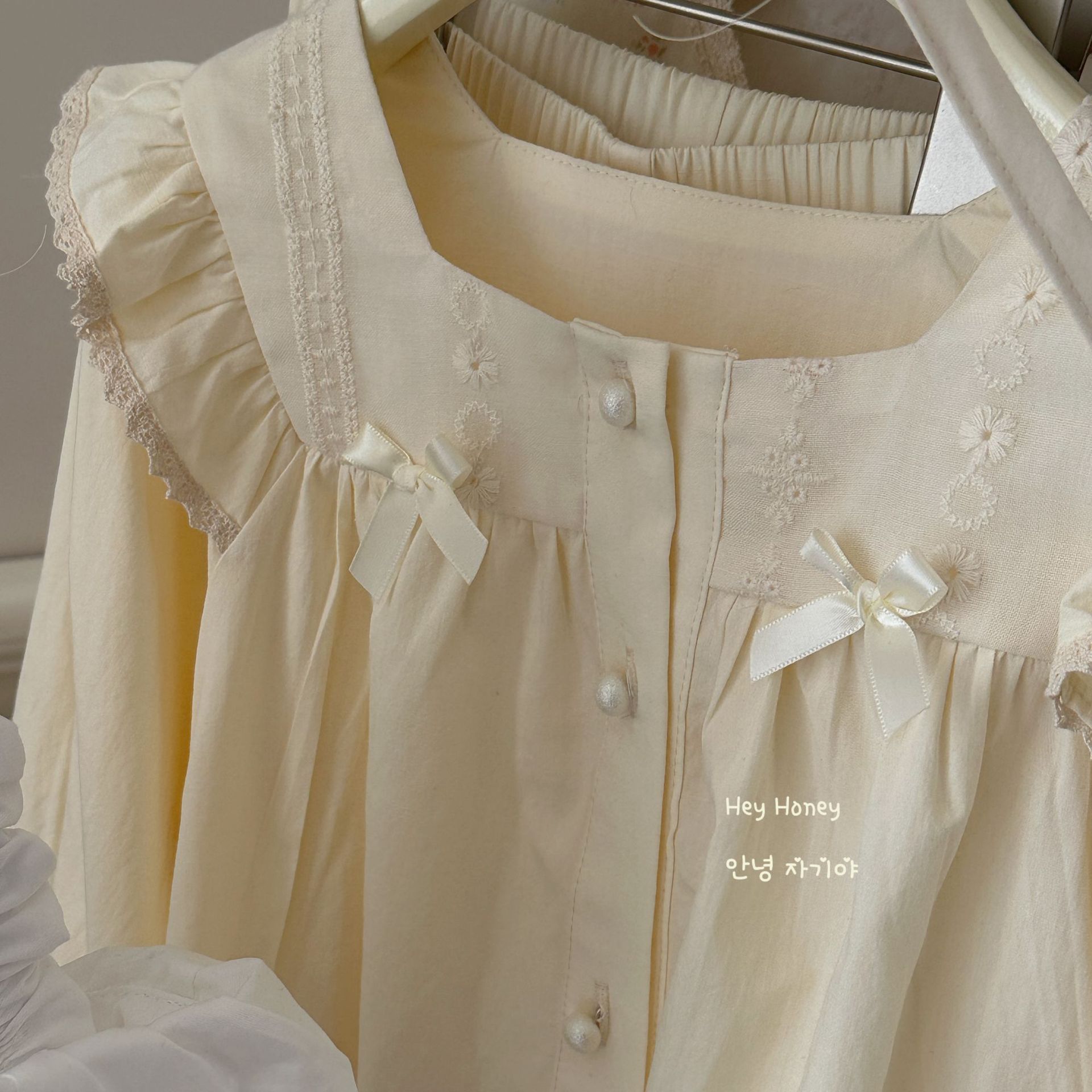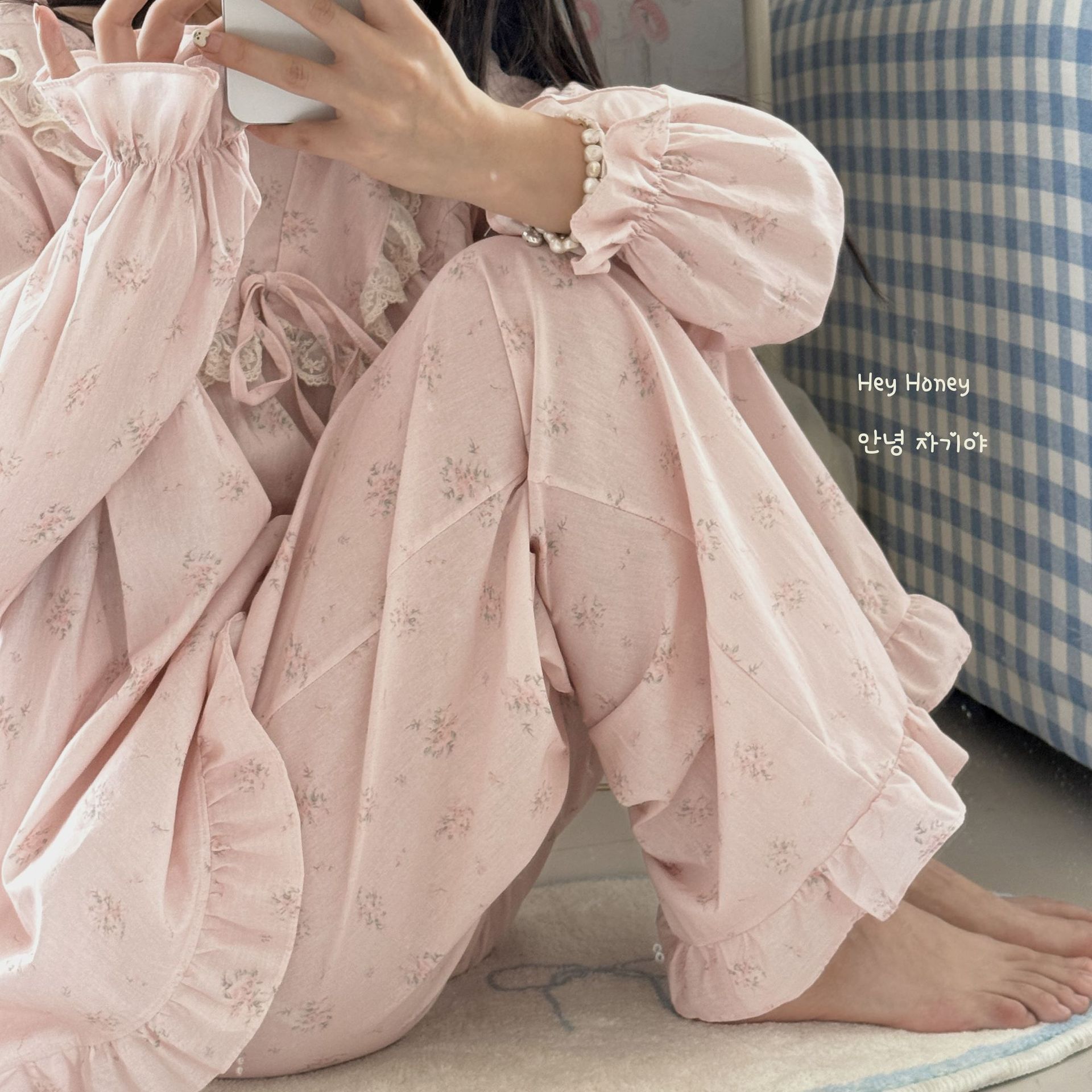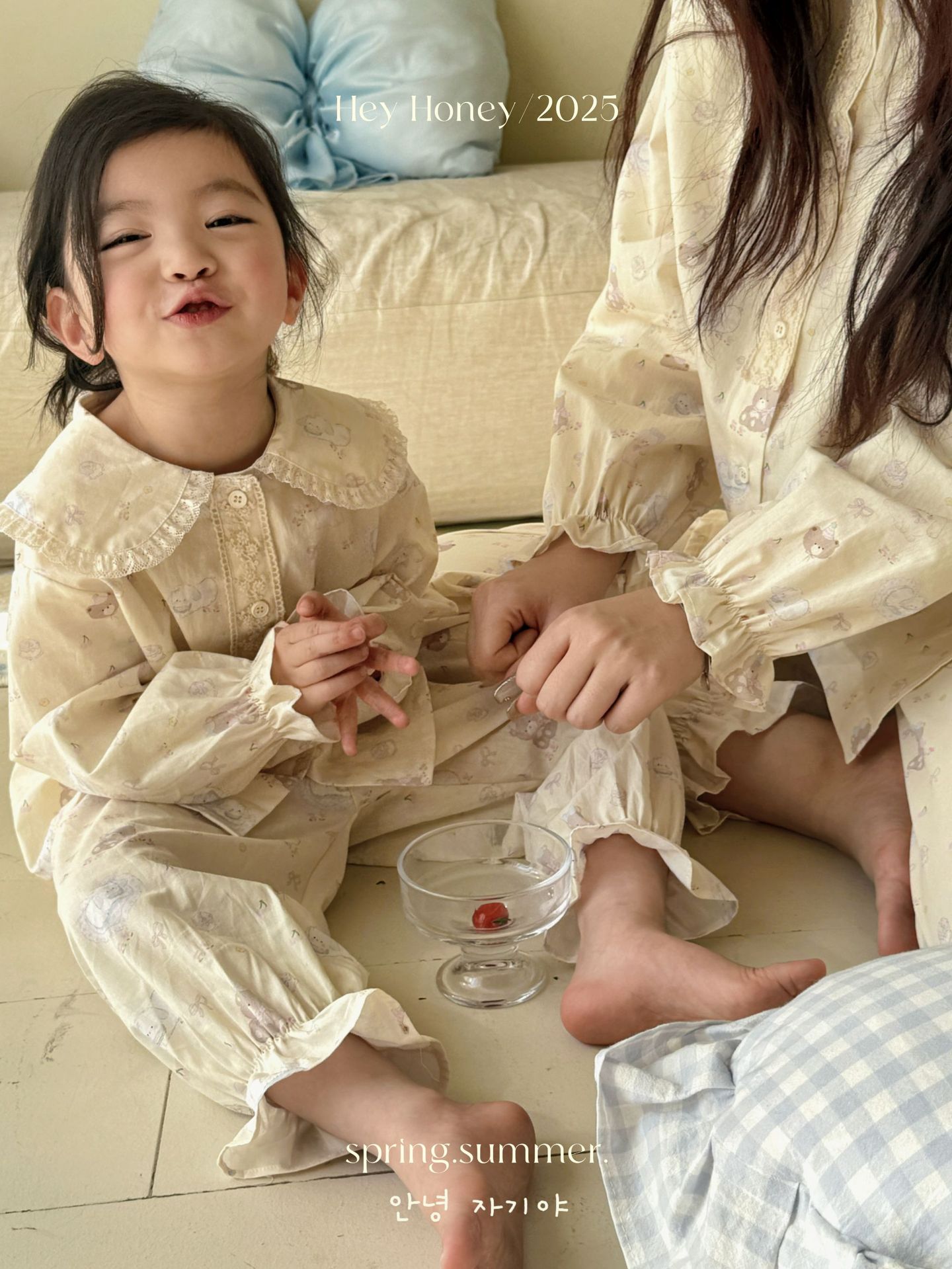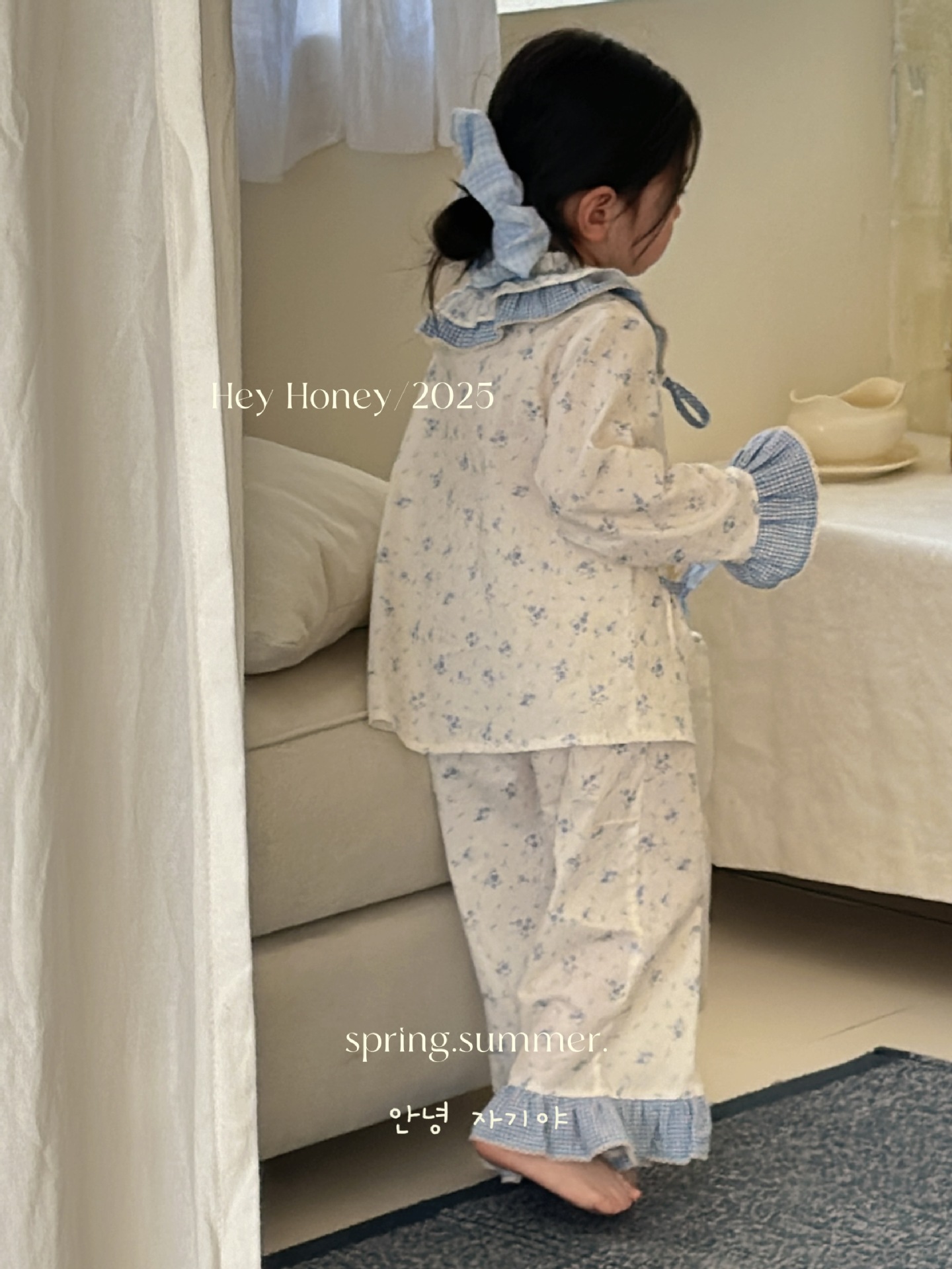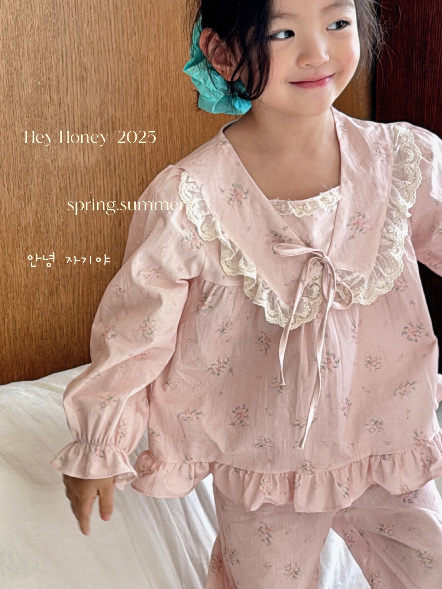 재고 있음 Hey Sweetheart 25 봄 얇은 크고 작은 볼륨 어린이 소녀 꽃 한국 싱글 브레스트 부모-자식 잠옷 홈웨어