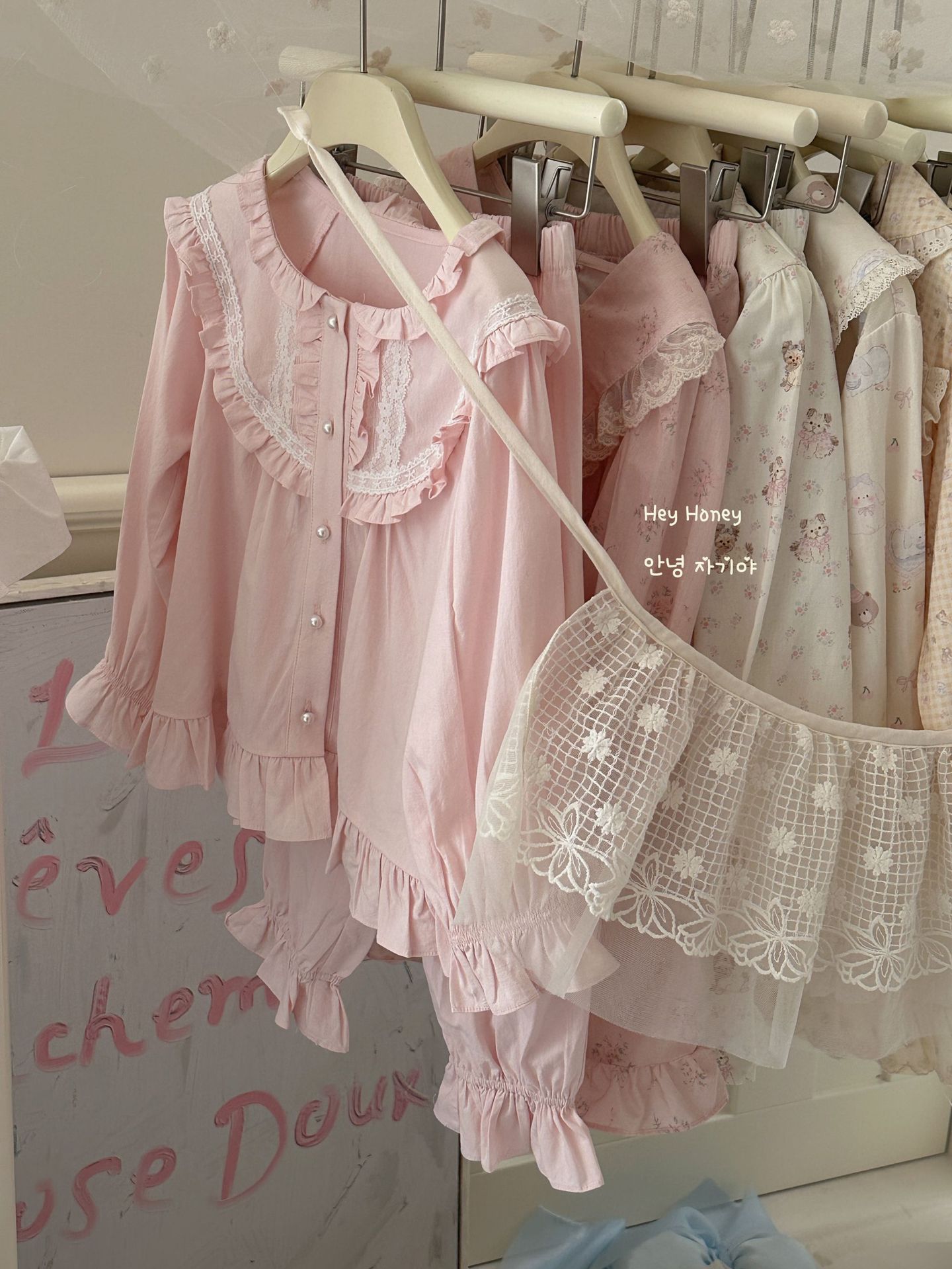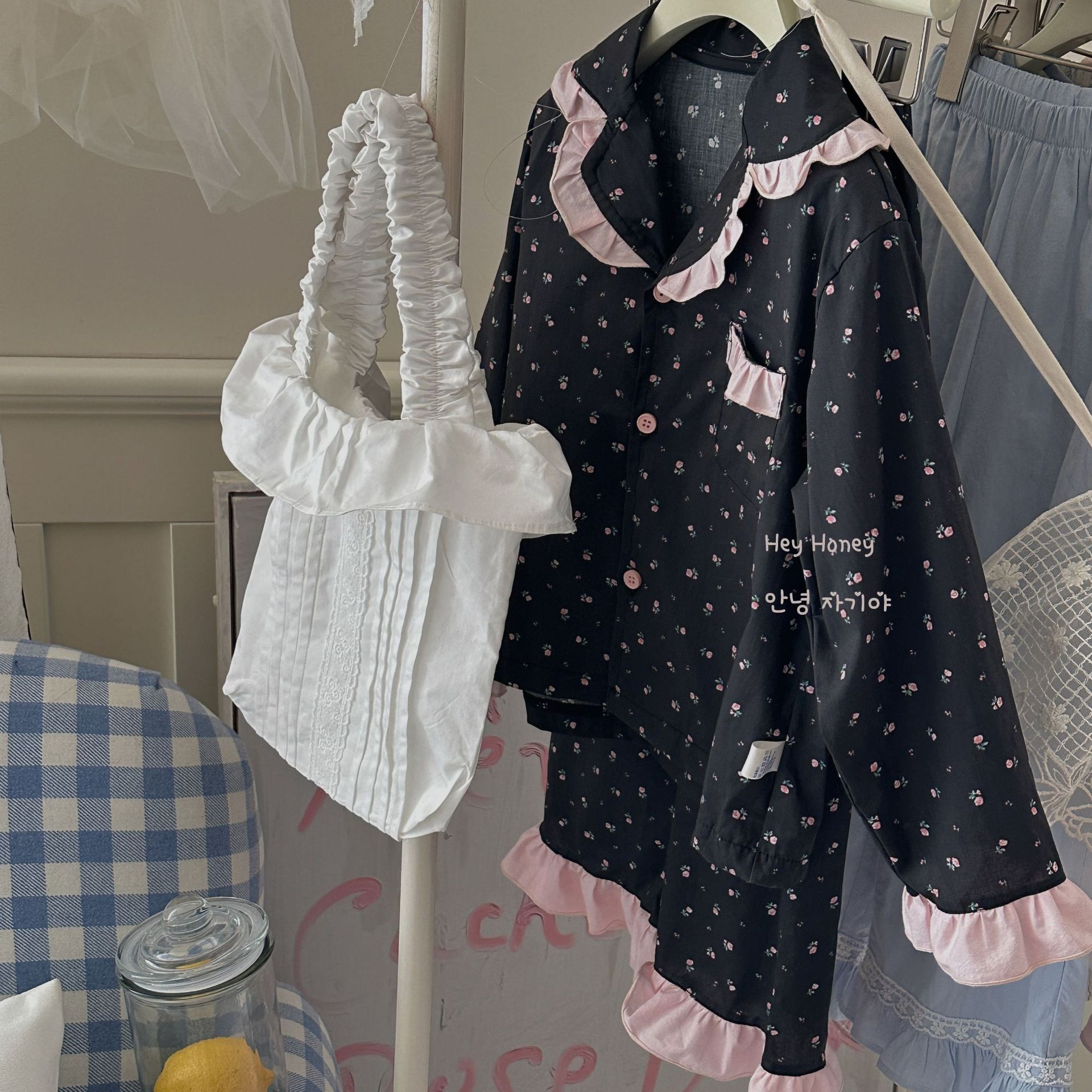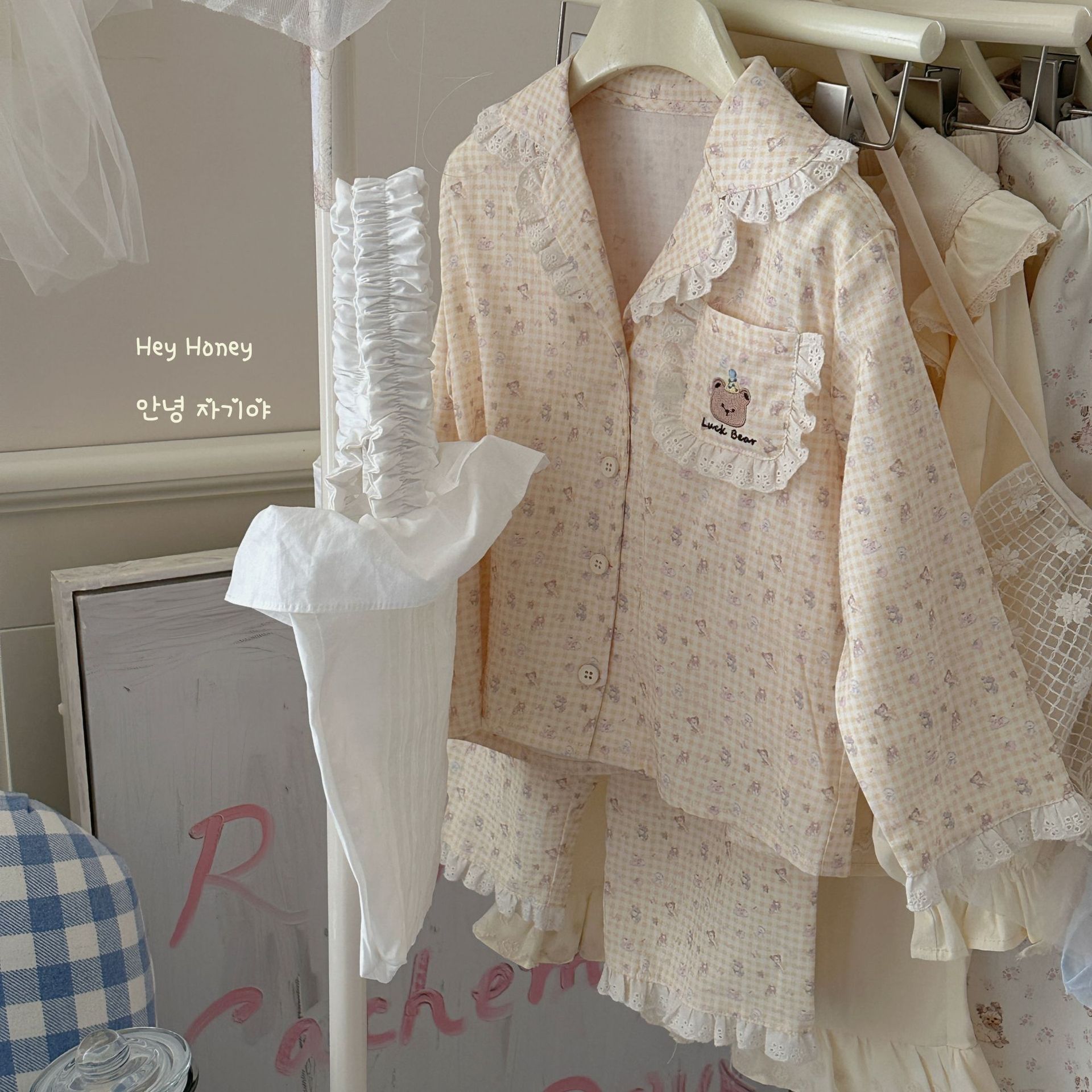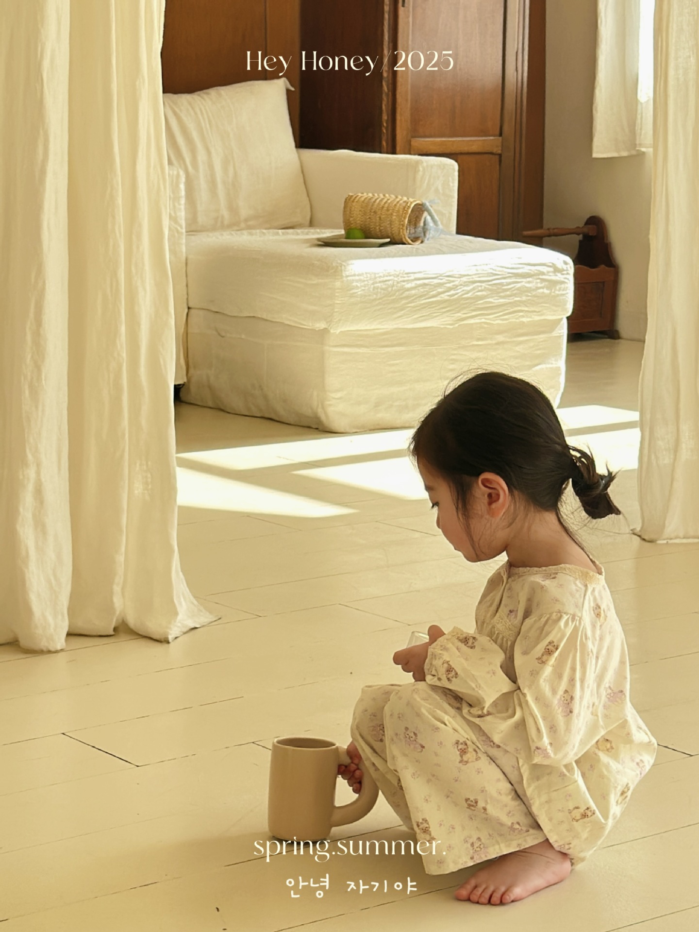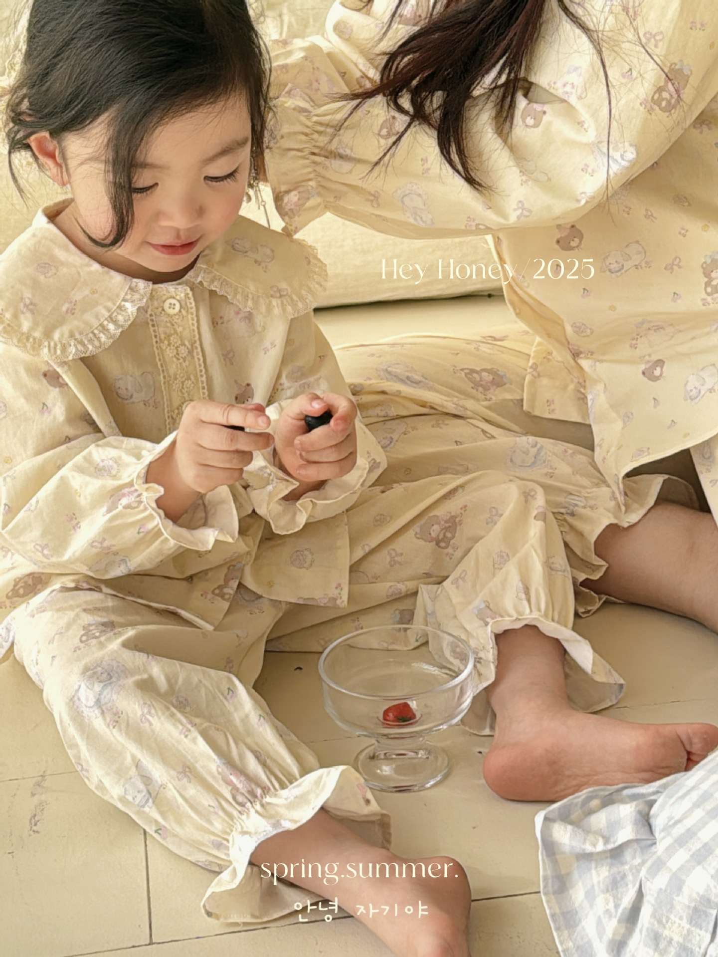 재고 있음 Hey Sweetheart 25 봄 얇은 크고 작은 볼륨 어린이 소녀 꽃 한국 싱글 브레스트 부모-자식 잠옷 홈웨어스토어 가기