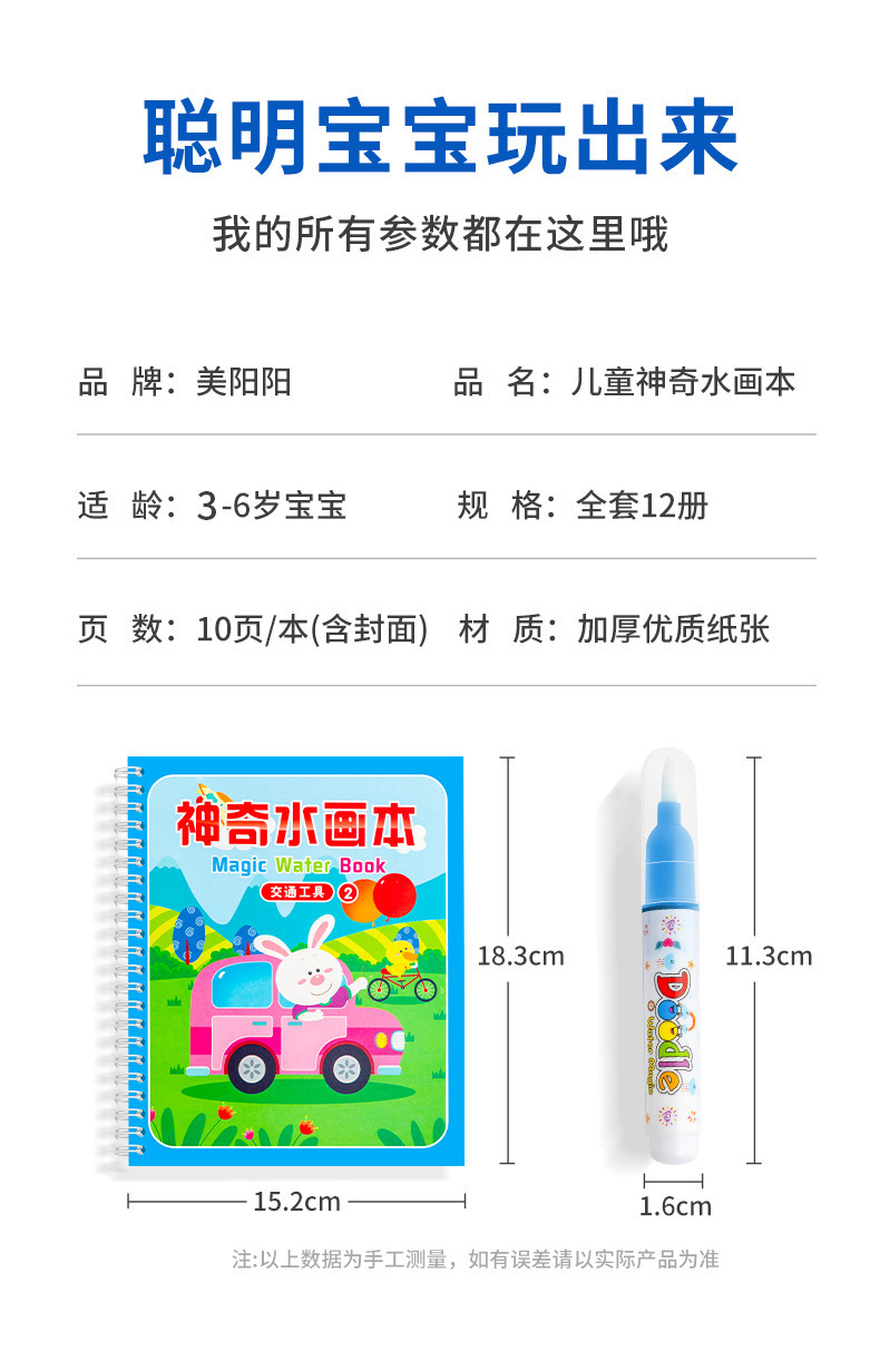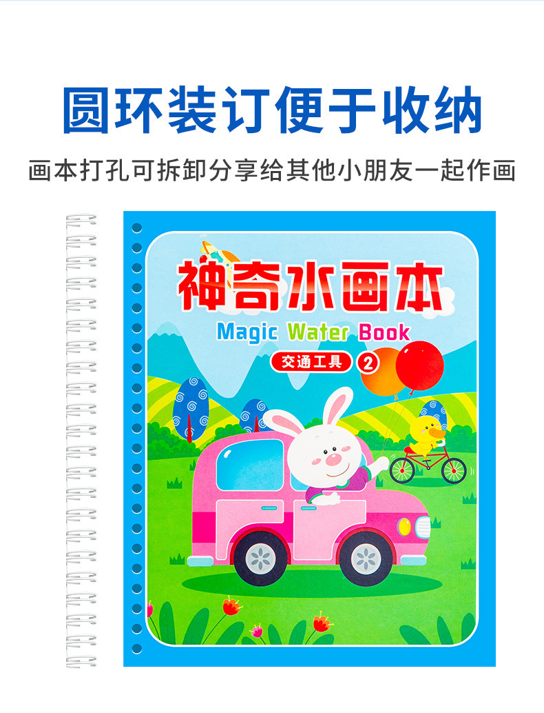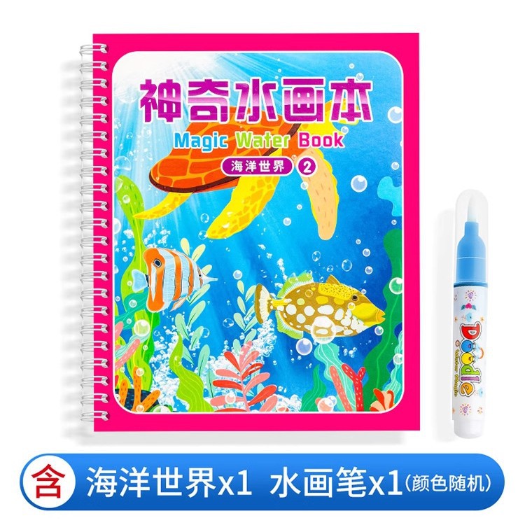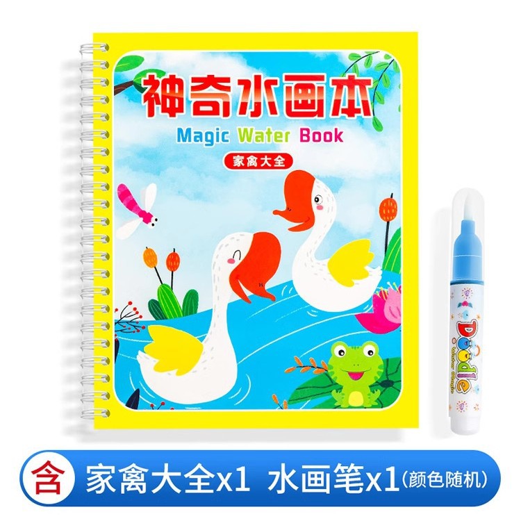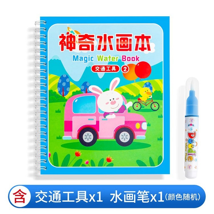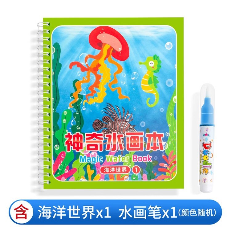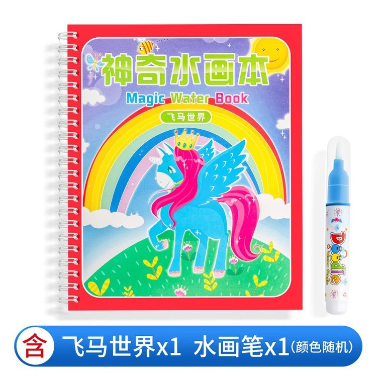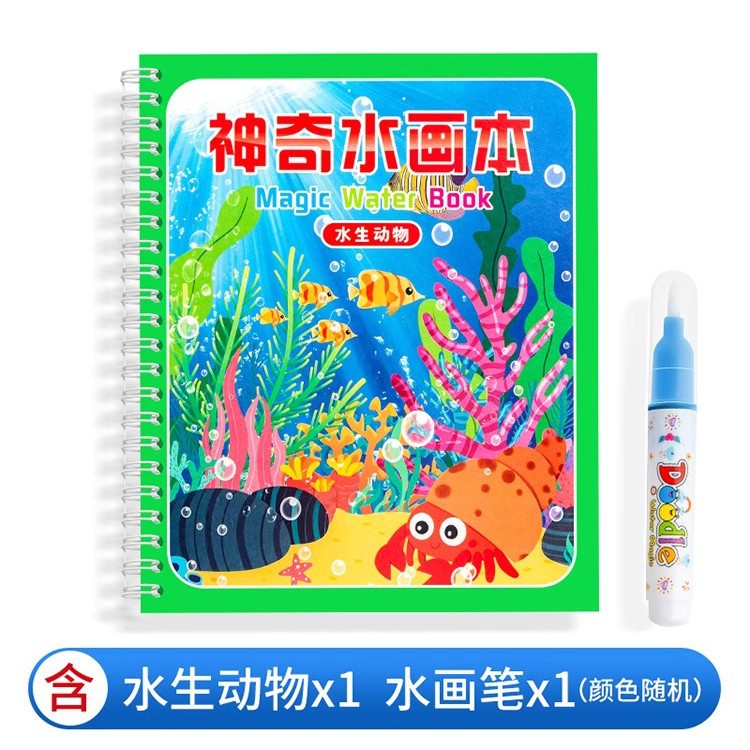 【재고정리 세일】마법 물그림책, 반복 사용 가능한 물세척 그림책, 유치원 색칠 물그림책