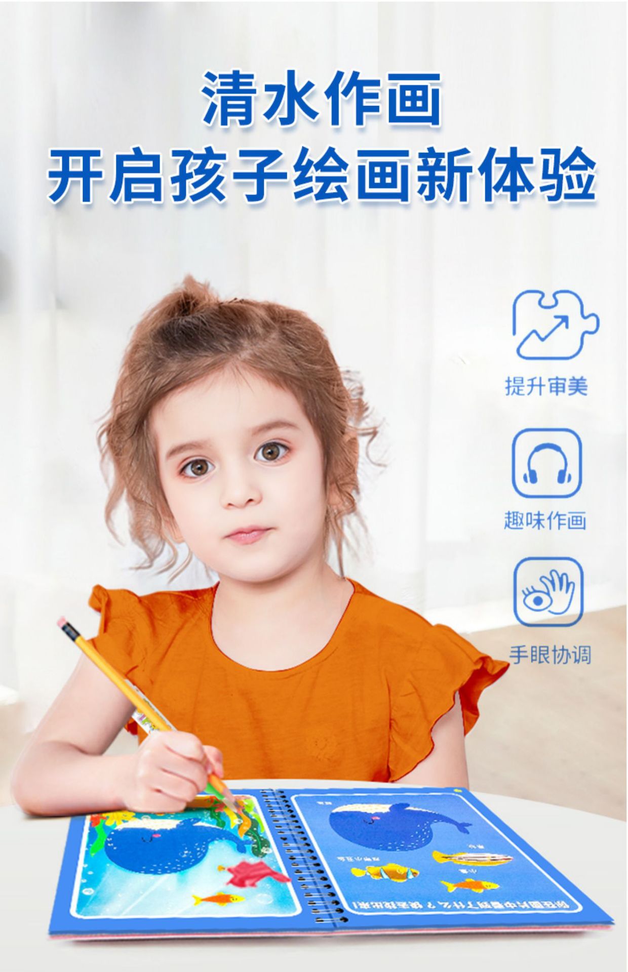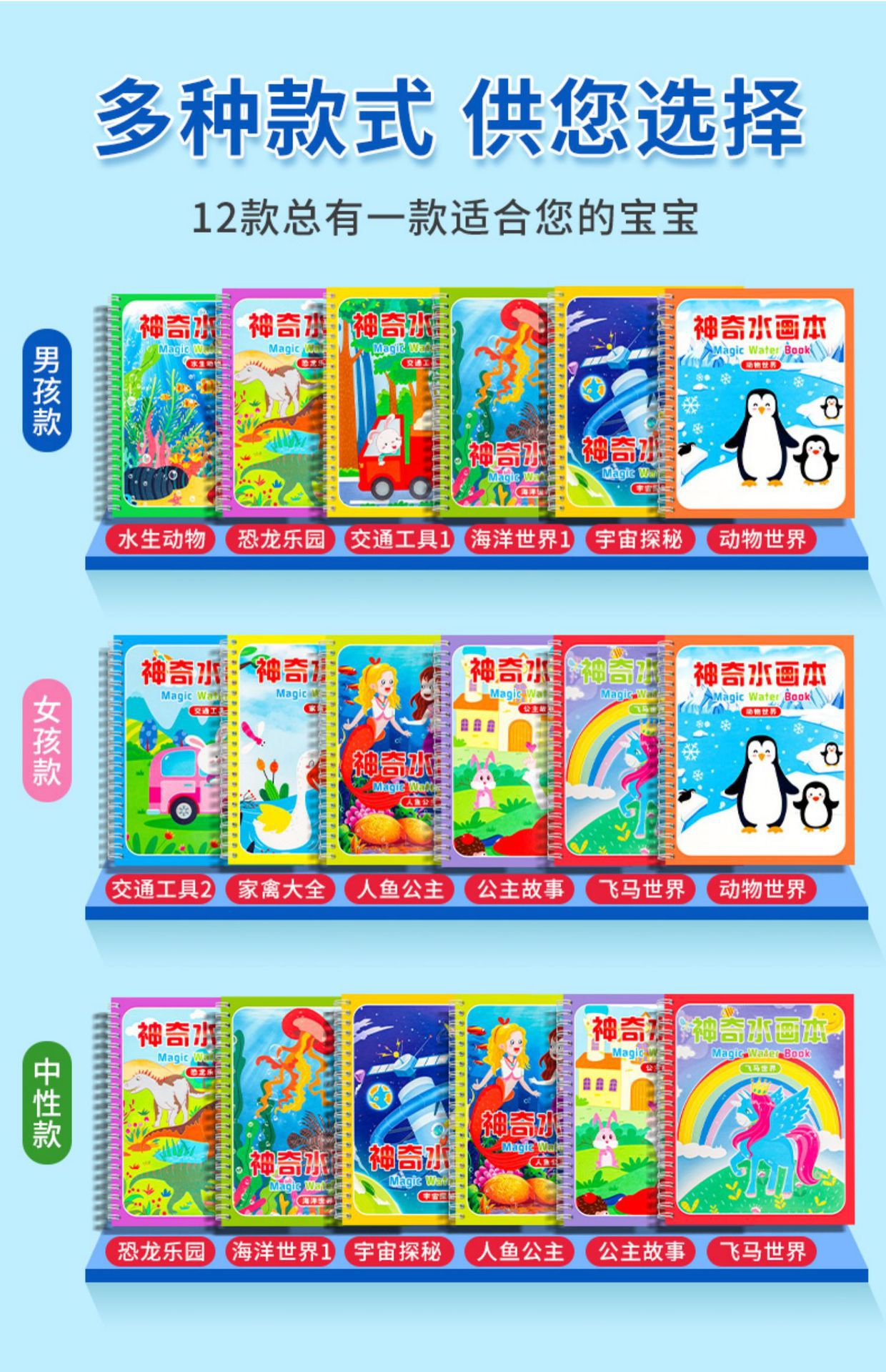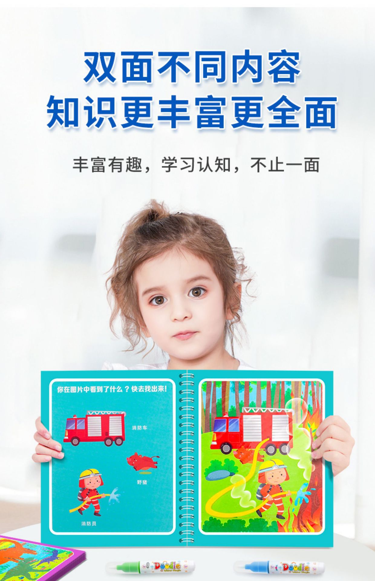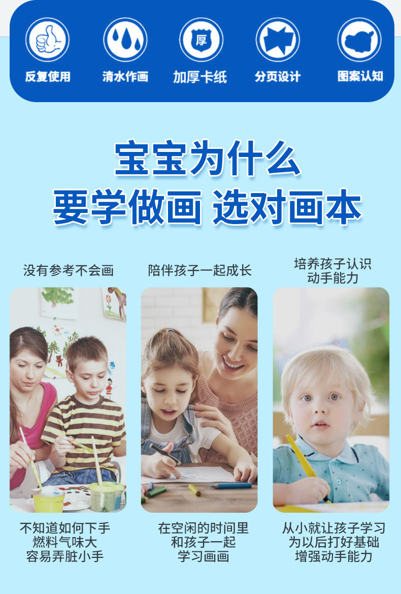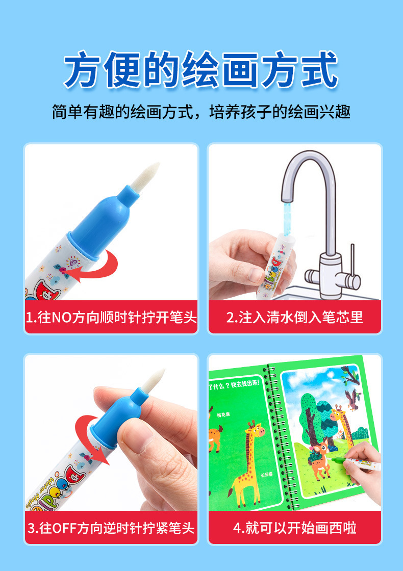 【재고정리 세일】마법 물그림책, 반복 사용 가능한 물세척 그림책, 유치원 색칠 물그림책스토어 가기