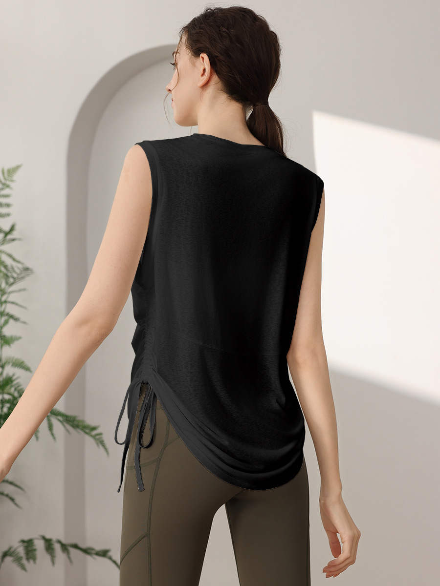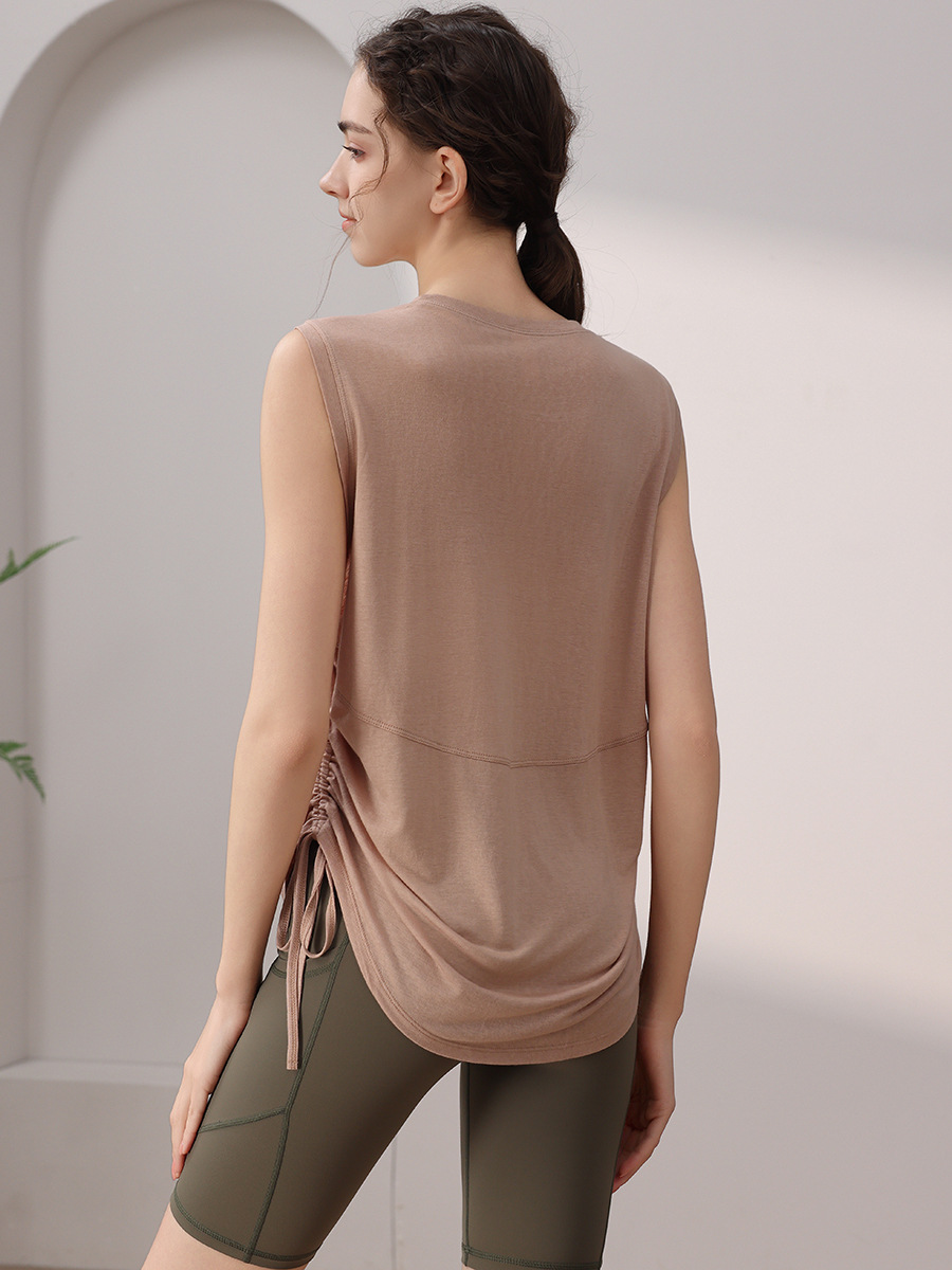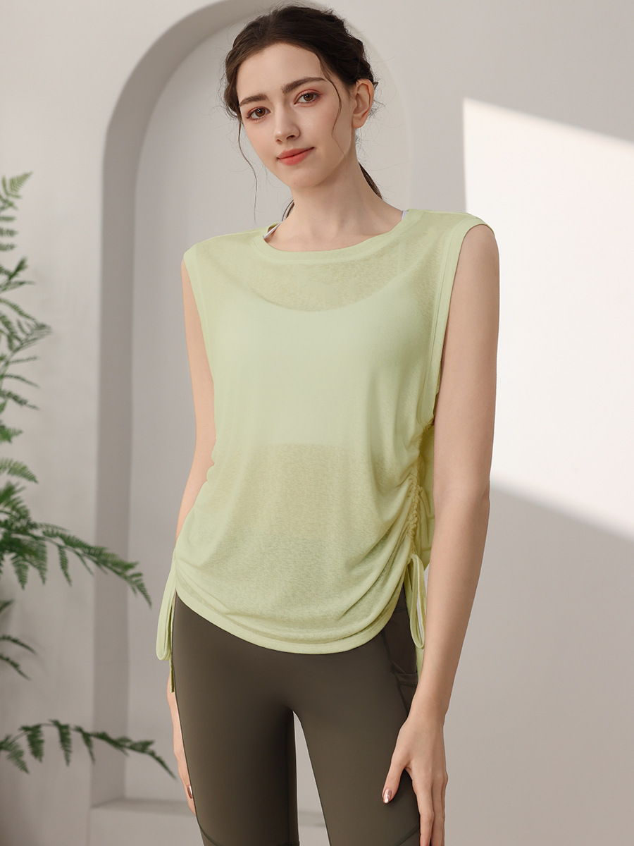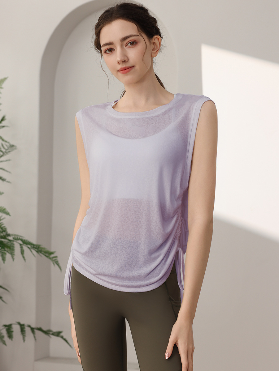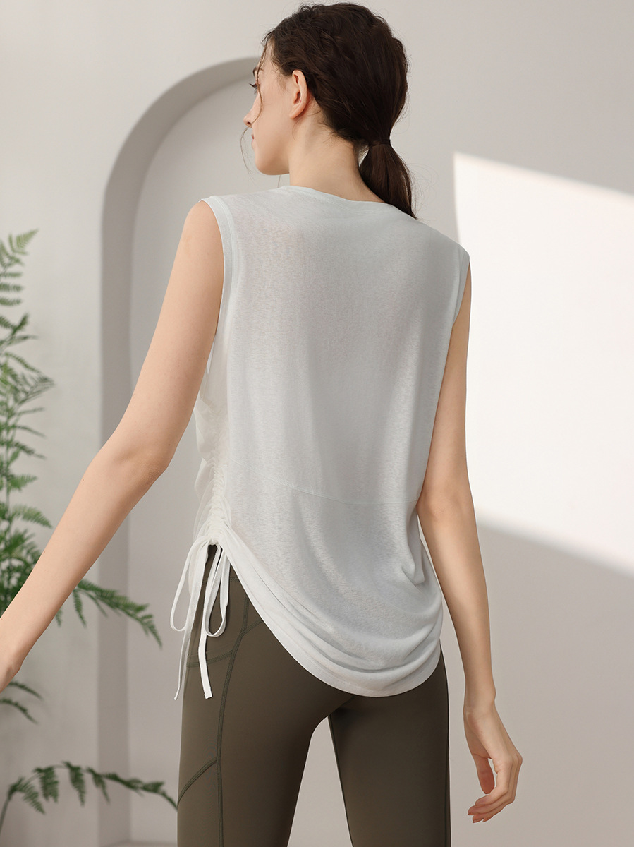 텐셀 눈송이 요가 세트 드로우 스트링 스포츠 조끼 여성 얇은 느슨한 블라우스 프로 러닝 피트니스 탑 여름