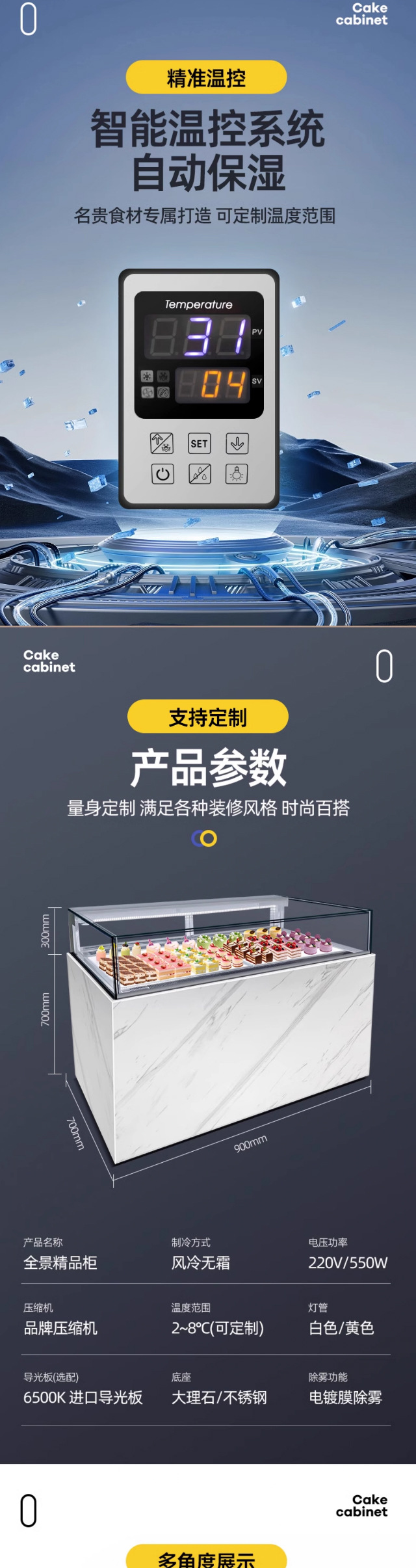 파노라마 직각 케이크 캐비닛, 새의 둥지, 서양 과자 냉장 상업용 신선 유지 디저트 서랍 캐비닛, 두어치 초콜릿 디스플레이 캐비닛