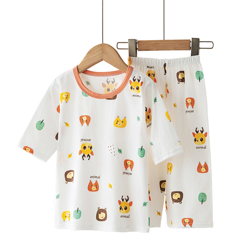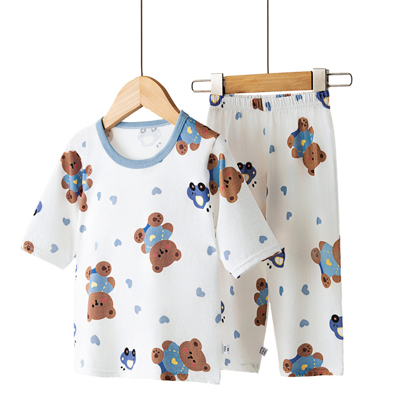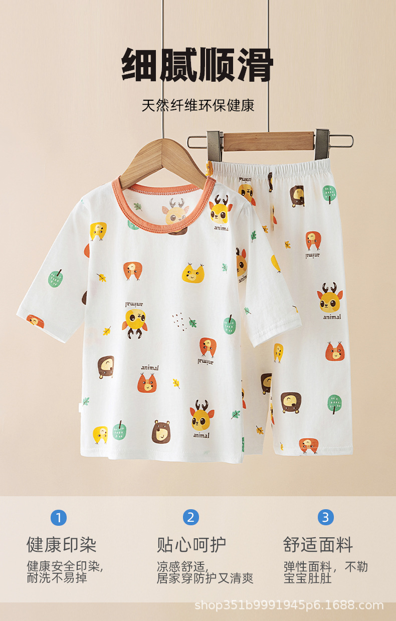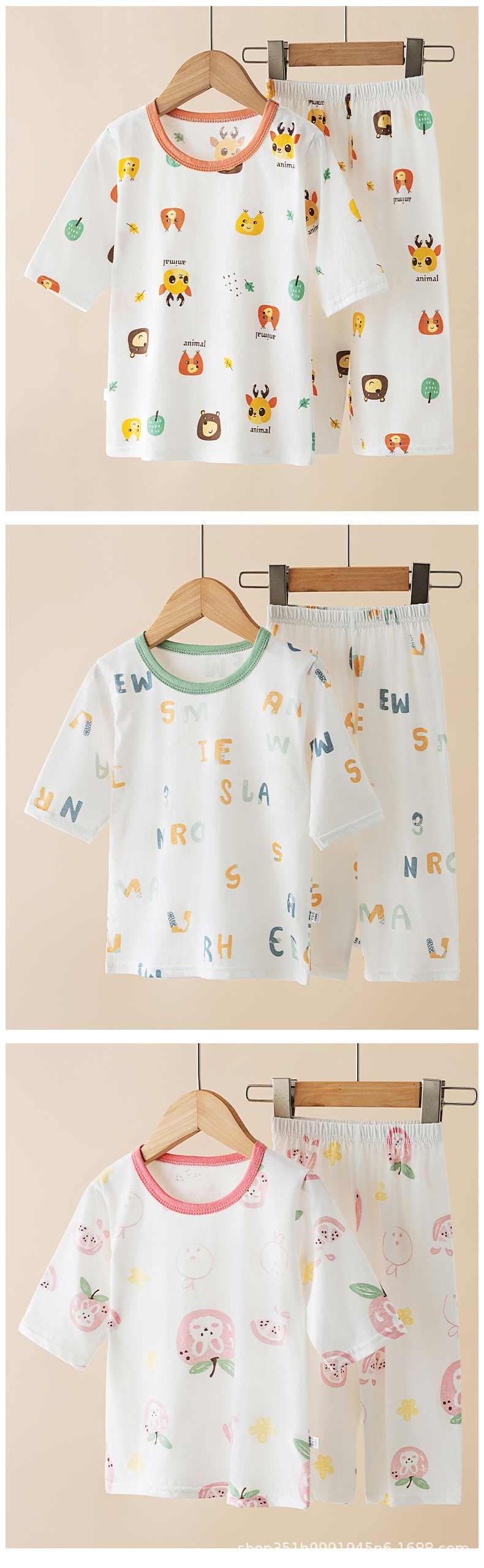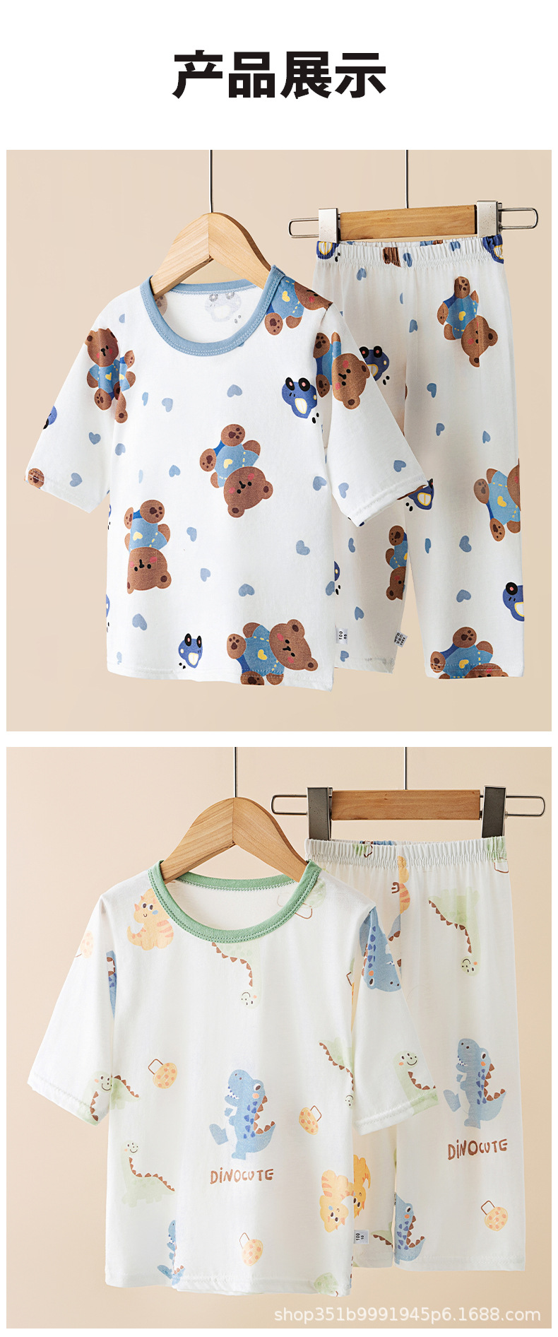 아동용 에어컨 의류, 순면 7부 소매 7부 바지 세트, 얇은 잠옷, 반팔 반바지, 남녀 아기 가정복스토어 가기