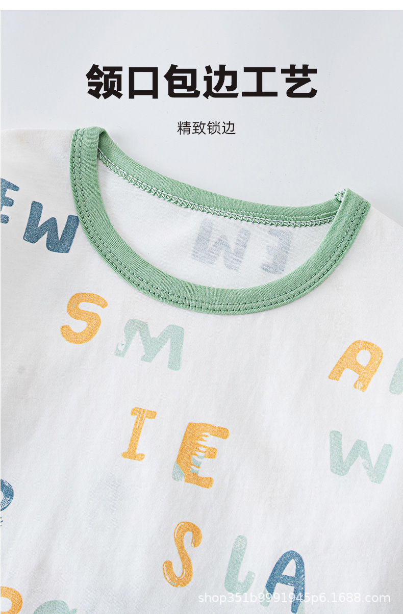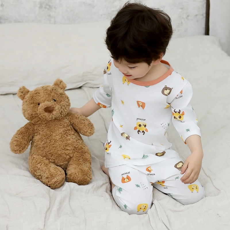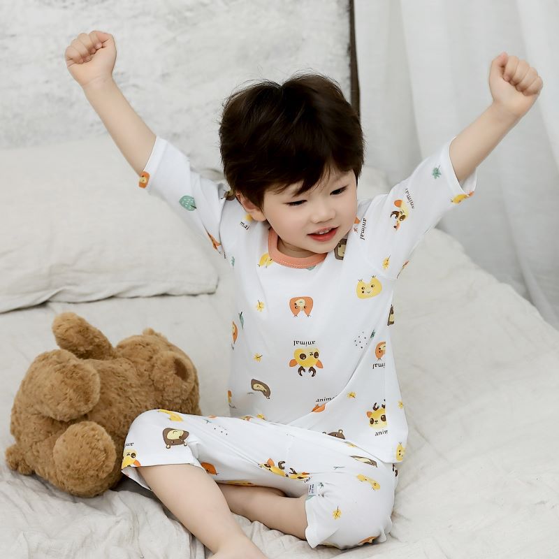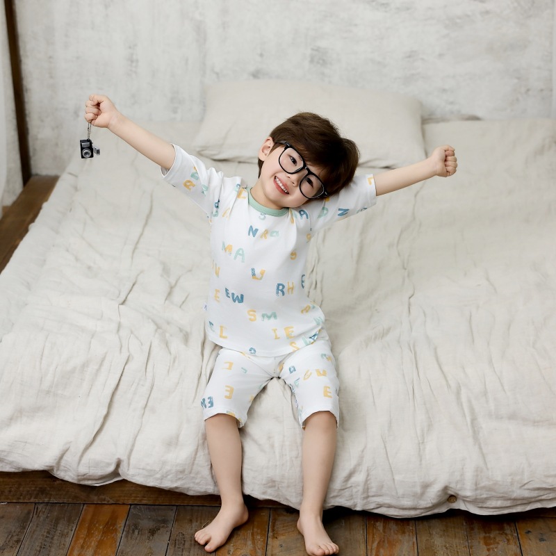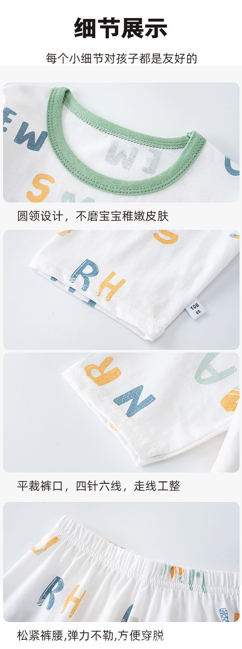 아동용 에어컨 의류, 순면 7부 소매 7부 바지 세트, 얇은 잠옷, 반팔 반바지, 남녀 아기 가정복스토어 가기