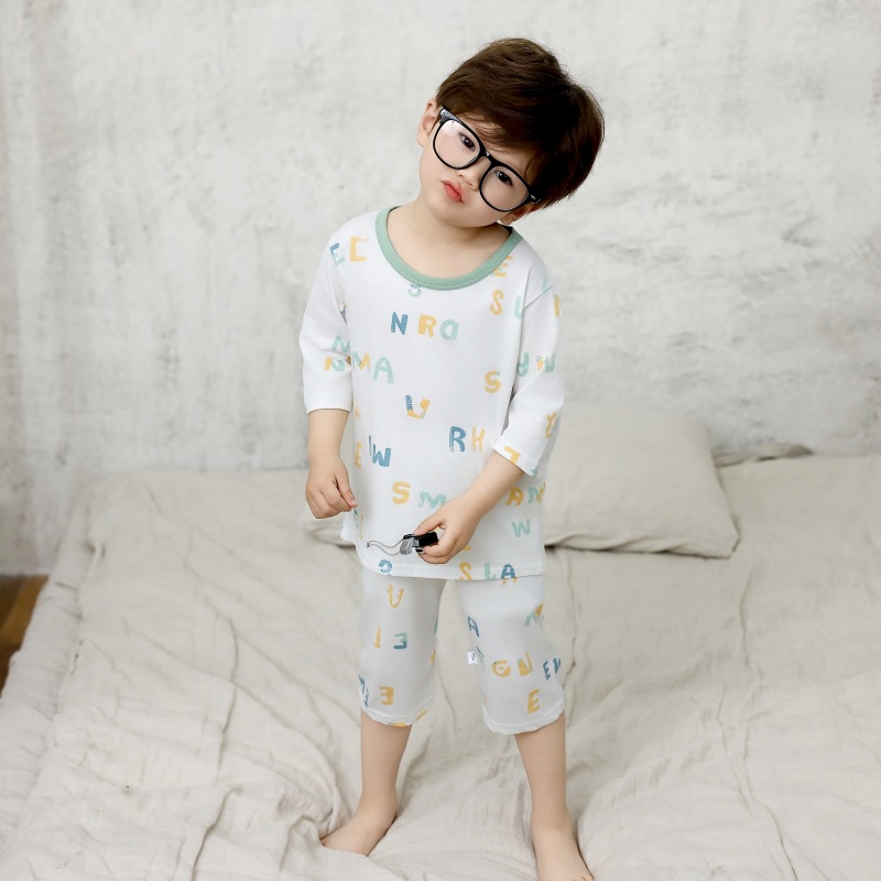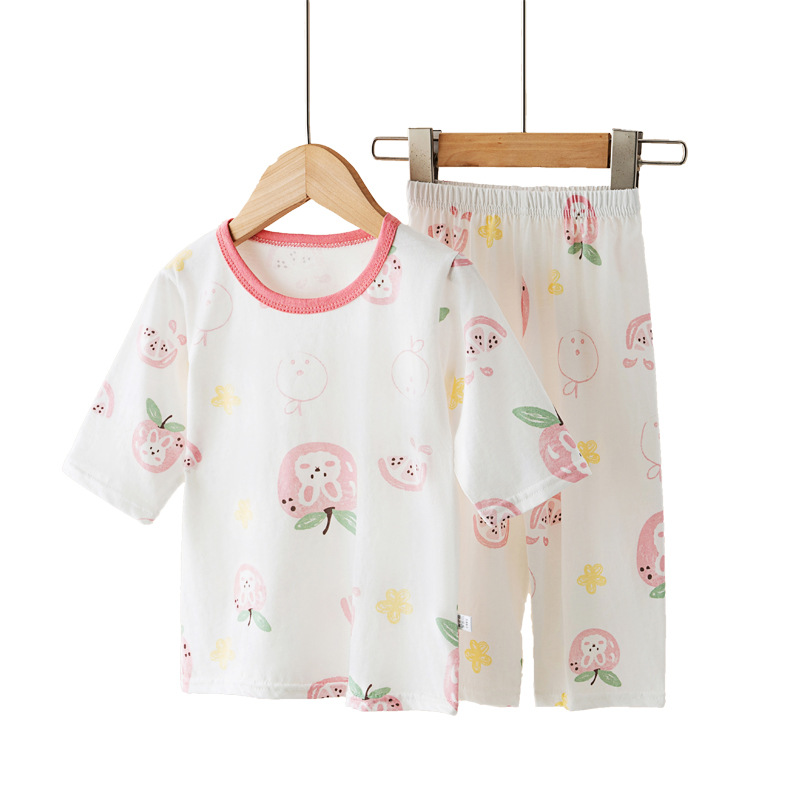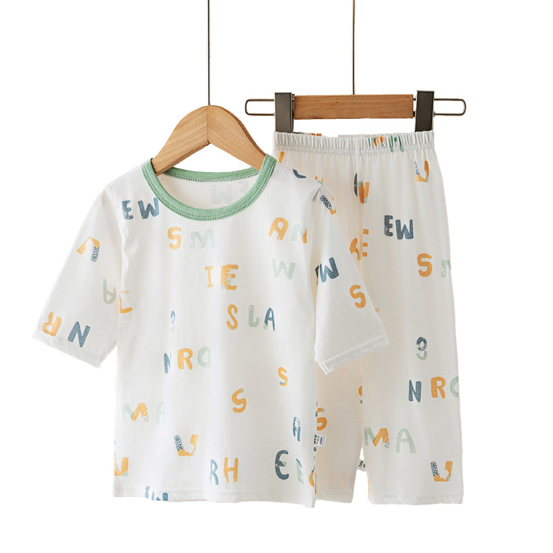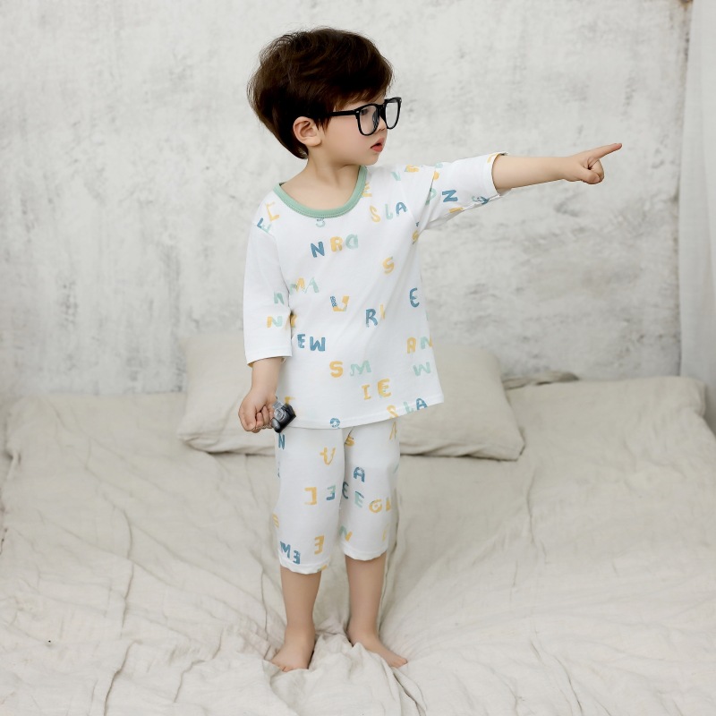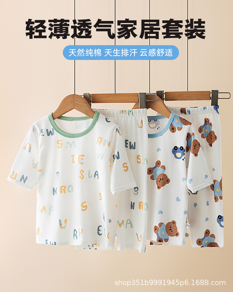 아동용 에어컨 의류, 순면 7부 소매 7부 바지 세트, 얇은 잠옷, 반팔 반바지, 남녀 아기 가정복