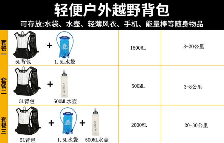 국경 간 공급 러닝워터 백 조끼 배낭 남성과 여성의 야외 크로스 컨트리 라이딩 조끼 등산 가방