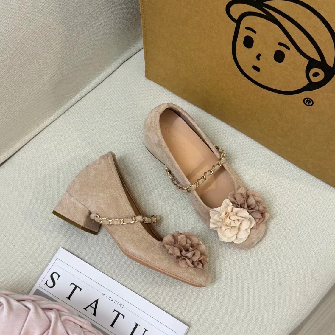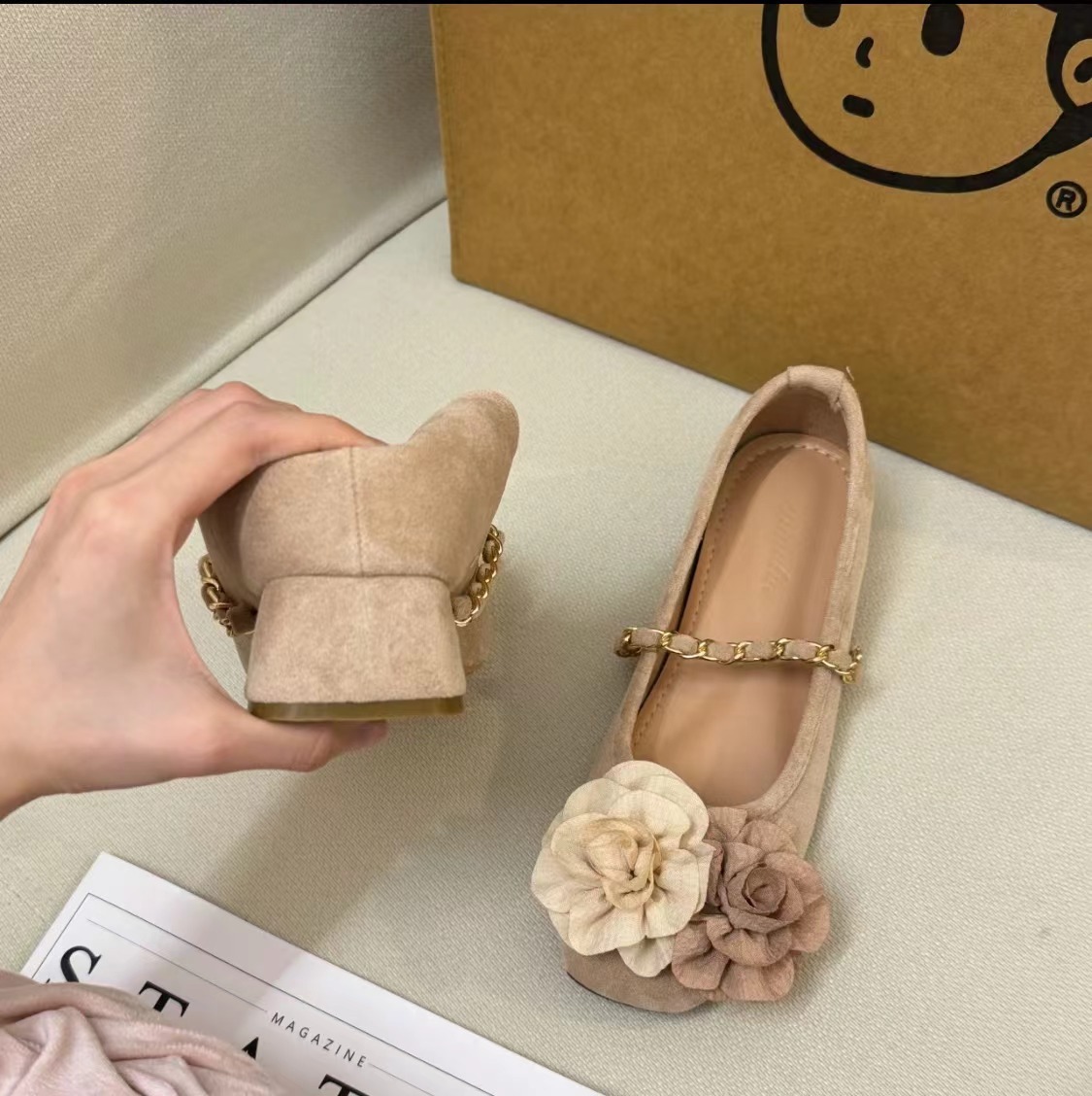 작은 내부 높이 2025 봄 새로운 동백 스웨이드 요정 여성 신발 메리 제인 청키 힐 신발스토어 가기