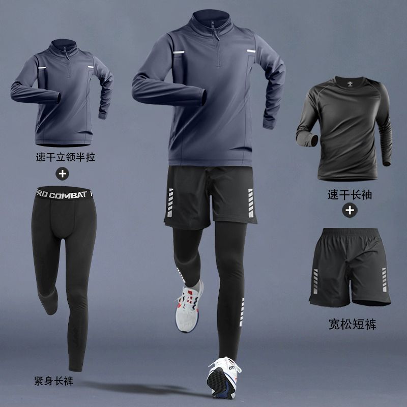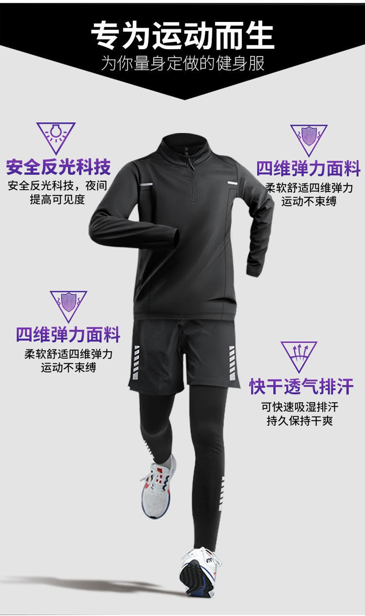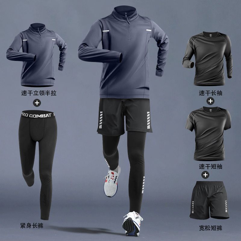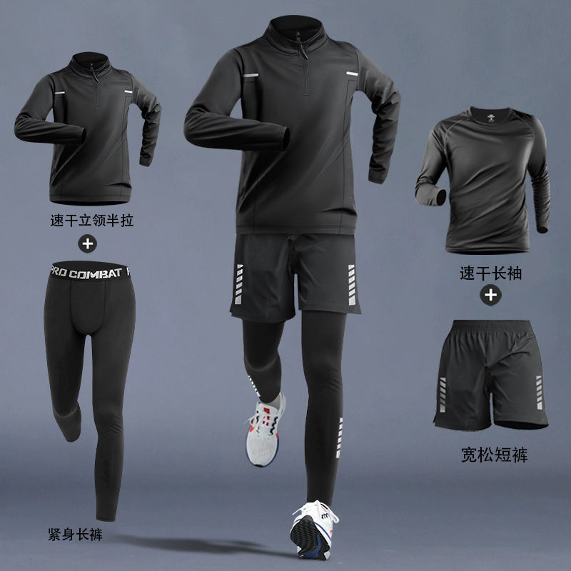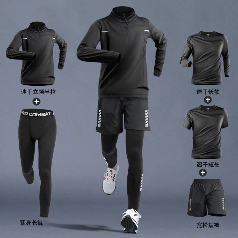 달리기 의류 남성 피트니스 세트 운동복 고탄성 꽉 옷 아침 달리기 옷 빠른 건조 옷 스포츠 트랙 및 현장 훈련 장비스토어 가기