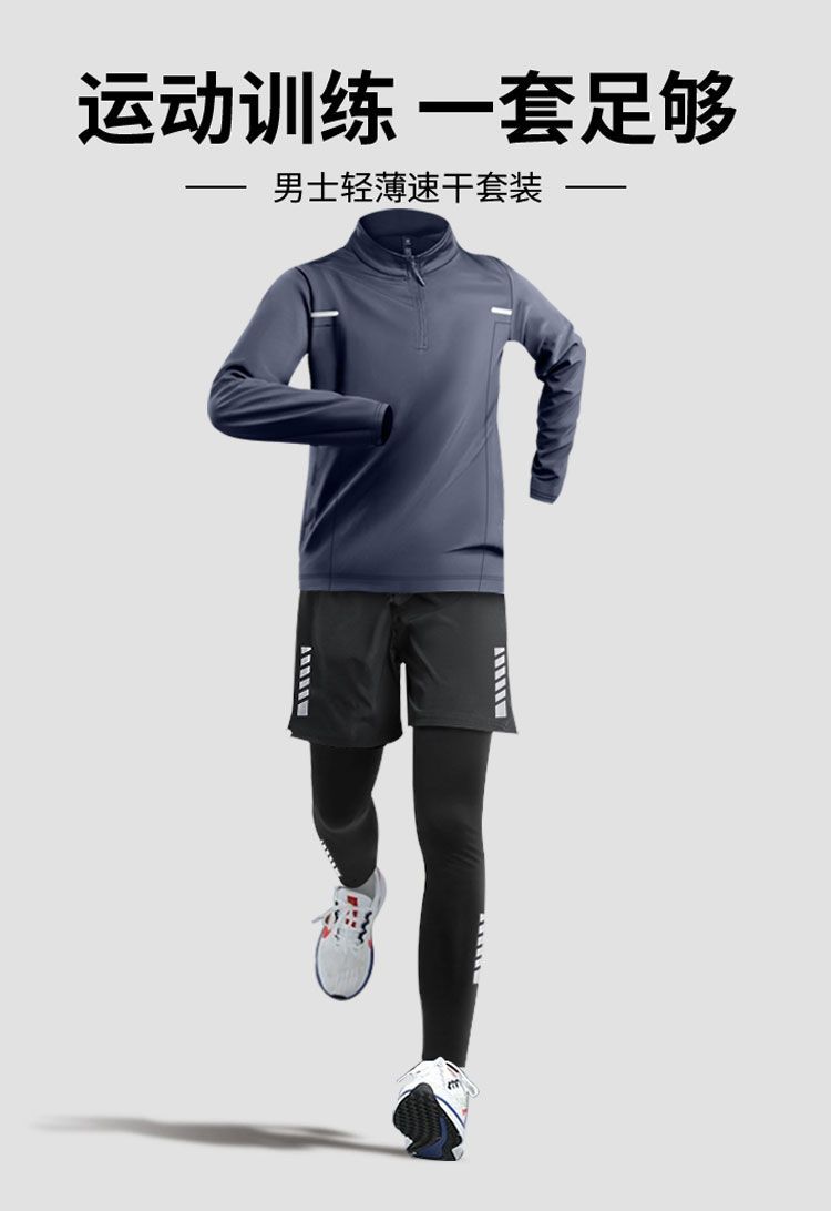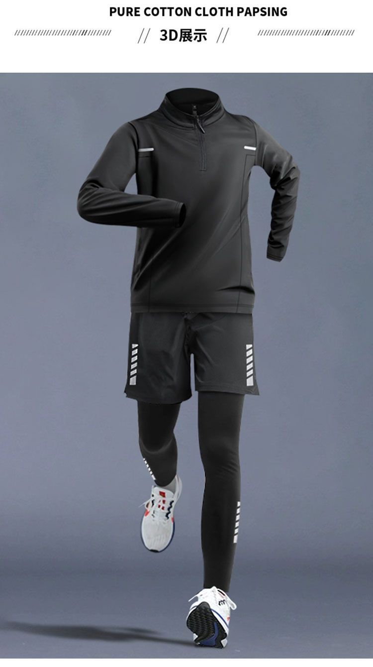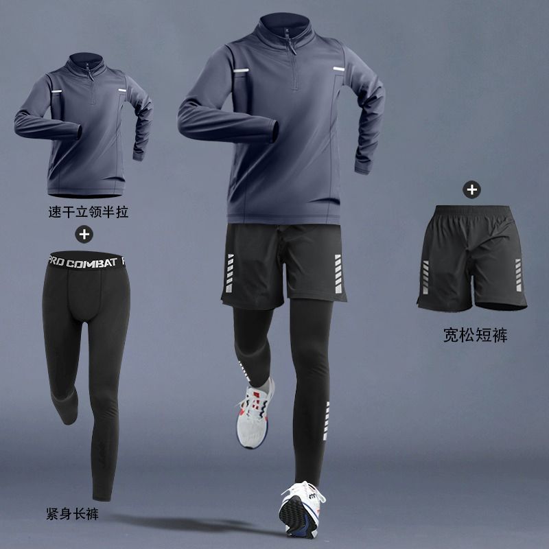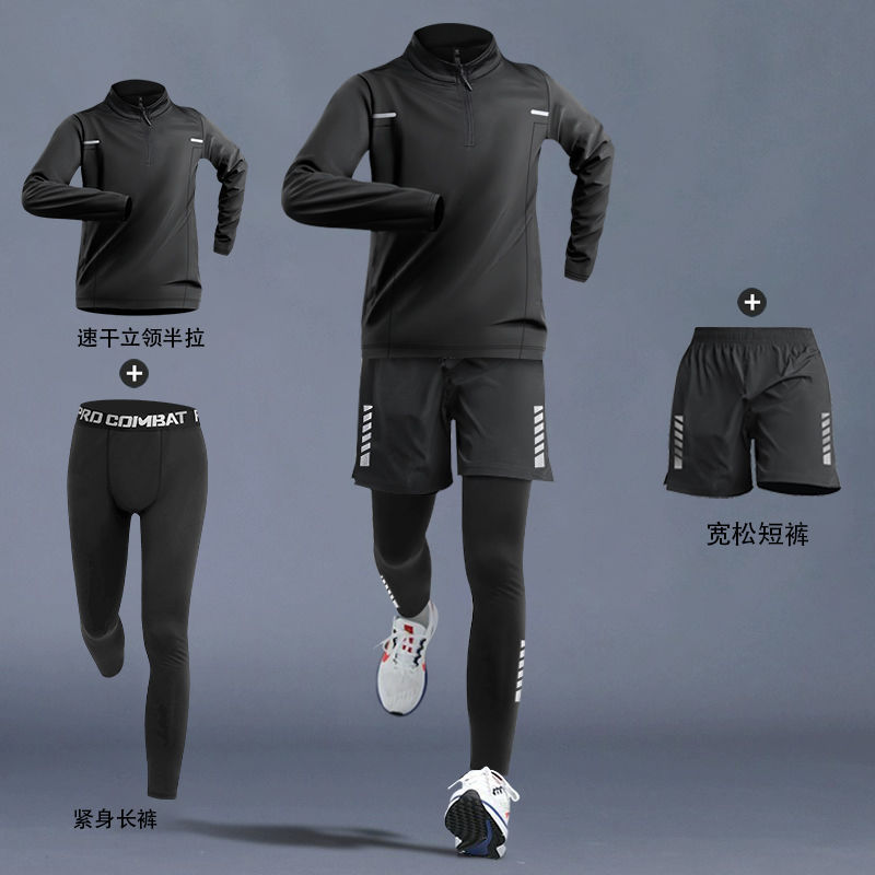 달리기 의류 남성 피트니스 세트 운동복 고탄성 꽉 옷 아침 달리기 옷 빠른 건조 옷 스포츠 트랙 및 현장 훈련 장비스토어 가기