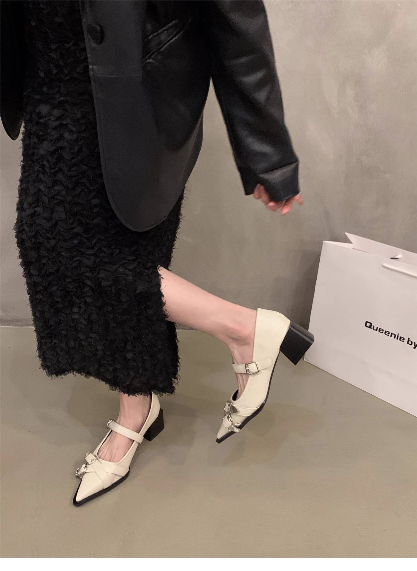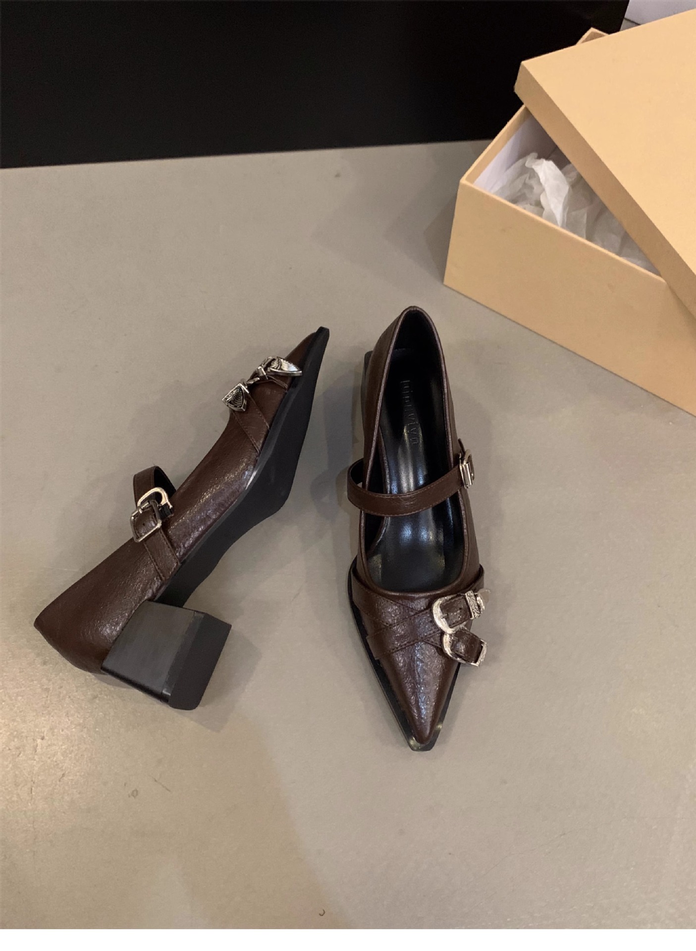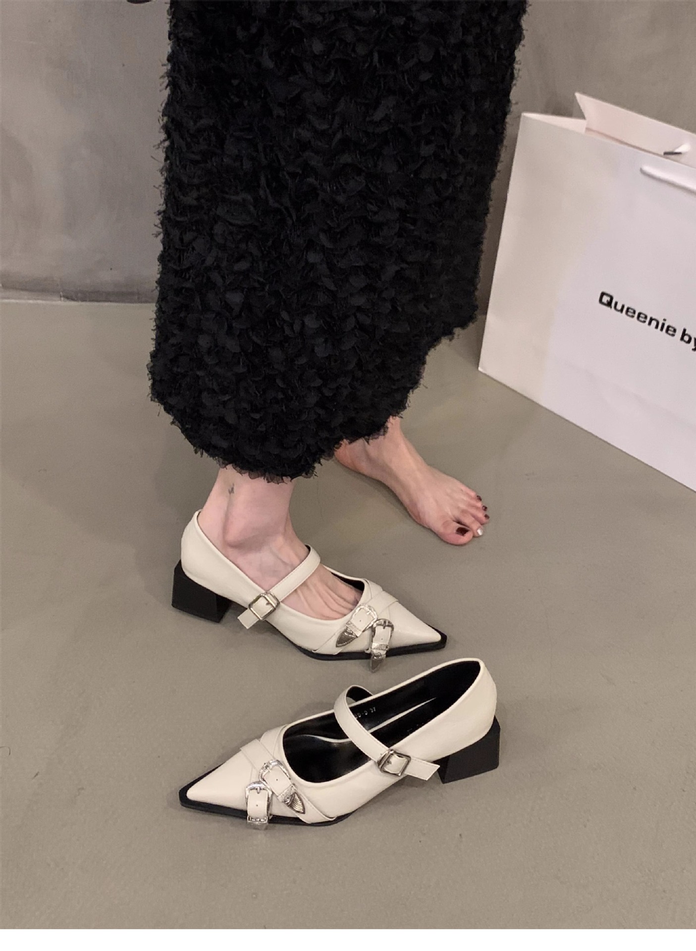 2025 여름 신상 뾰족코 메리제인 여성화 두꺼운 굽 단화 한국 스타일 캐주얼 단색 패션화 초극세사 안감스토어 가기
