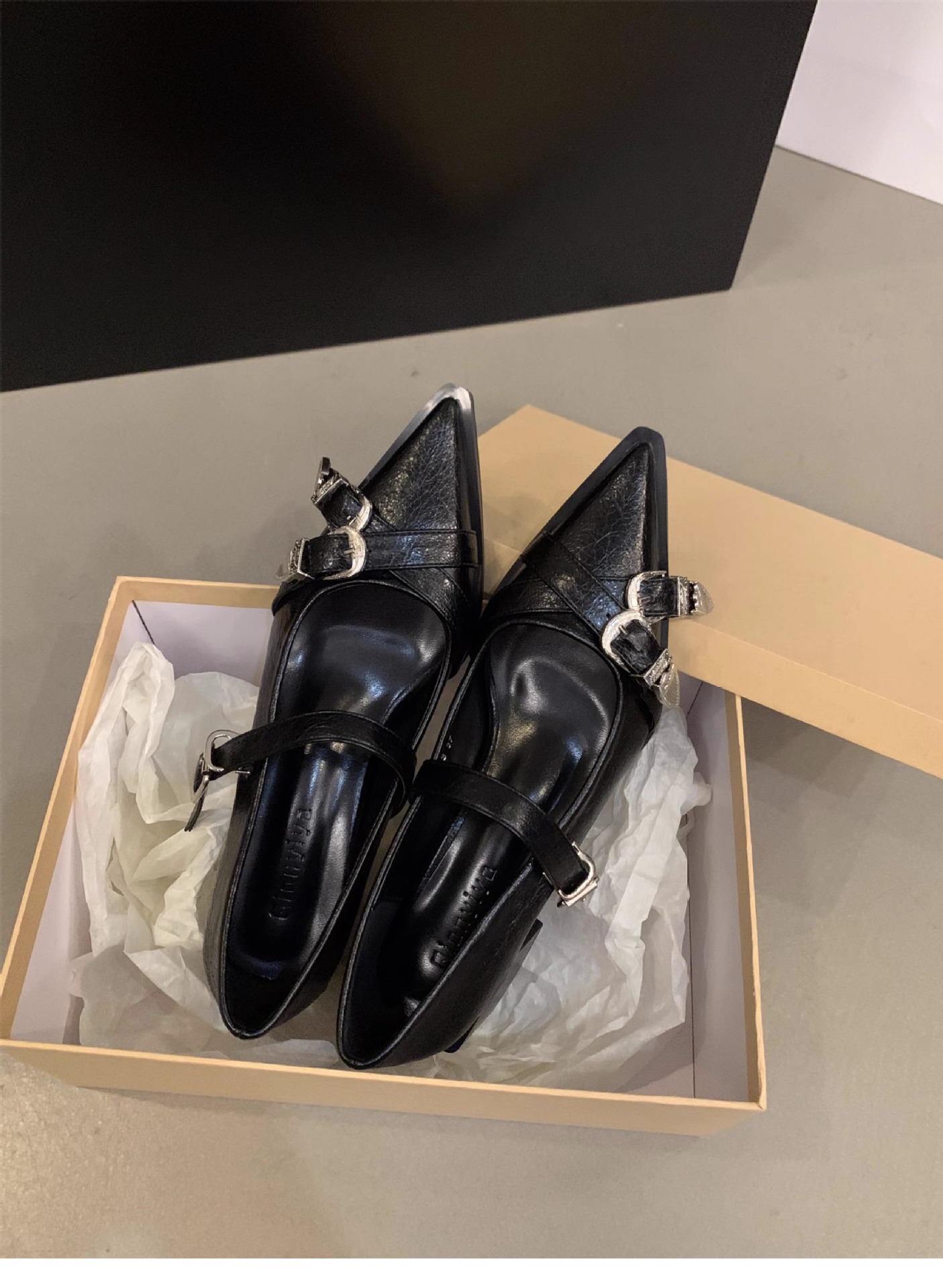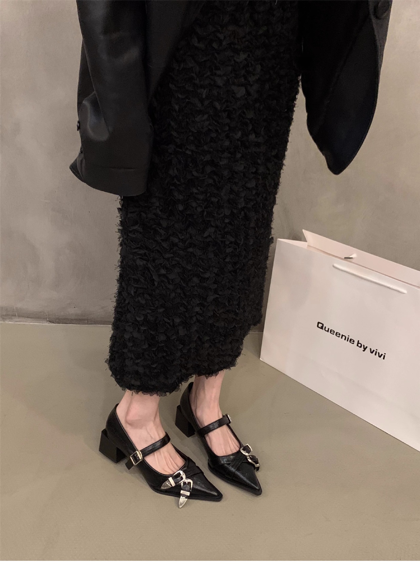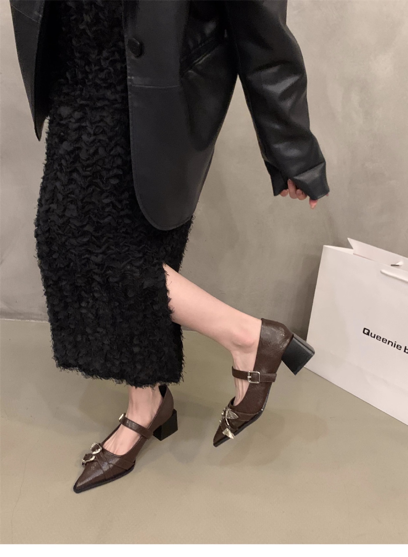 2025 여름 신상 뾰족코 메리제인 여성화 두꺼운 굽 단화 한국 스타일 캐주얼 단색 패션화 초극세사 안감스토어 가기