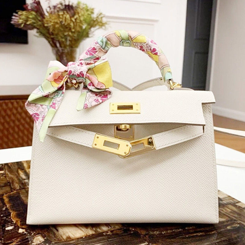 Palmprint Cowhide 2 세대 Kelly Bag 2025 새로운 미니 정품 가죽 휴대용 어깨 크로스 바디 가죽 여성용 가방스토어 가기
